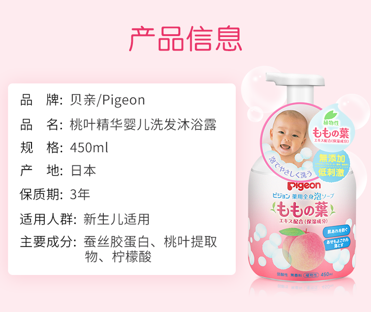 贝亲 桃子水宝宝桃叶精华洗发沐浴露 450ml【不足200元订单,默认顺丰快递到付】