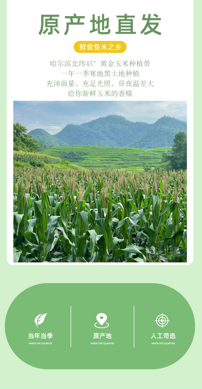 产区远离现代工业,无霜期长、光照充足、昼夜温差大,成就了玉米软糯口感!