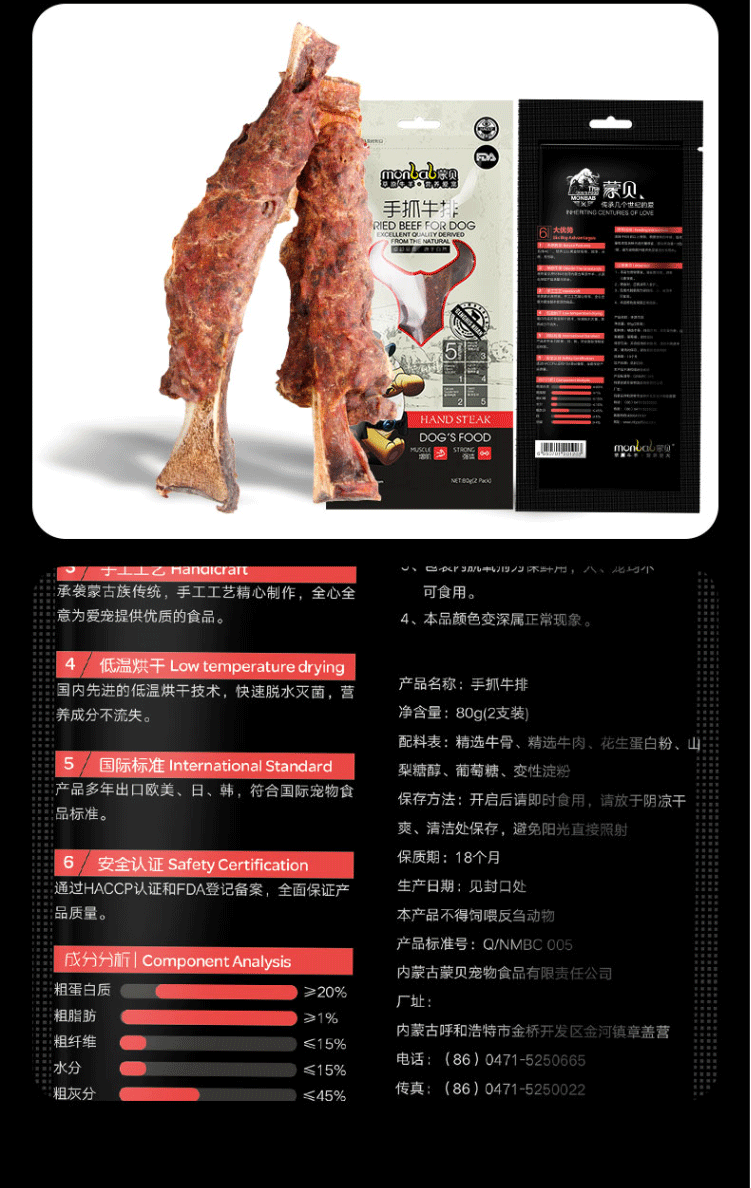 蒙贝宠物零食手抓牛排狗狗0.15kg