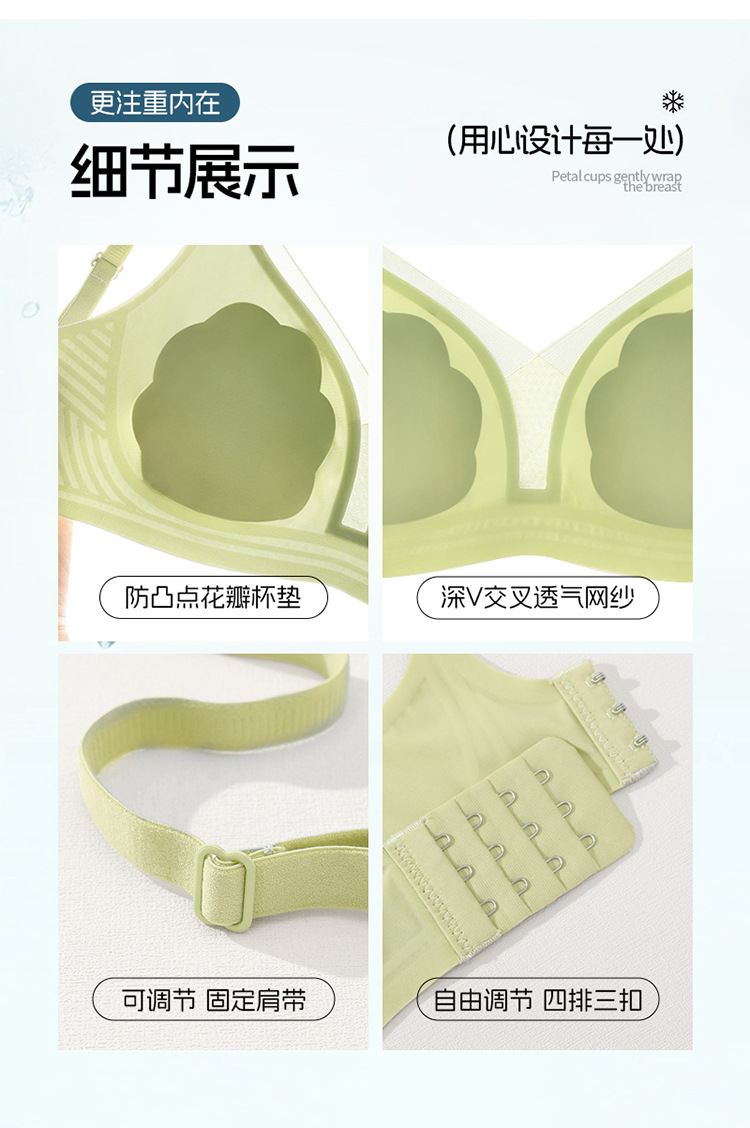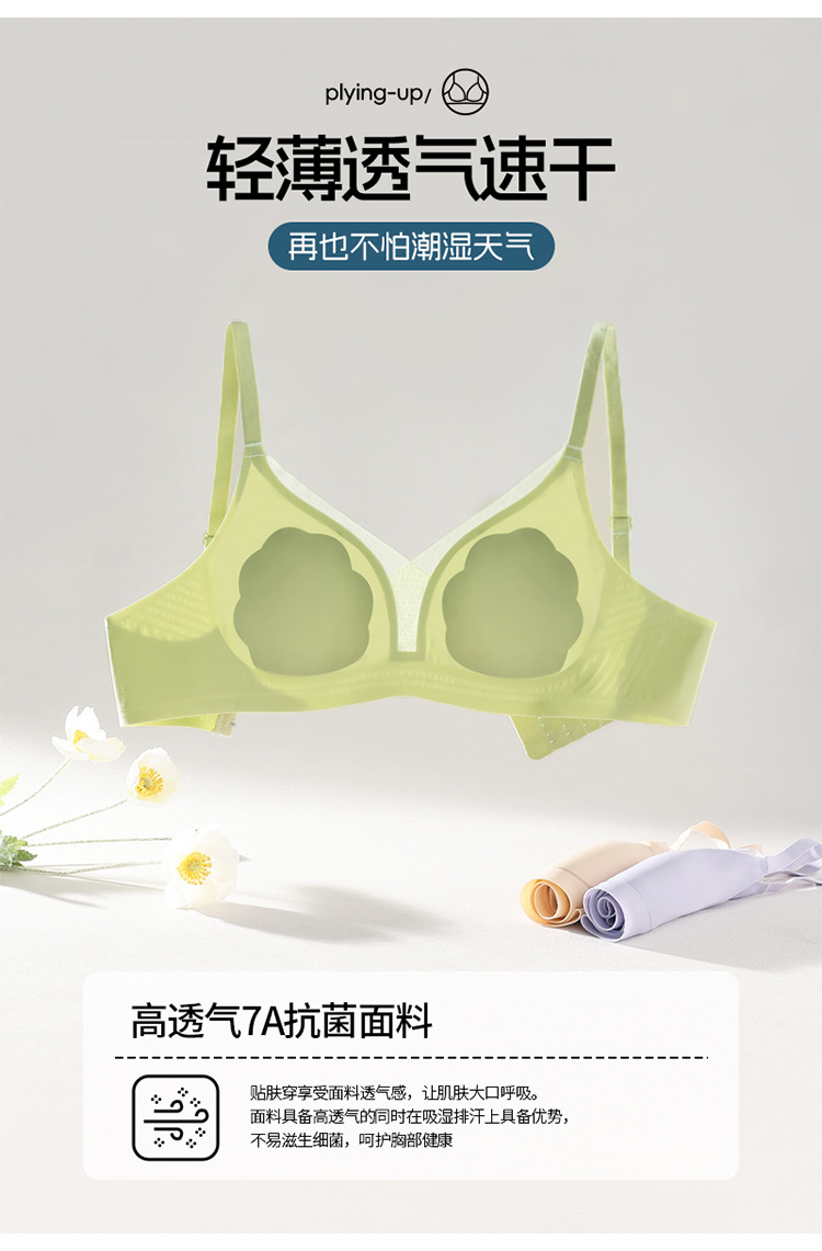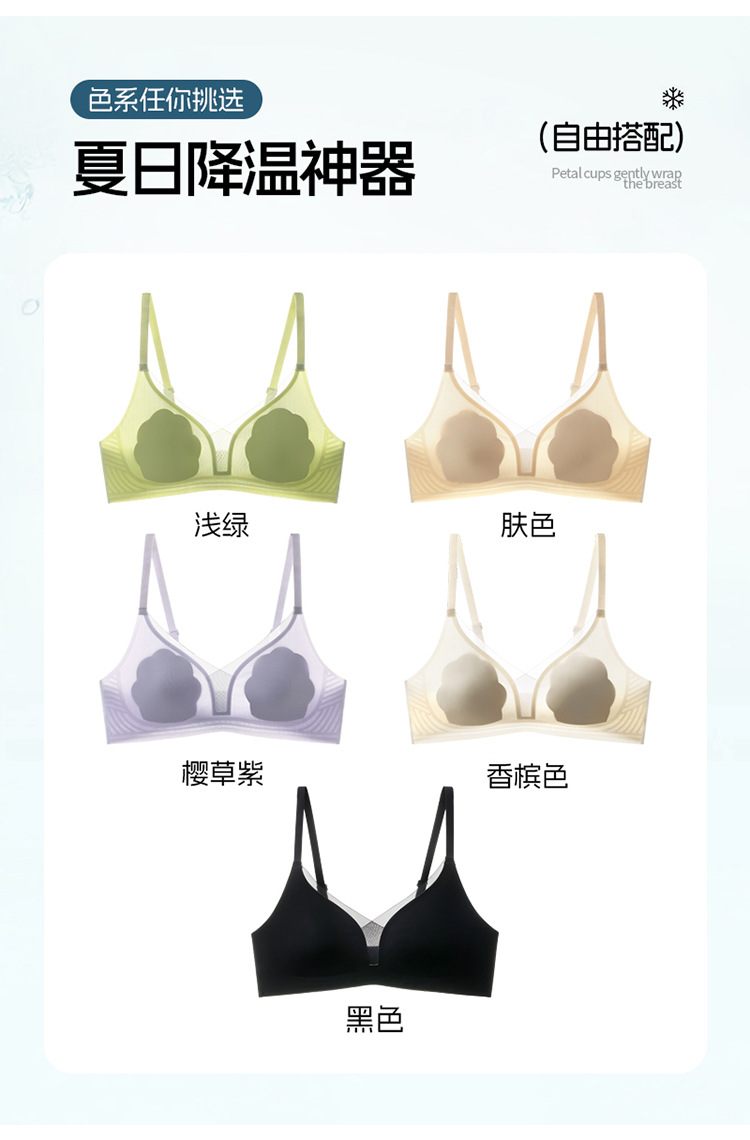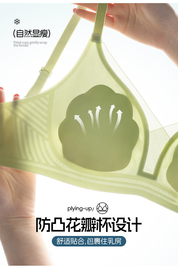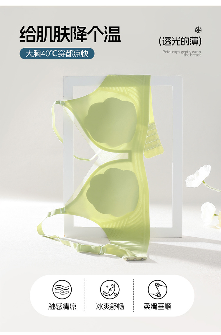 夏季新款冰丝内衣无痕女士内衣大胸显小胸无钢圈大码文胸罩兔耳朵杯夏季超薄款花瓣
