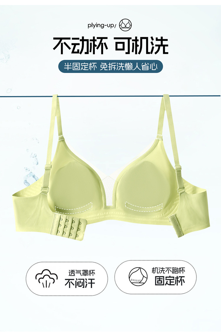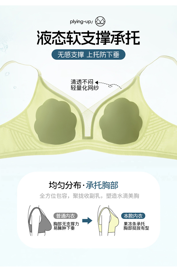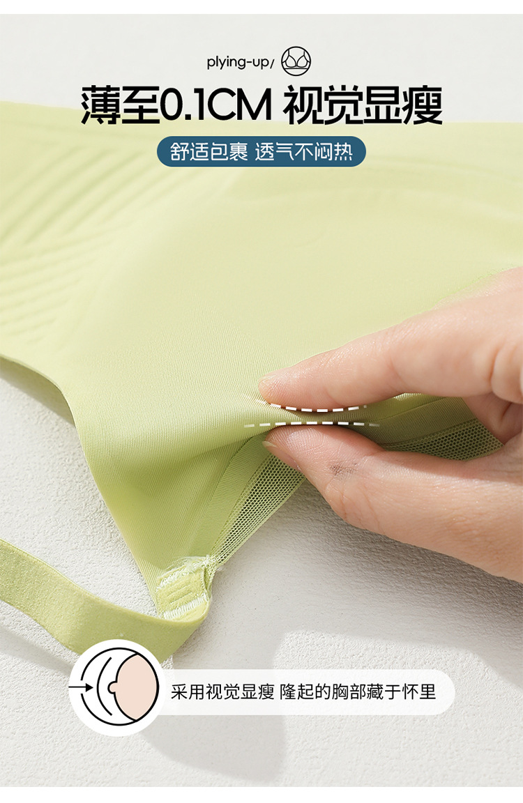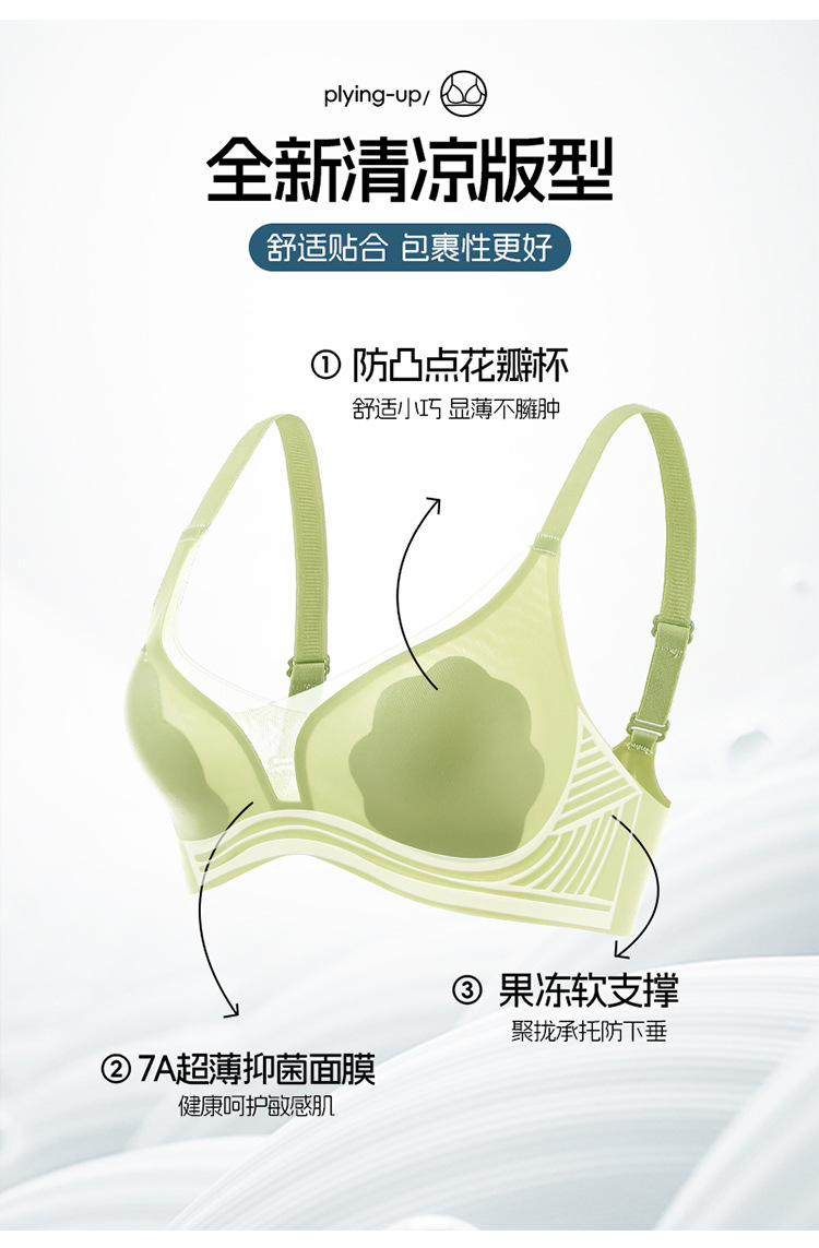 夏季新款冰丝内衣无痕女士内衣大胸显小胸无钢圈大码文胸罩兔耳朵杯夏季超薄款花瓣