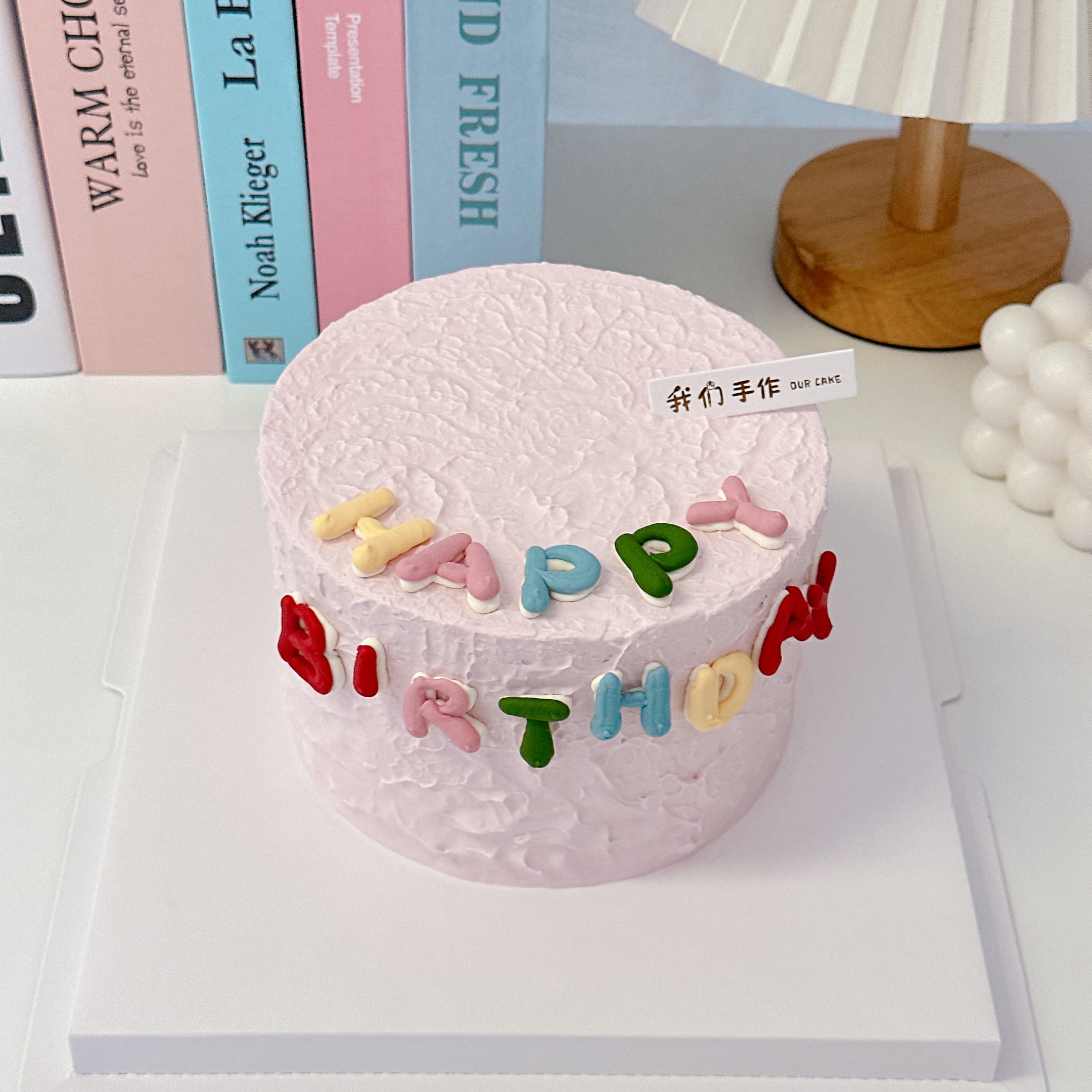 多巴胺色happybirthday简约写字蛋糕-低糖处理无添加