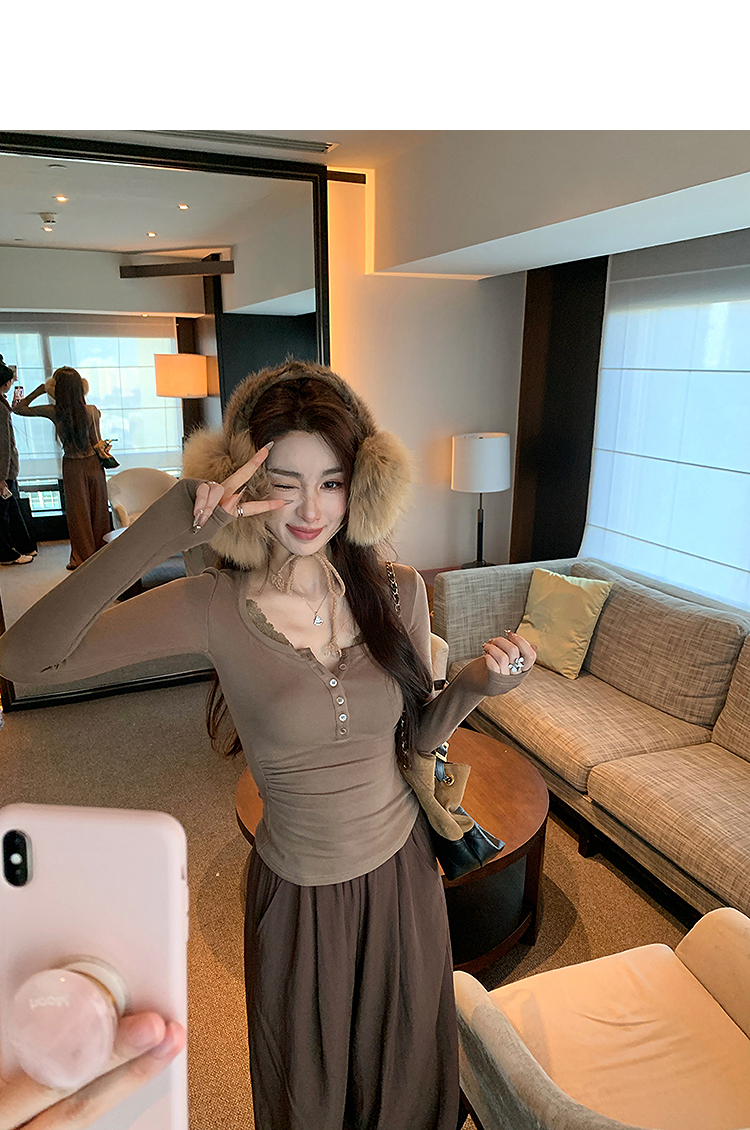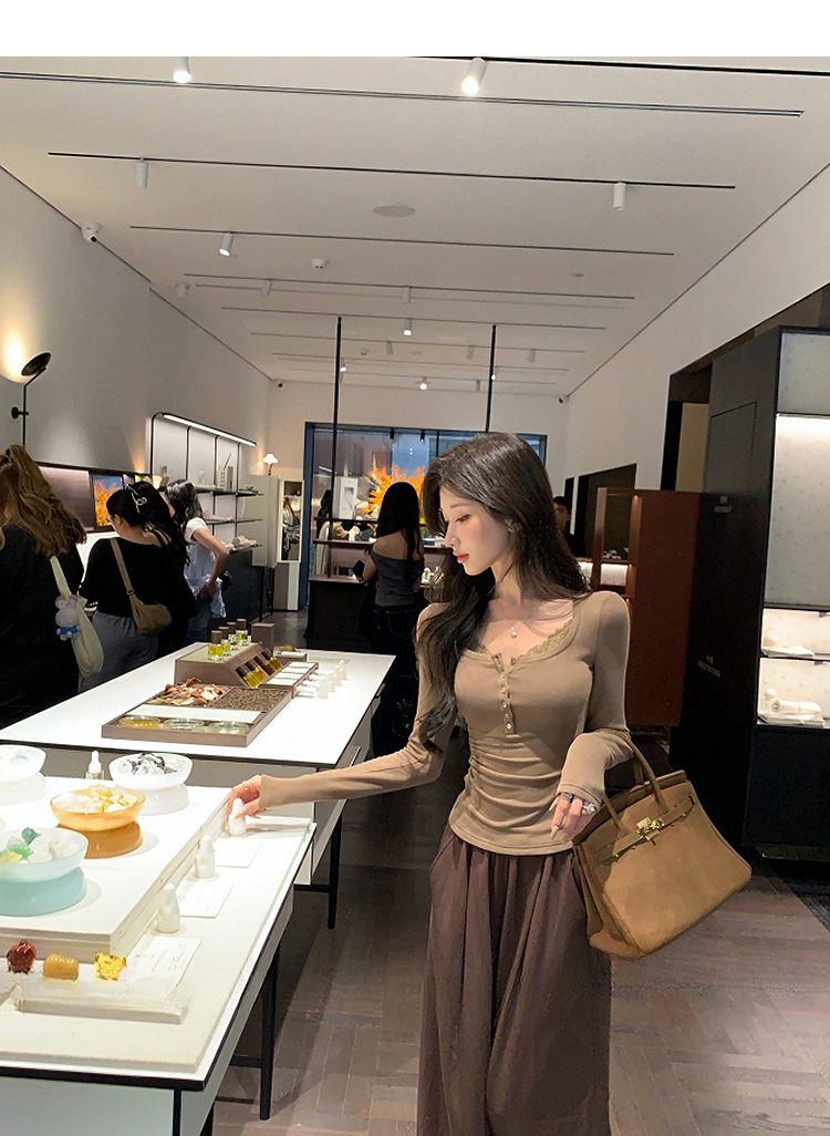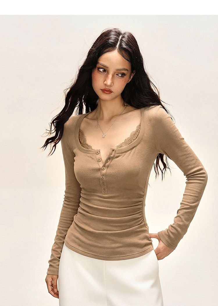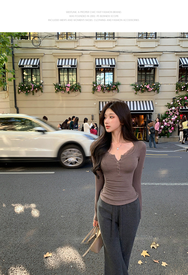 西遇拼接蕾丝内搭打底衫女2026年春季新款辣妹收腰显瘦长袖T恤SS060087