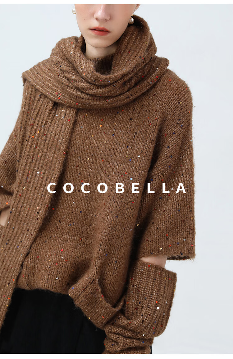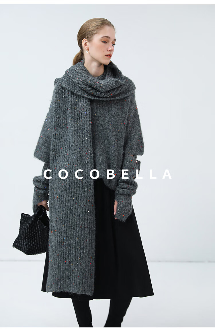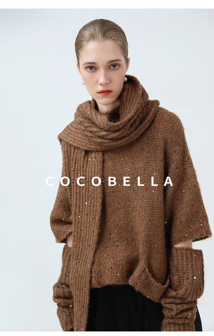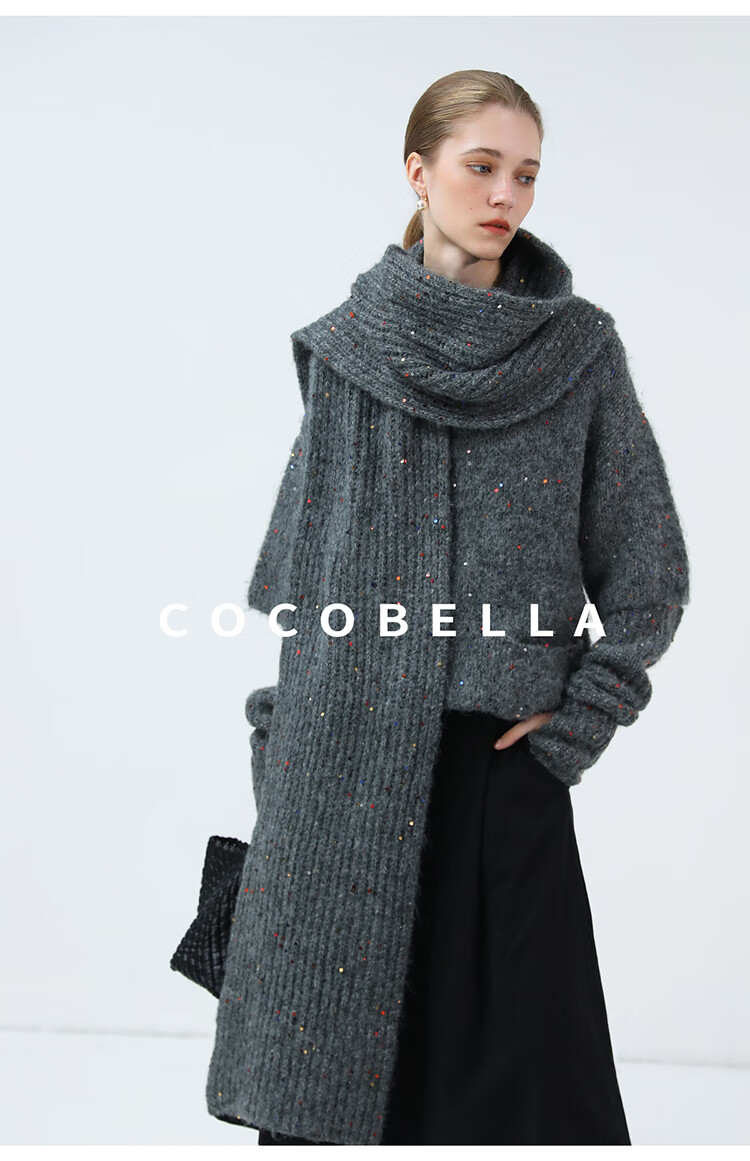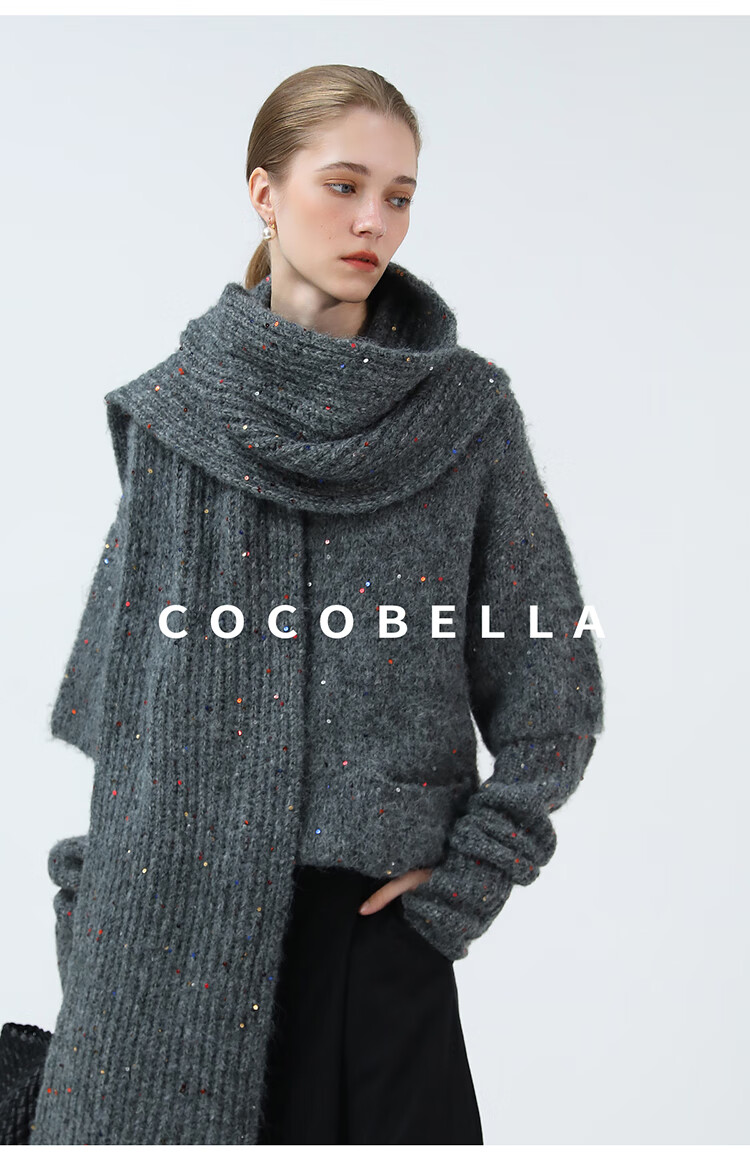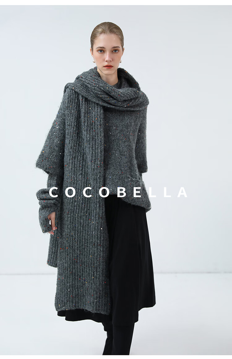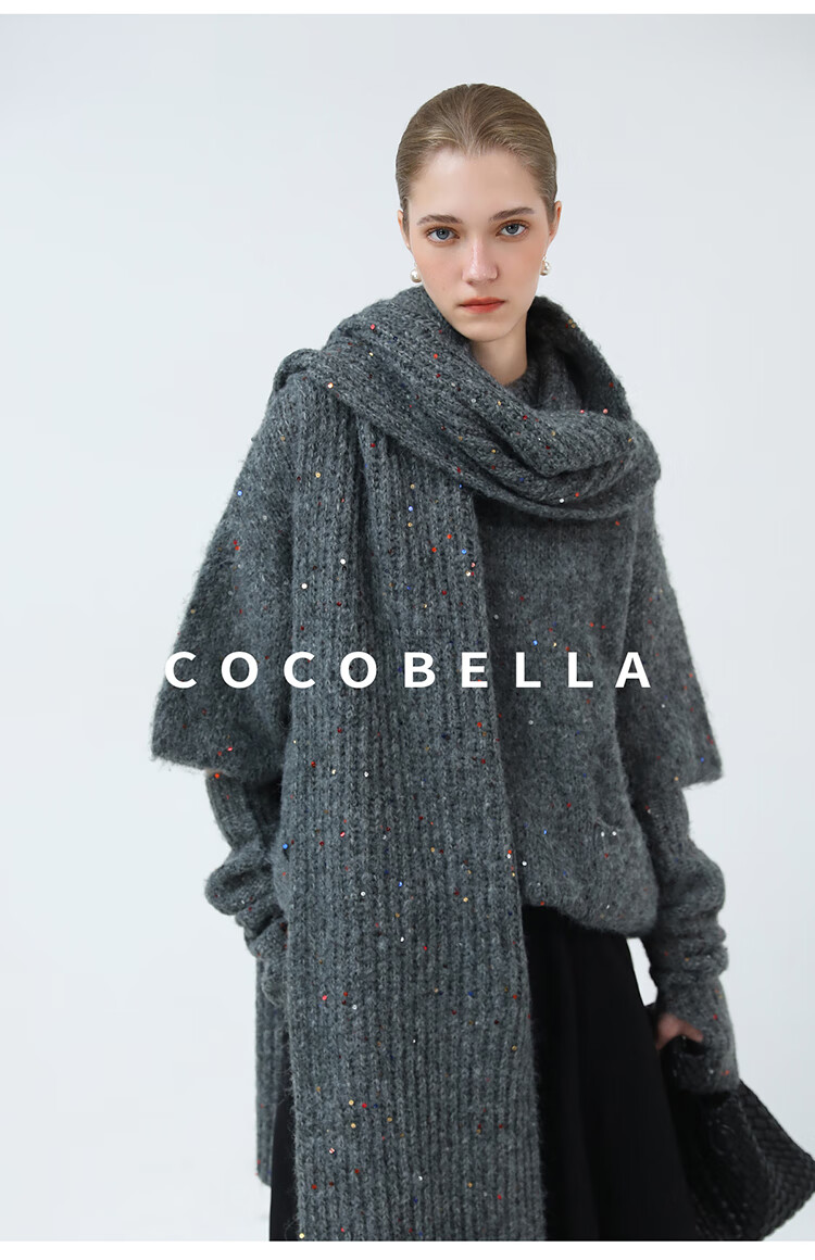 COCOBELLA羊驼混纺亮片保暖毛衣围巾袖套多穿法两件件套MZ3089