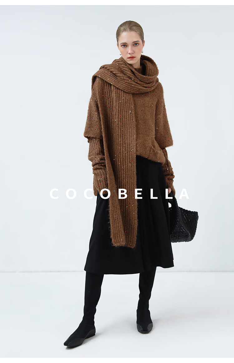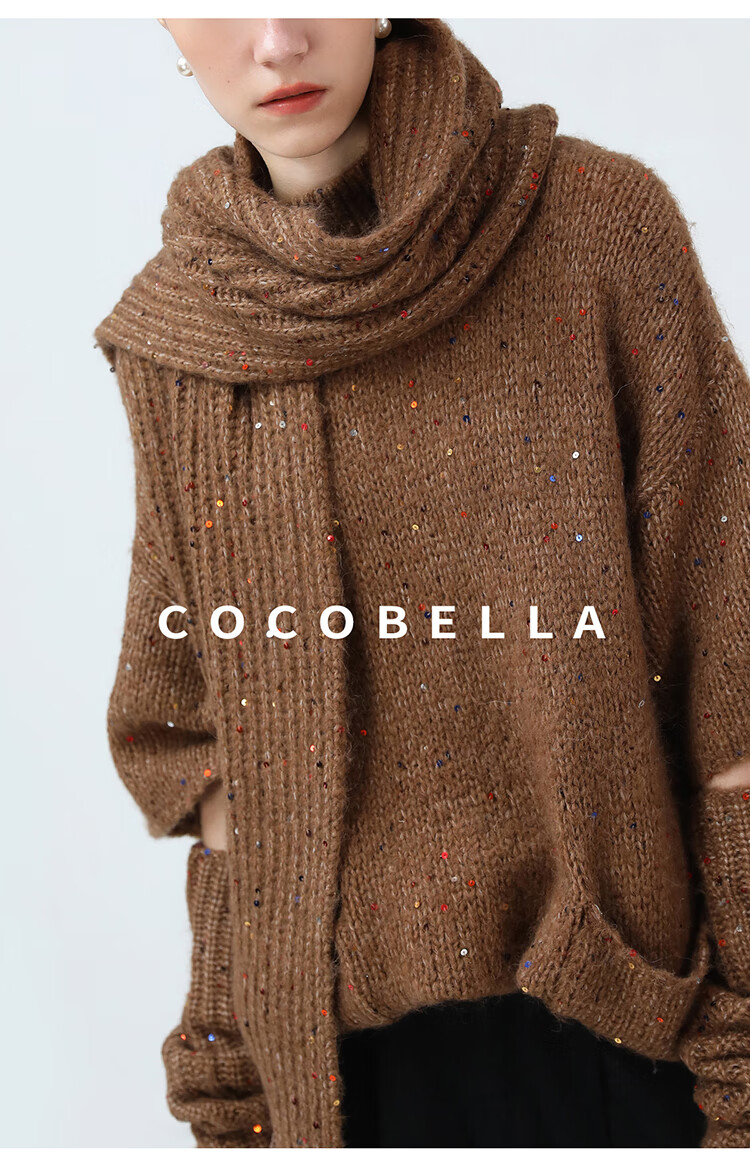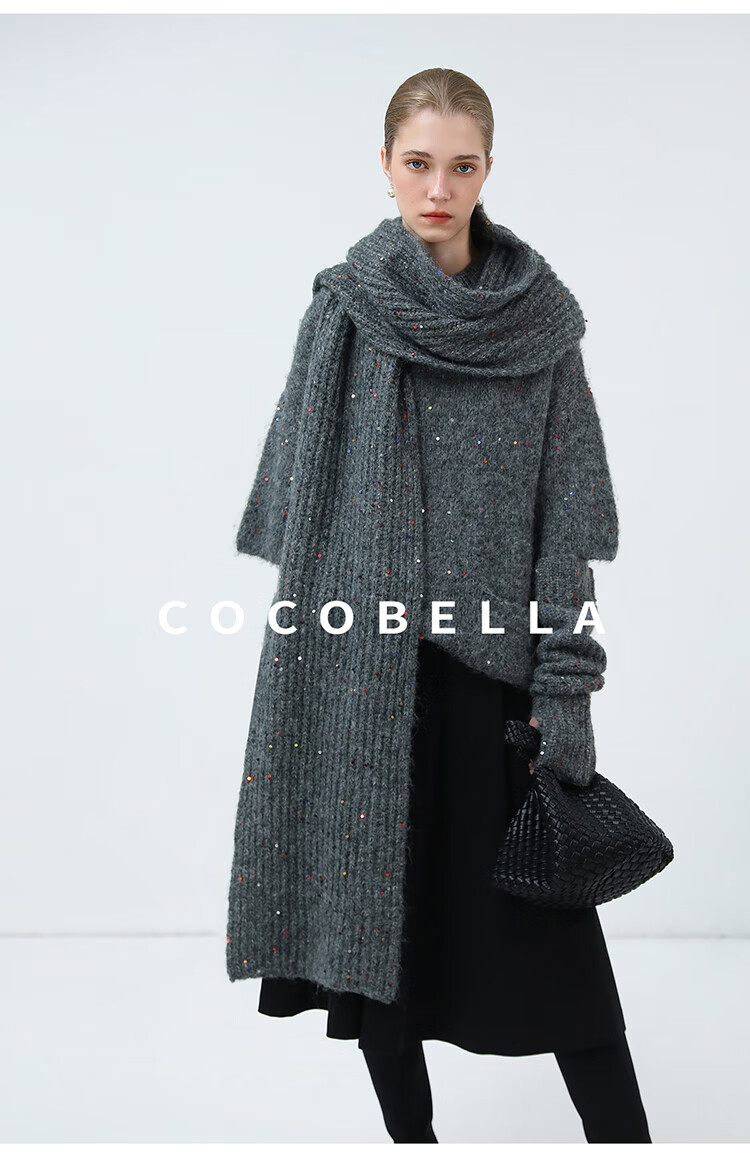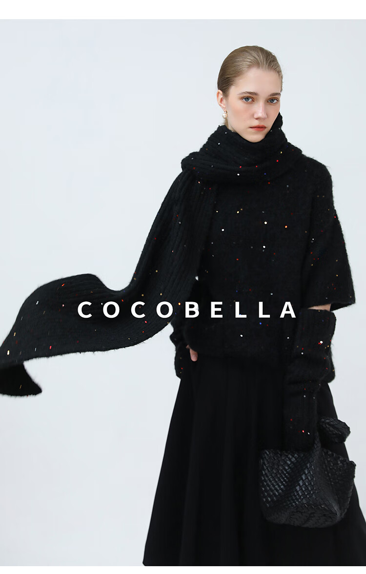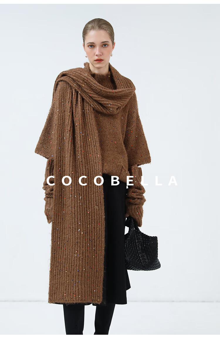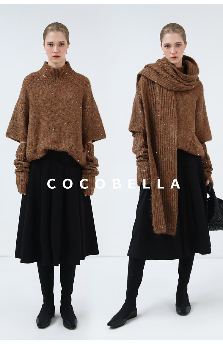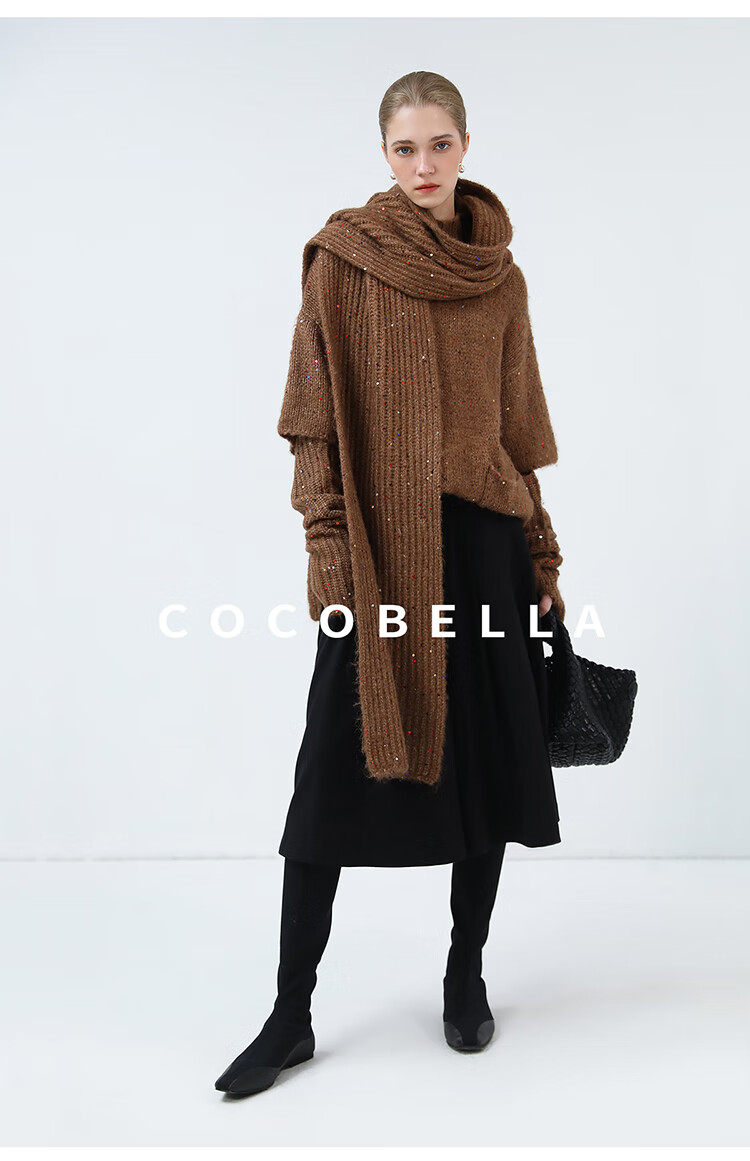 COCOBELLA羊驼混纺亮片保暖毛衣围巾袖套多穿法两件件套MZ3089
