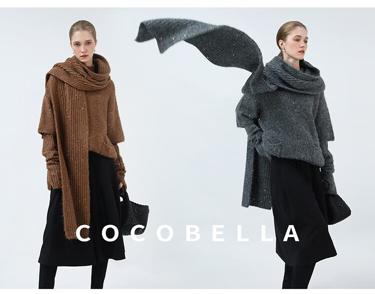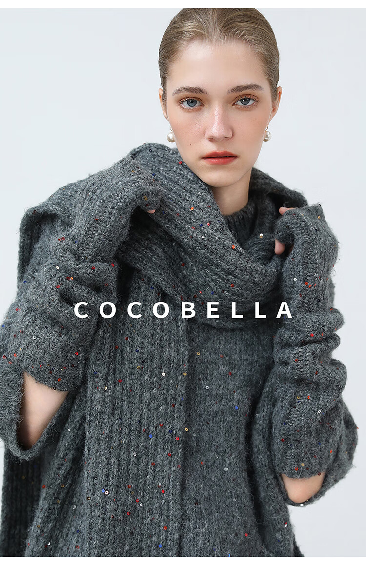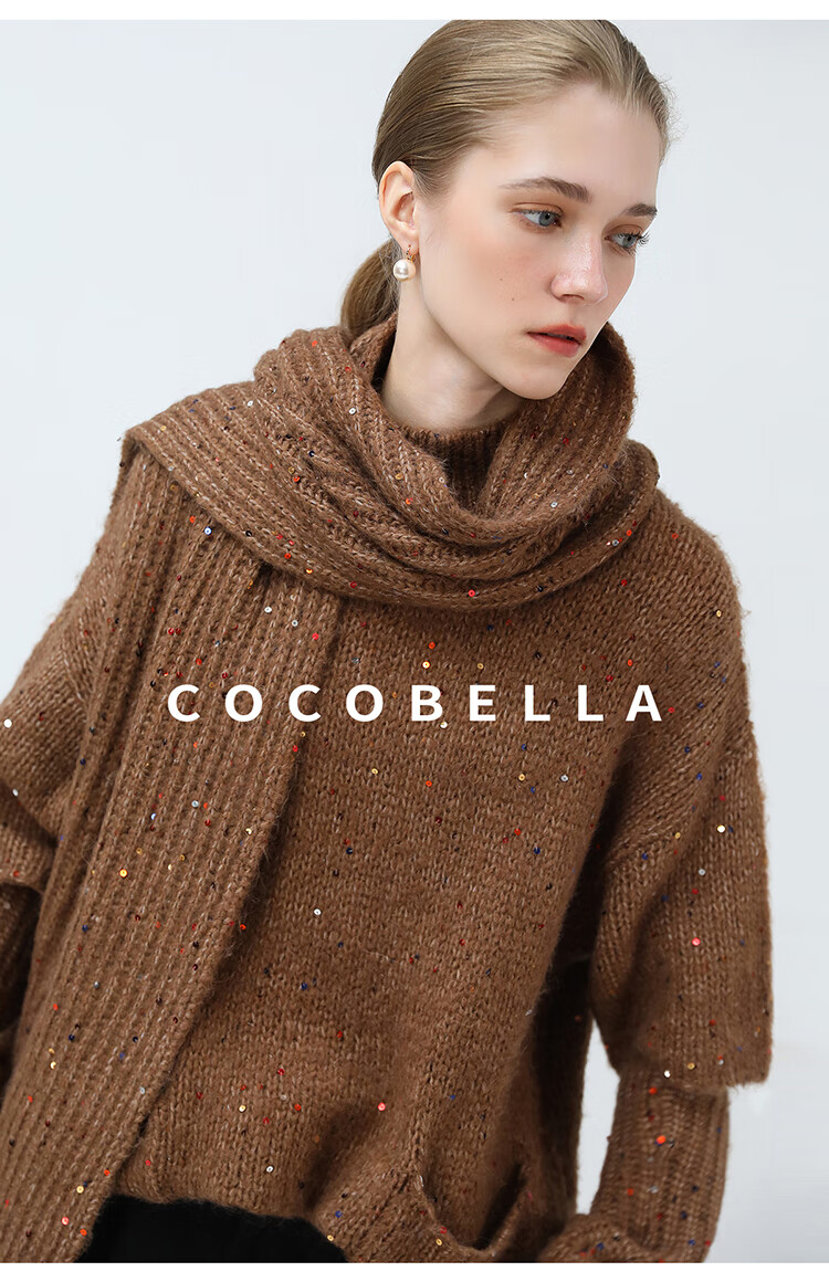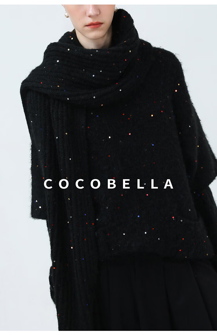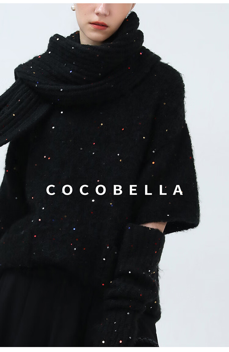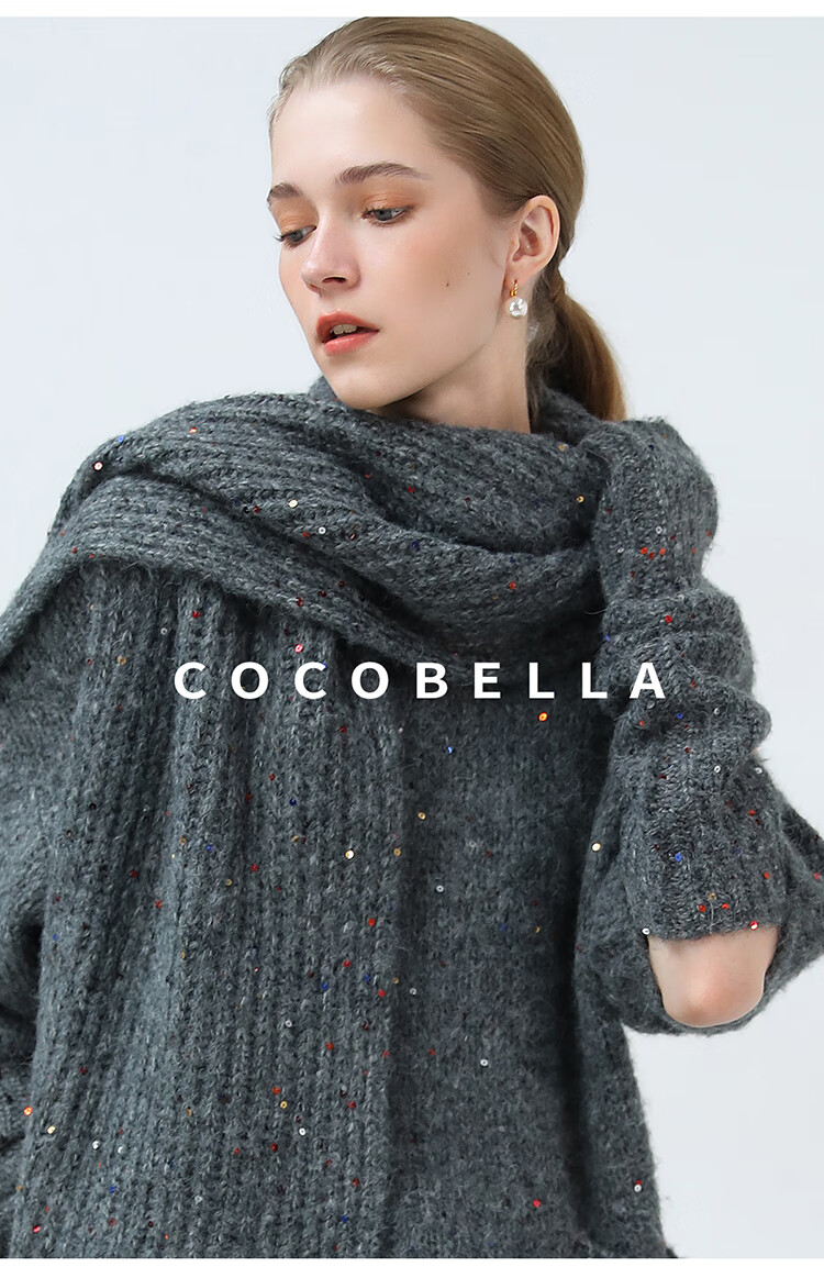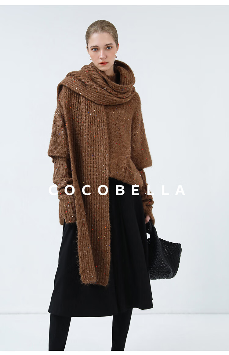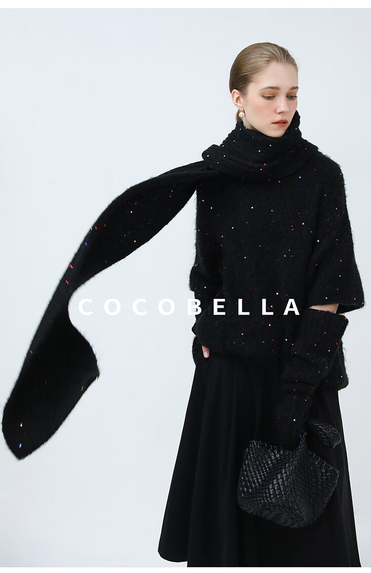 COCOBELLA羊驼混纺亮片保暖毛衣围巾袖套多穿法两件件套MZ3089