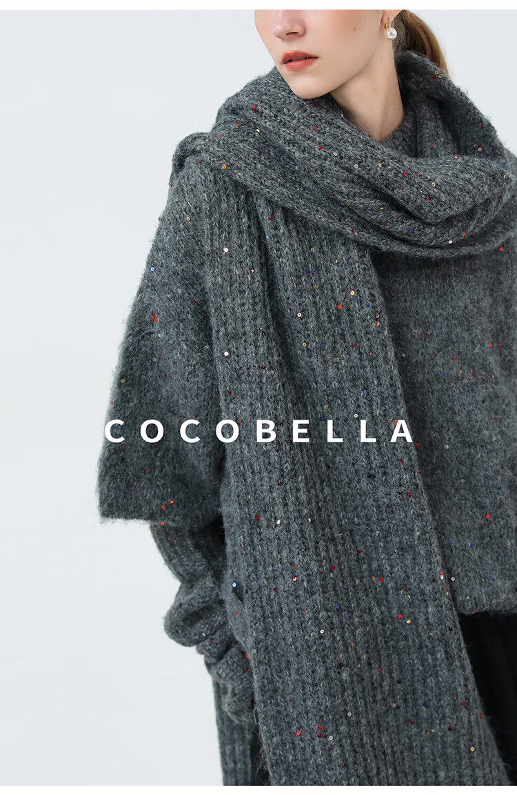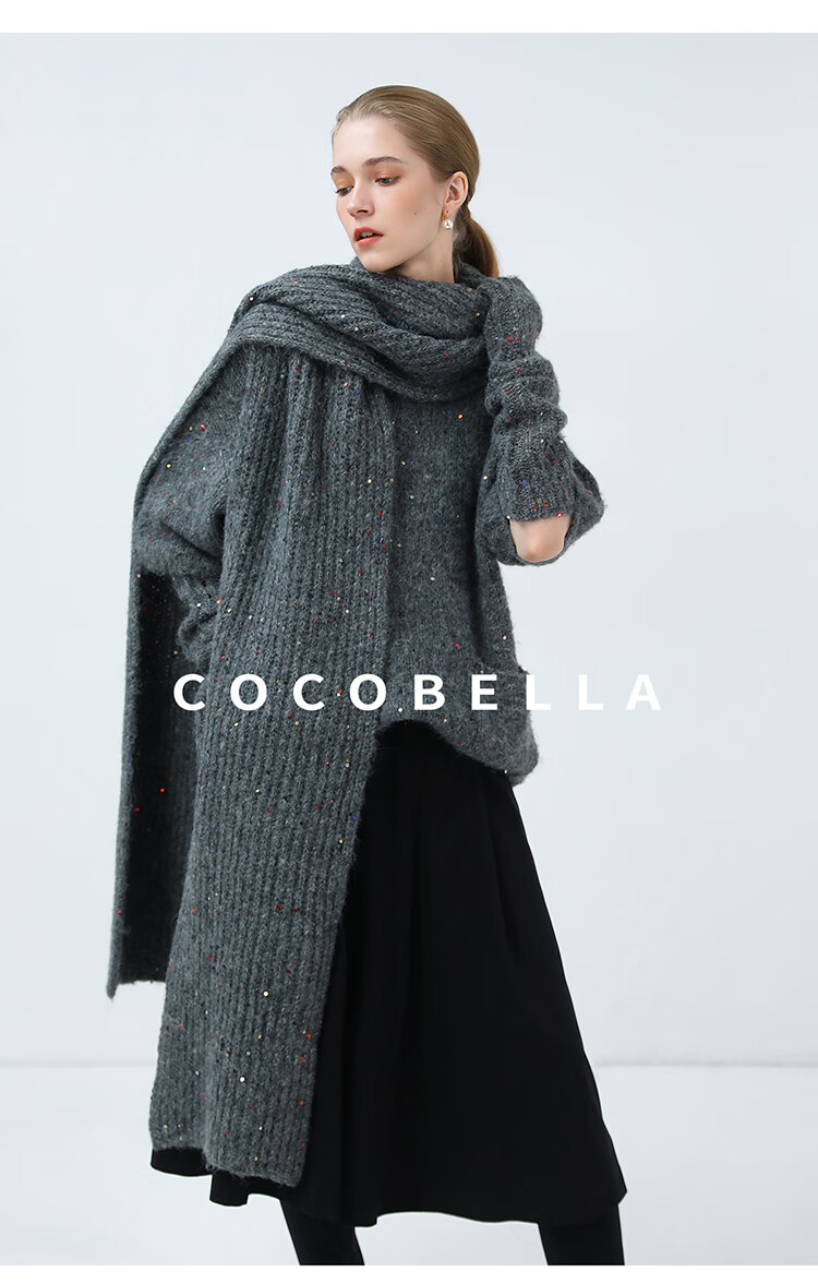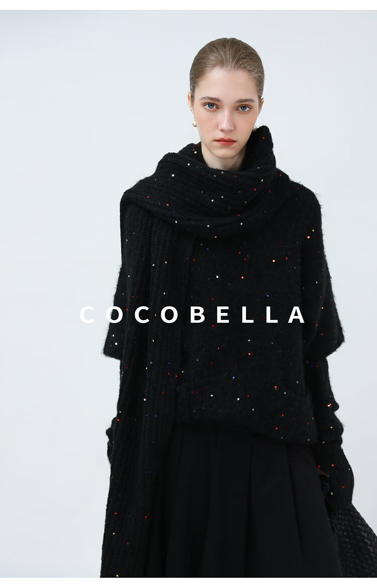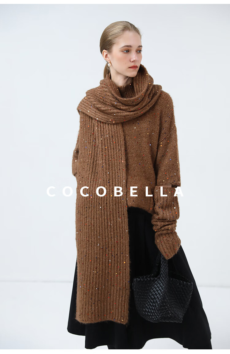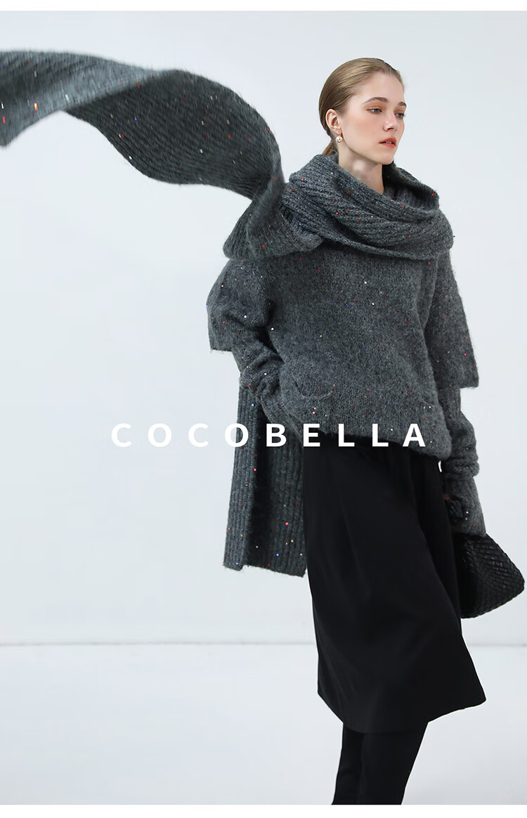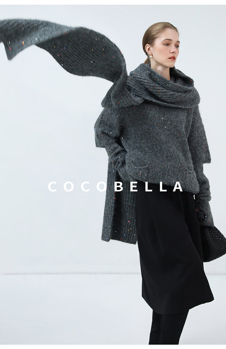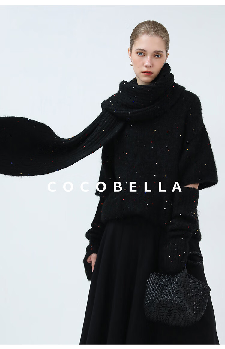 COCOBELLA羊驼混纺亮片保暖毛衣围巾袖套多穿法两件件套MZ3089