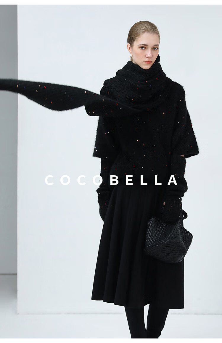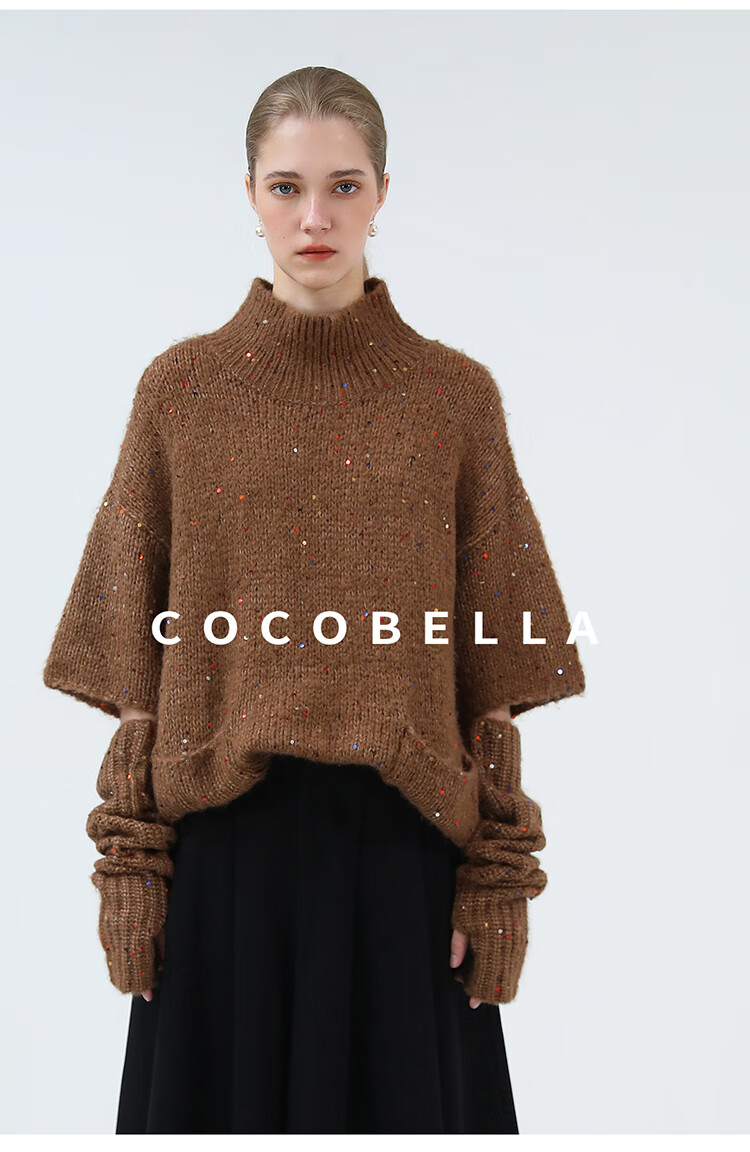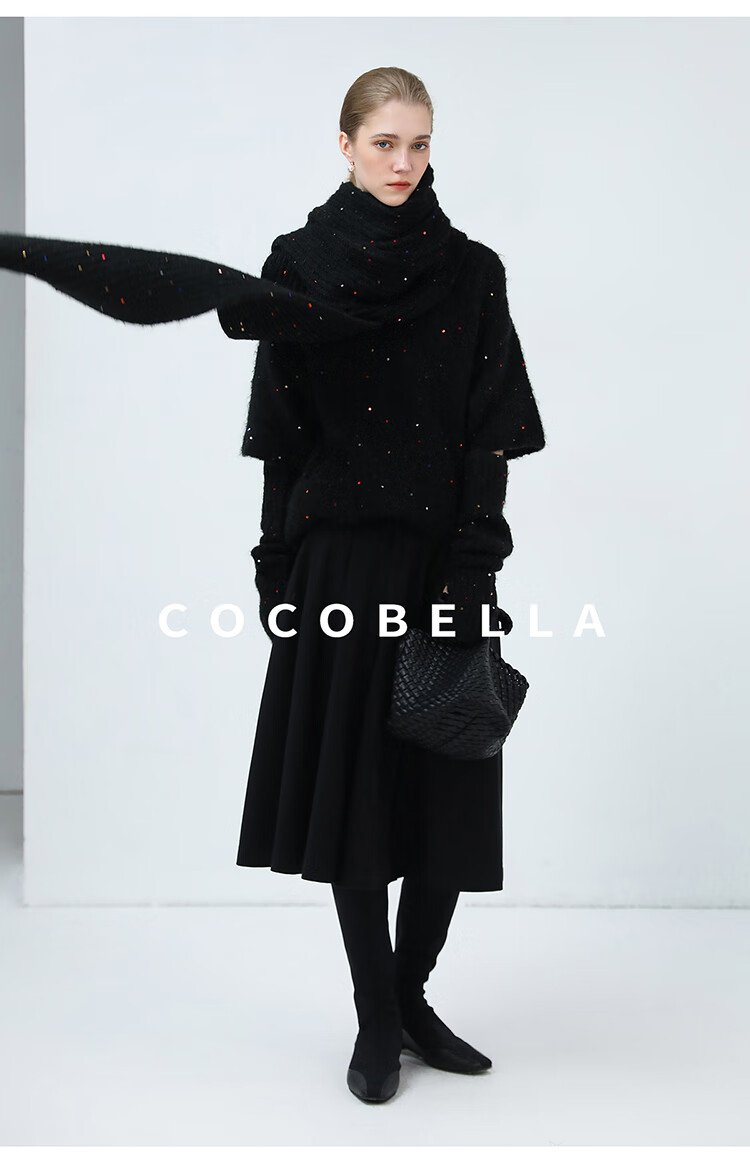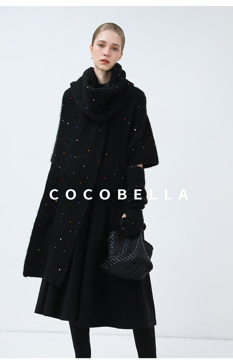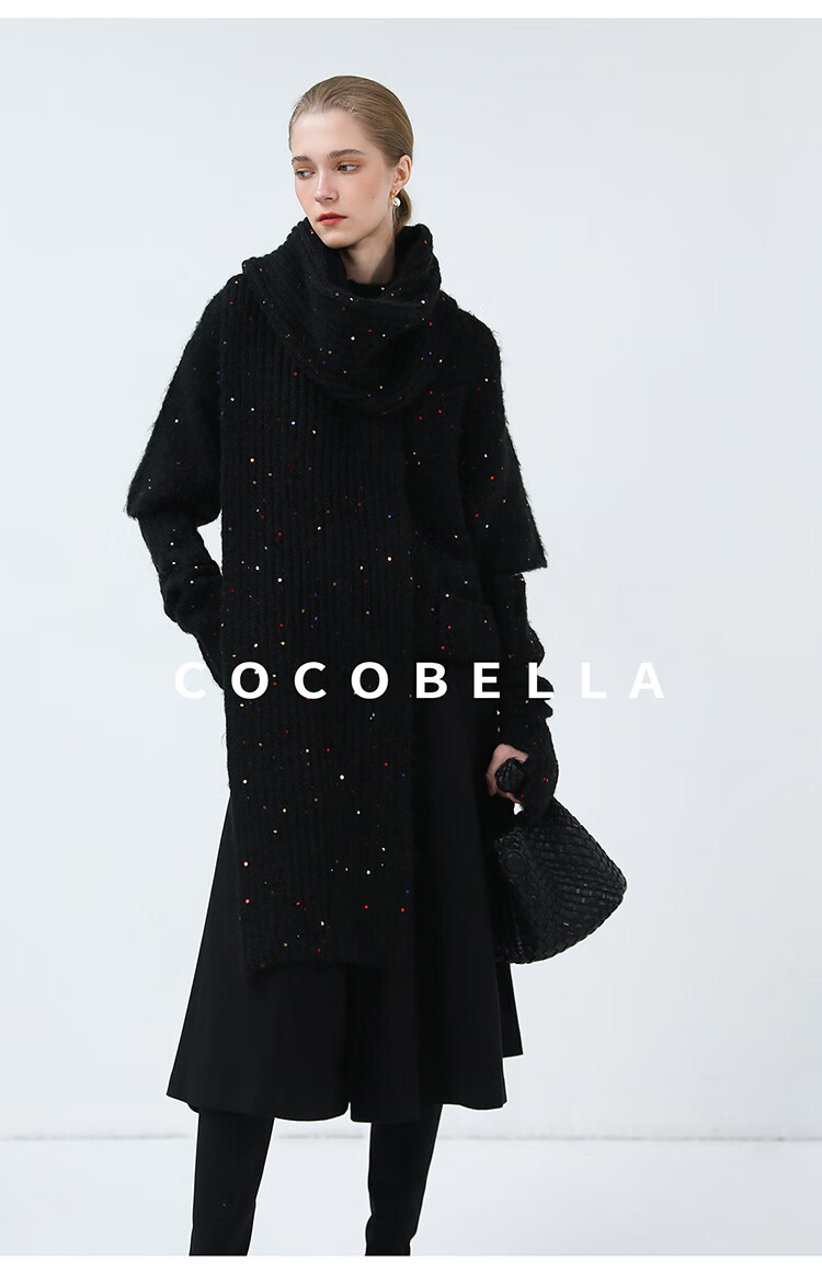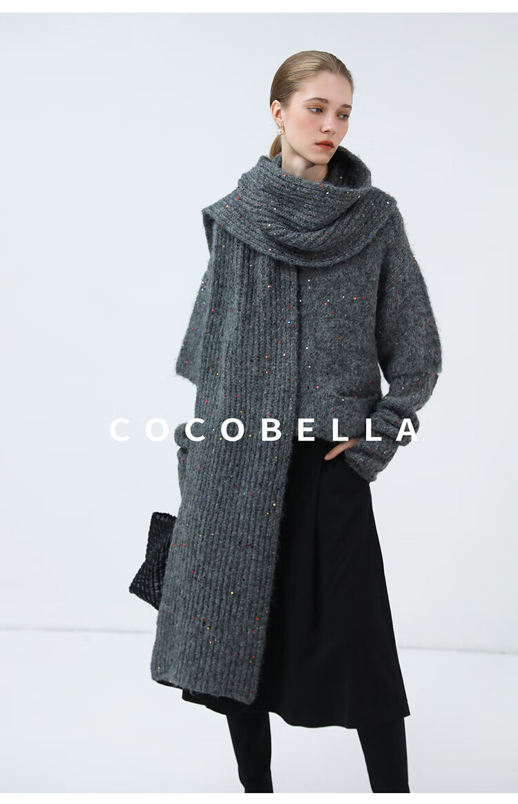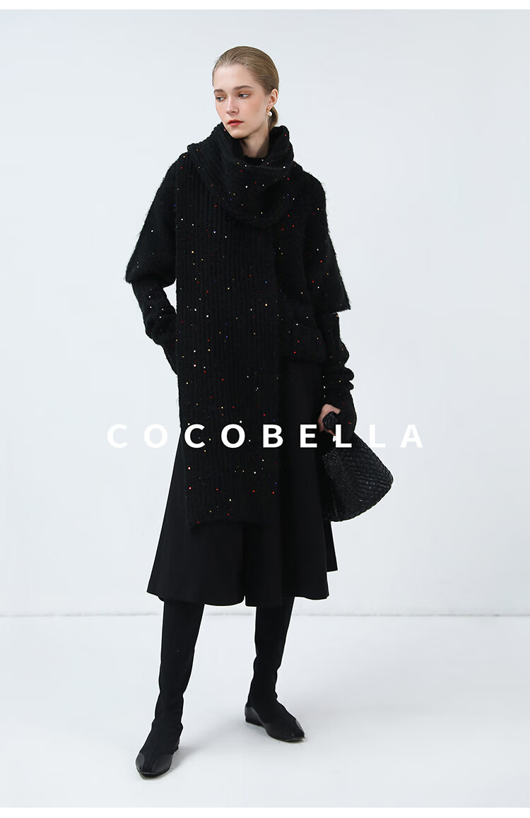 COCOBELLA羊驼混纺亮片保暖毛衣围巾袖套多穿法两件件套MZ3089