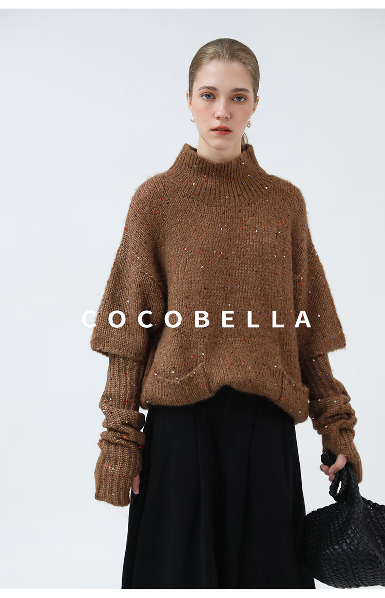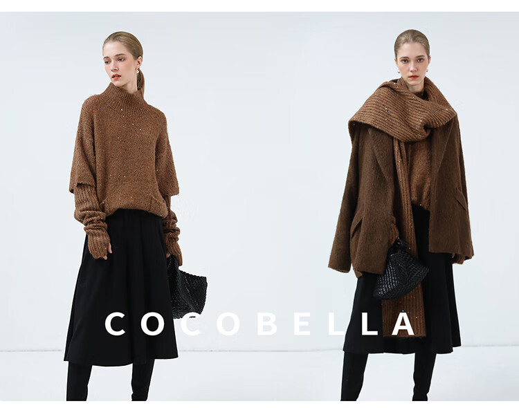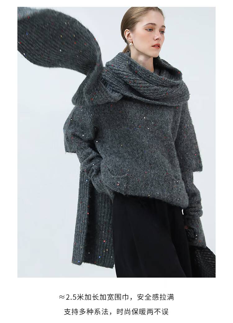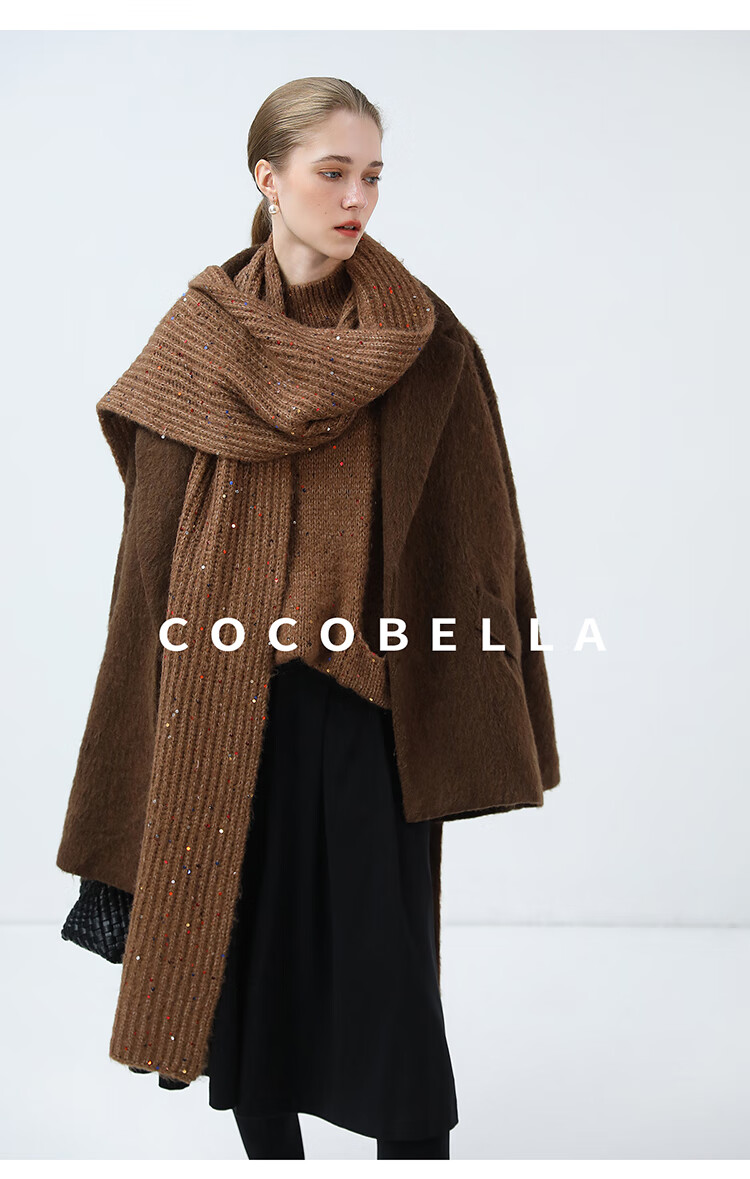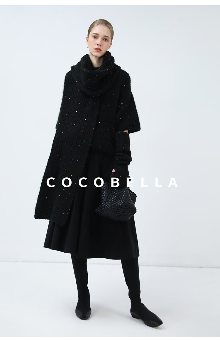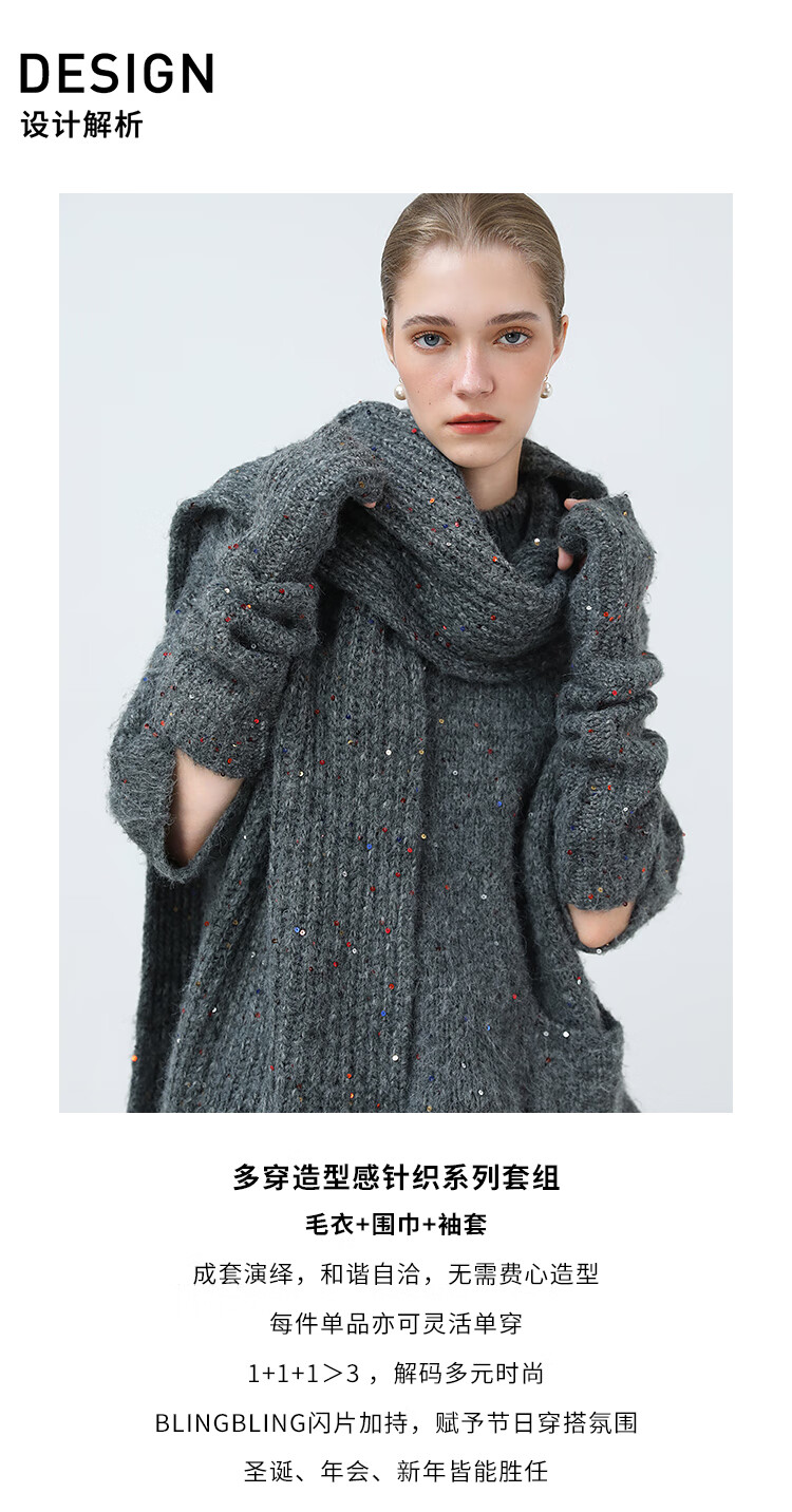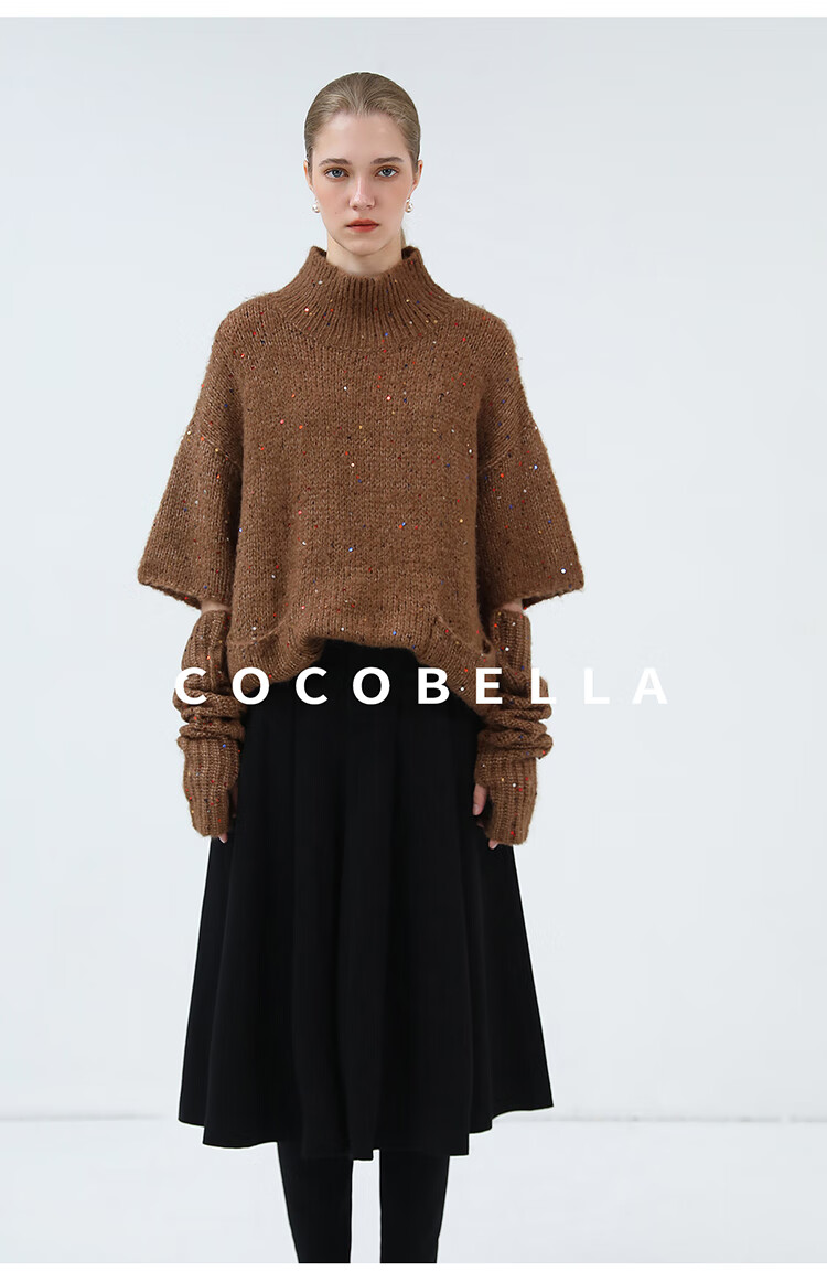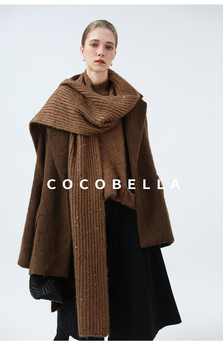 COCOBELLA羊驼混纺亮片保暖毛衣围巾袖套多穿法两件件套MZ3089