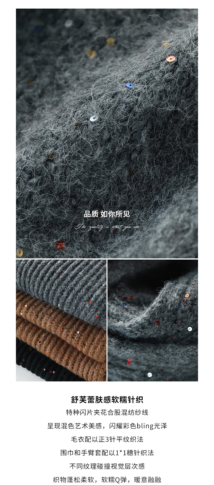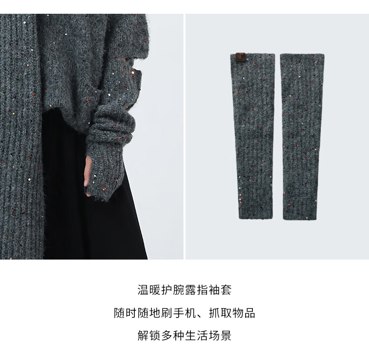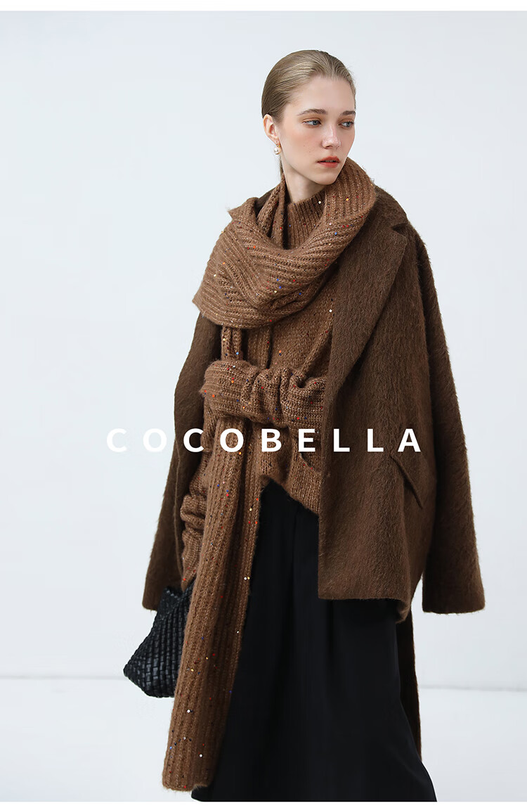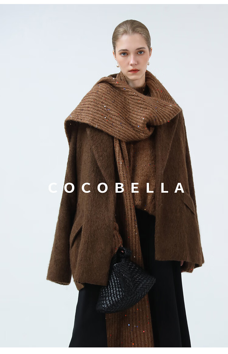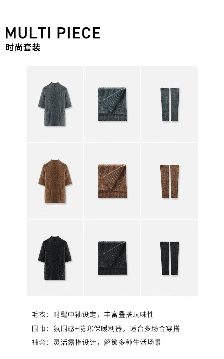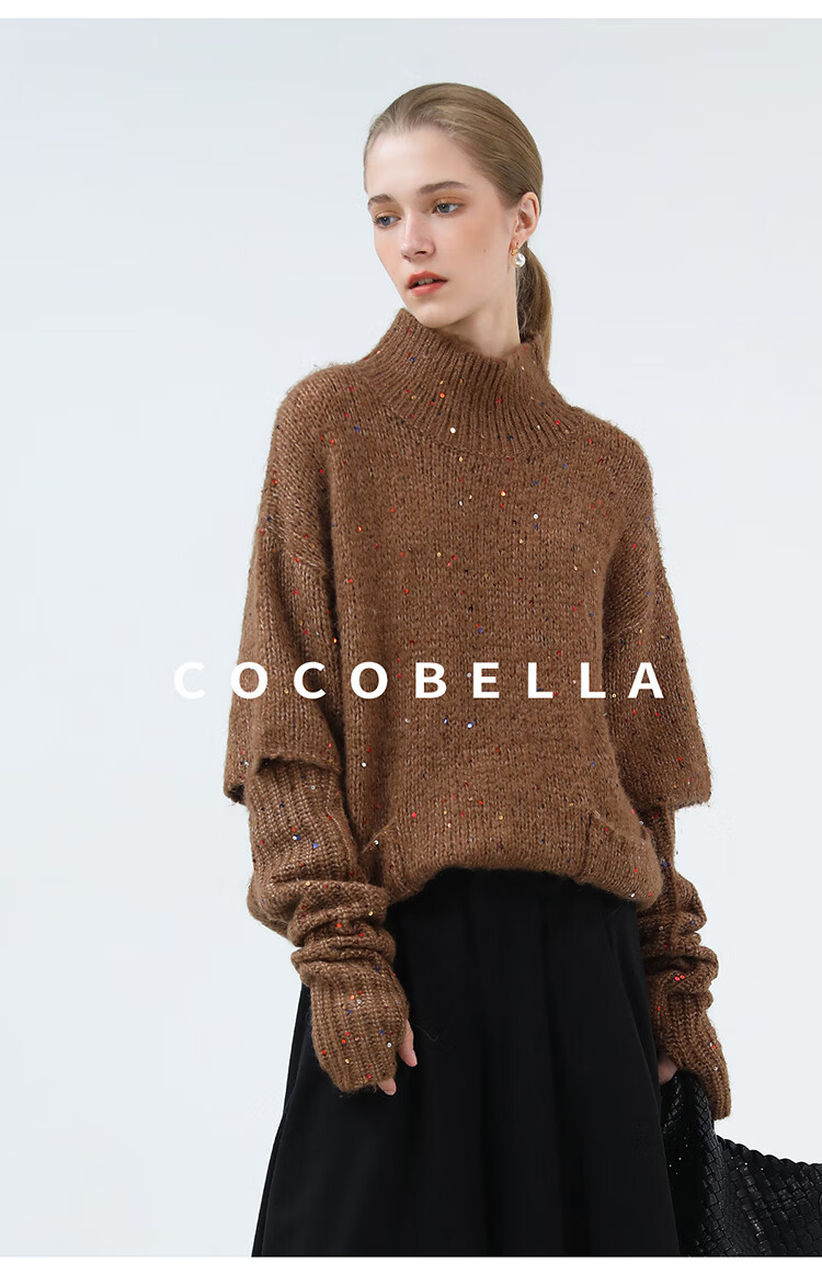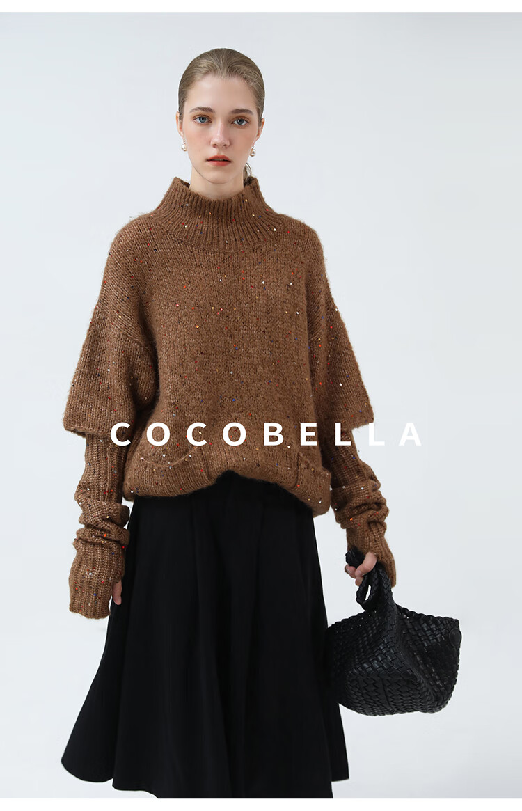 COCOBELLA羊驼混纺亮片保暖毛衣围巾袖套多穿法两件件套MZ3089