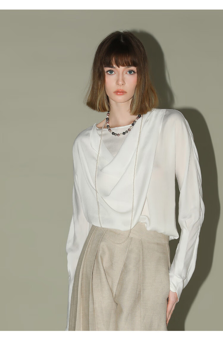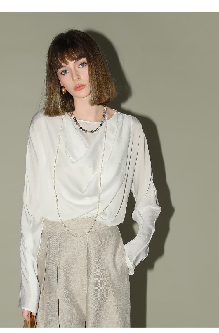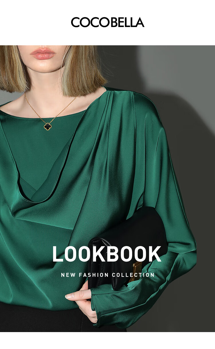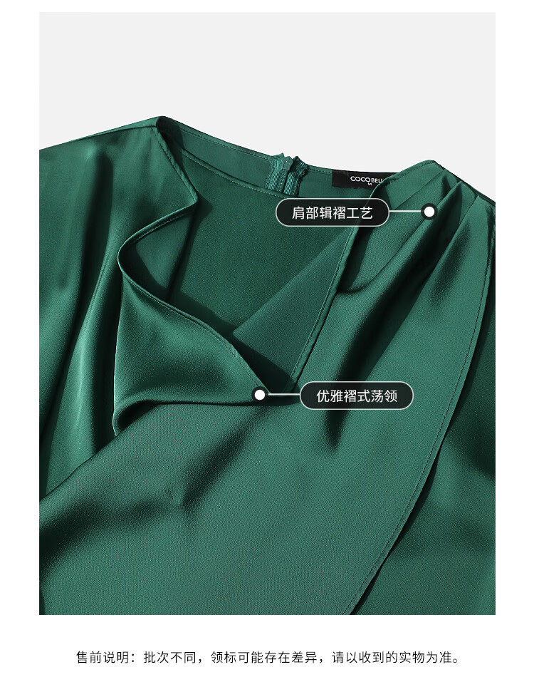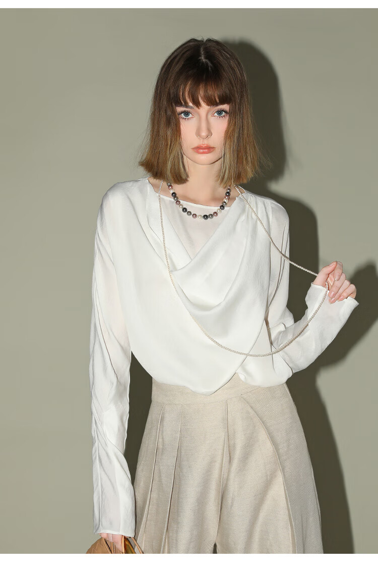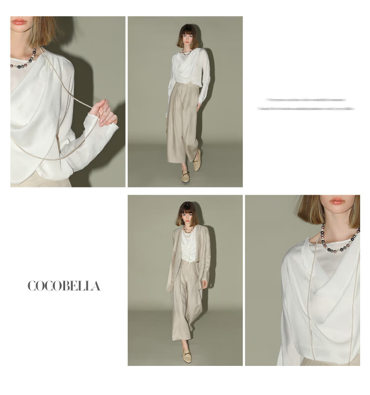 【秒杀】COCOBELLA设计感荡领缎面衬衫精致围巾领温柔通勤衬衫SR0007