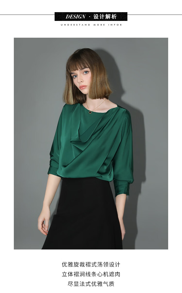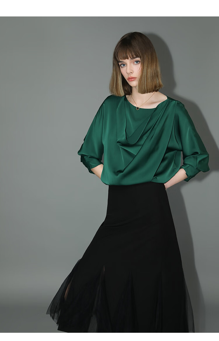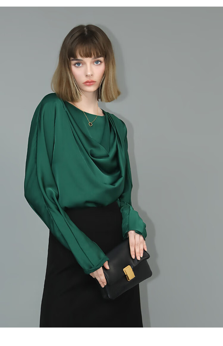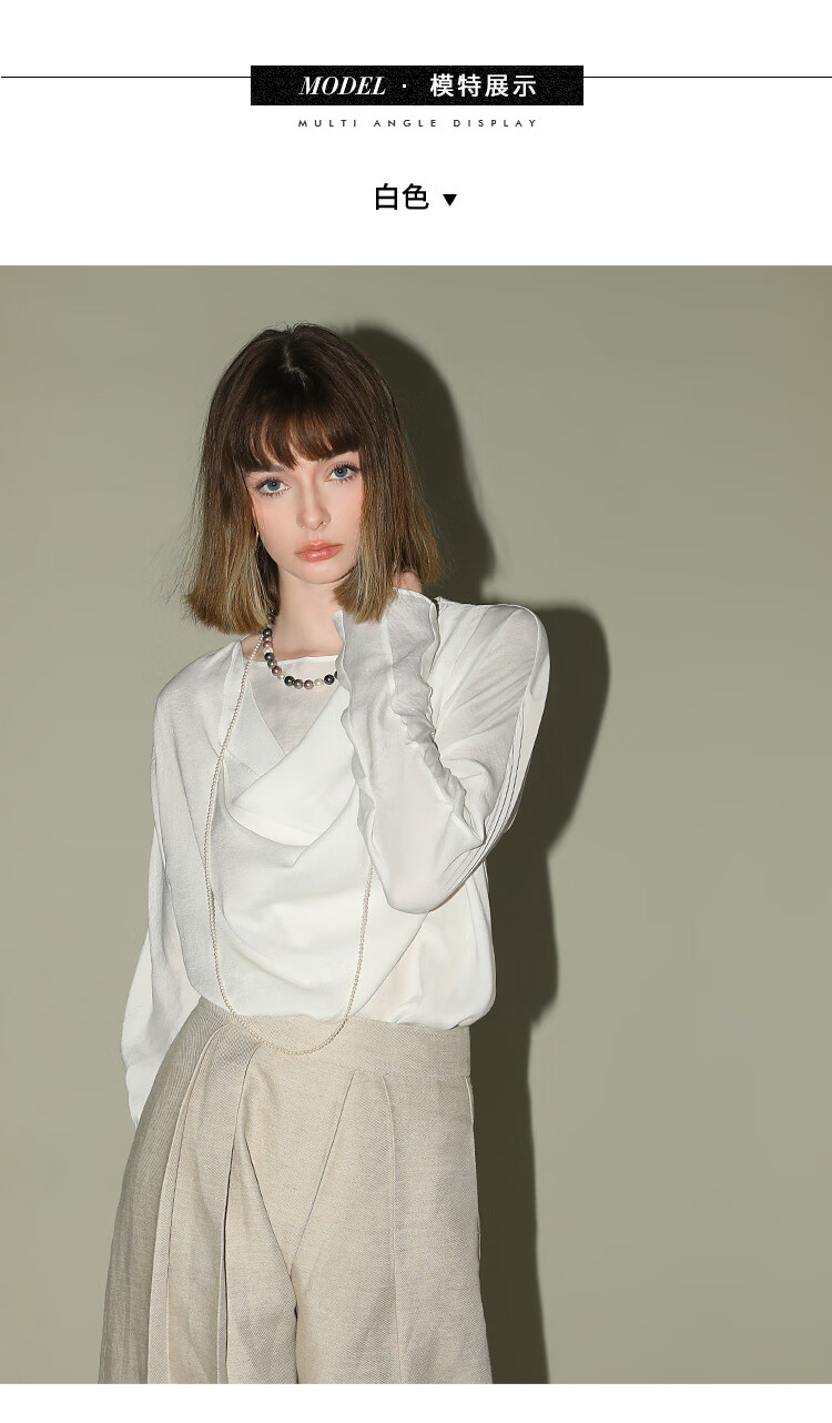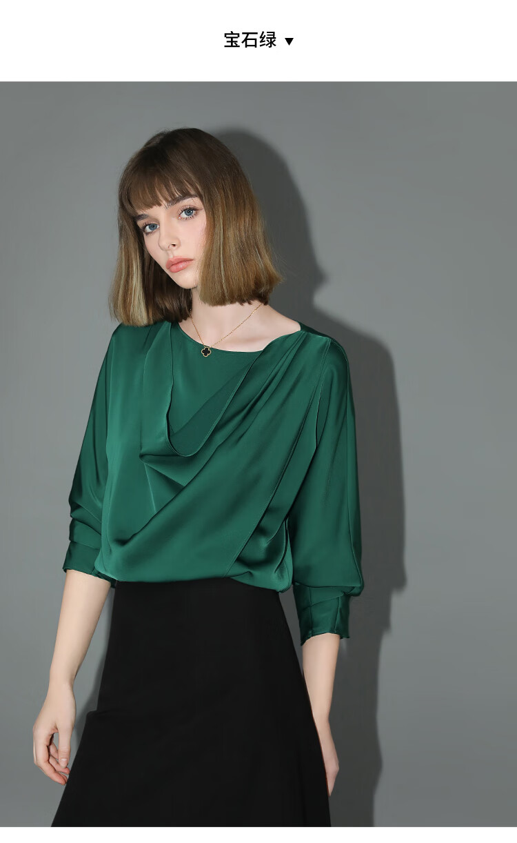 【秒杀】COCOBELLA设计感荡领缎面衬衫精致围巾领温柔通勤衬衫SR0007
