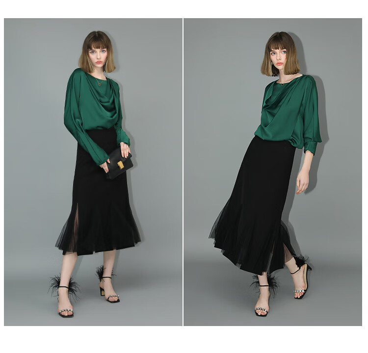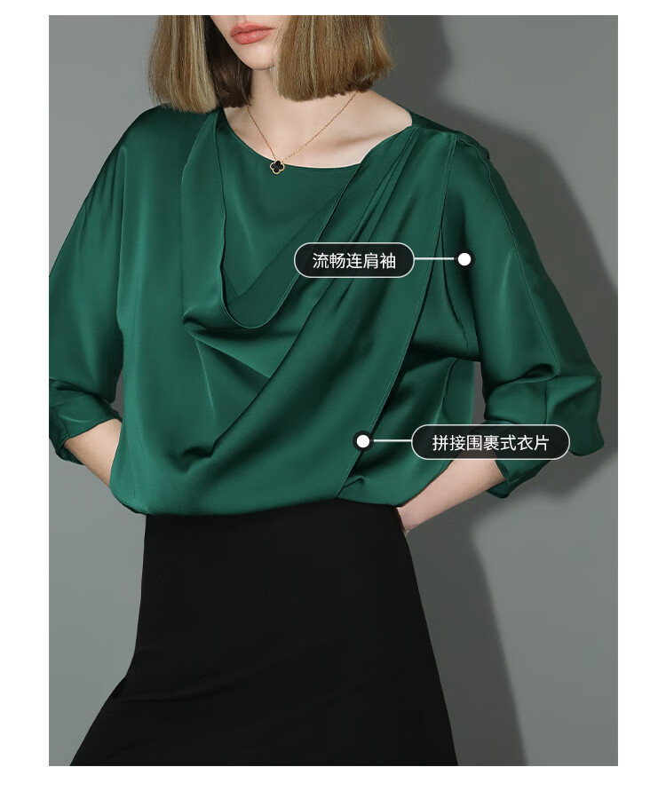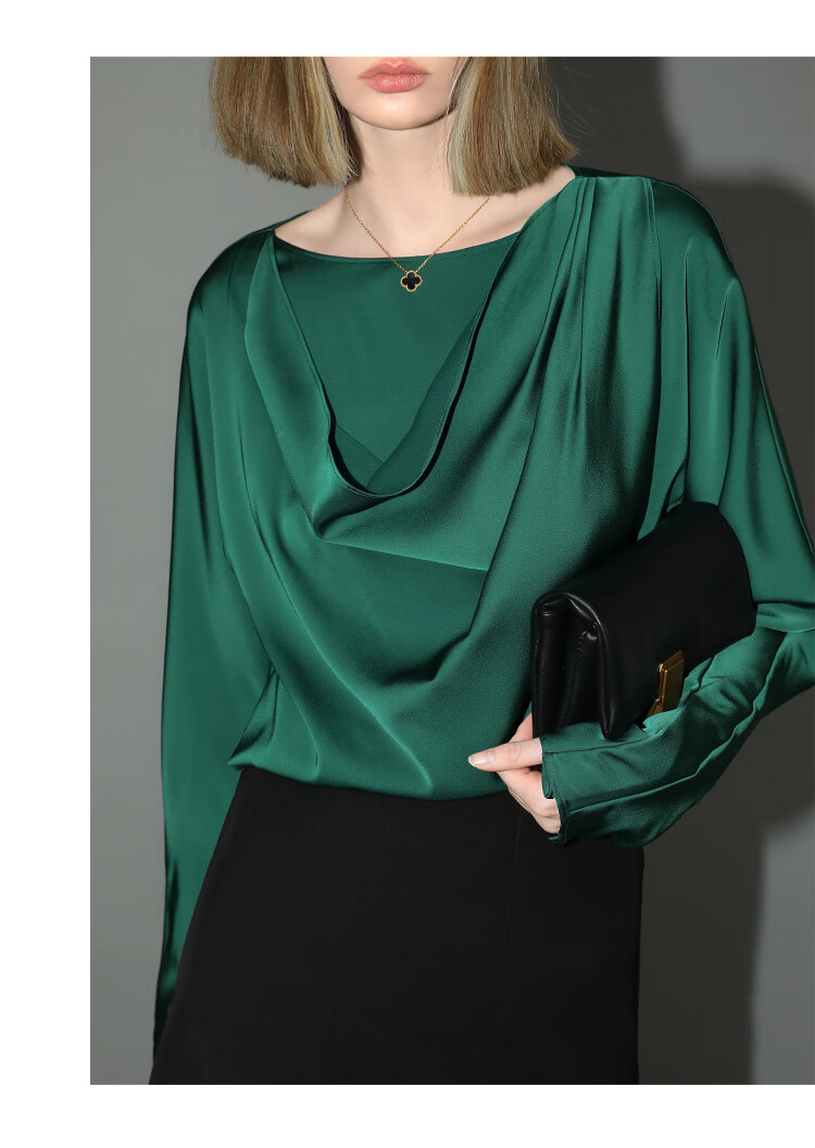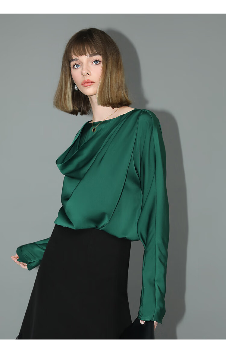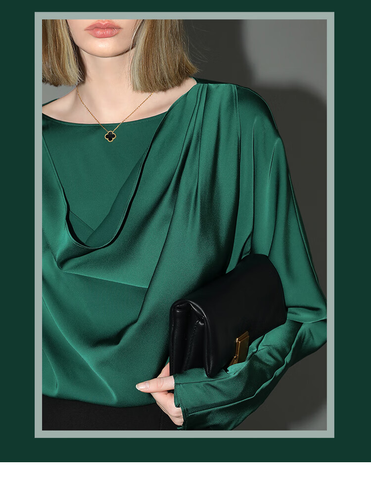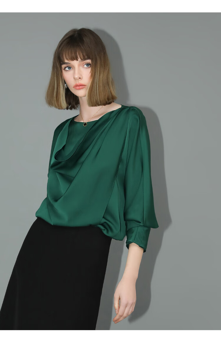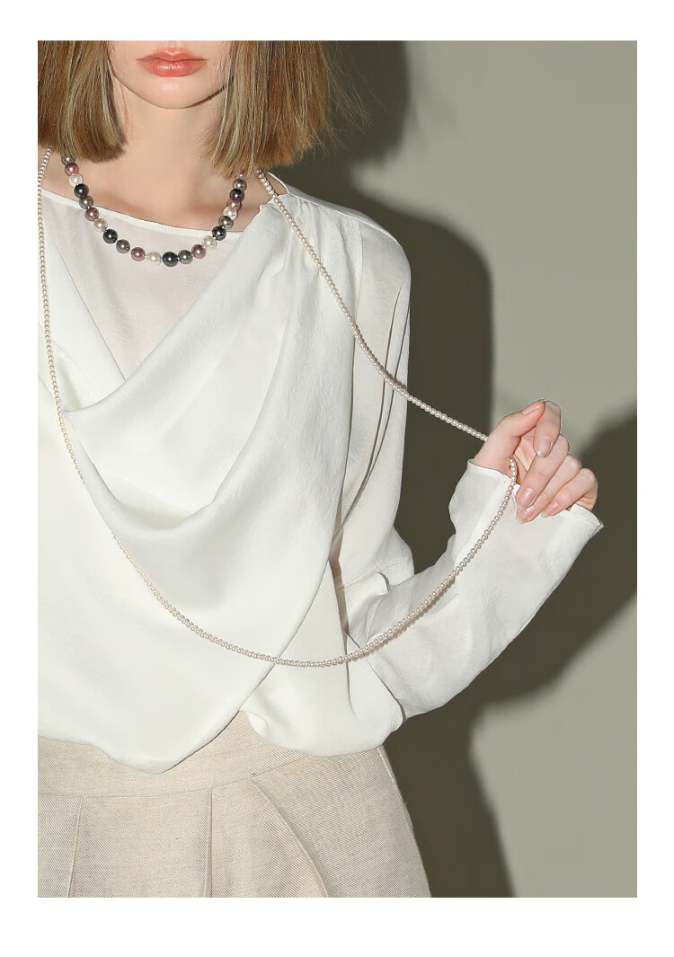 【秒杀】COCOBELLA设计感荡领缎面衬衫精致围巾领温柔通勤衬衫SR0007