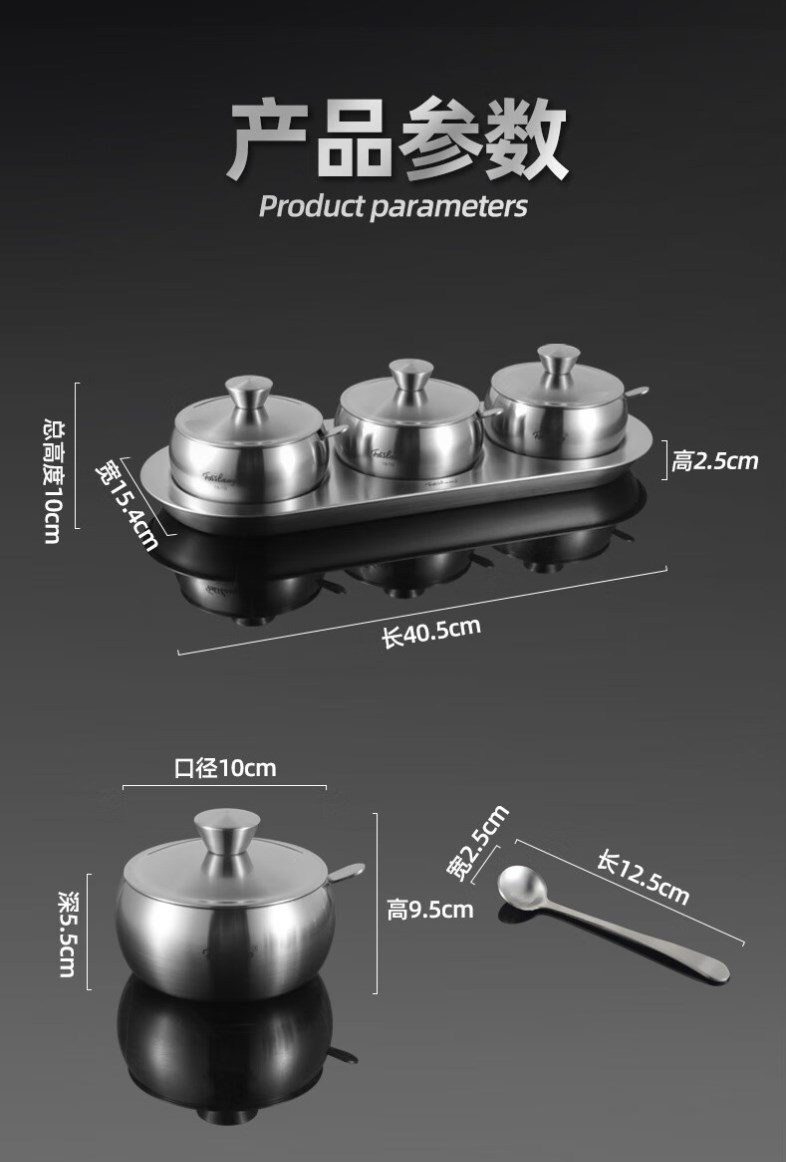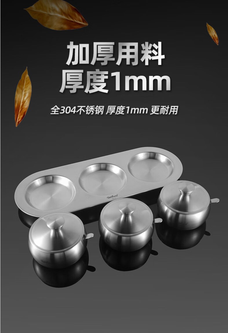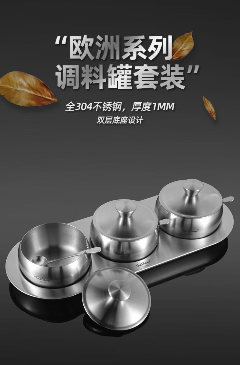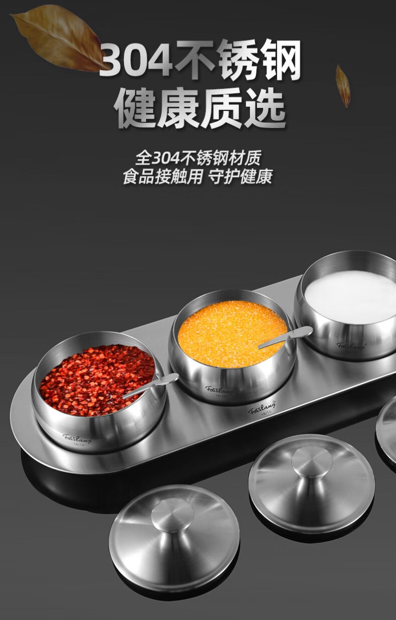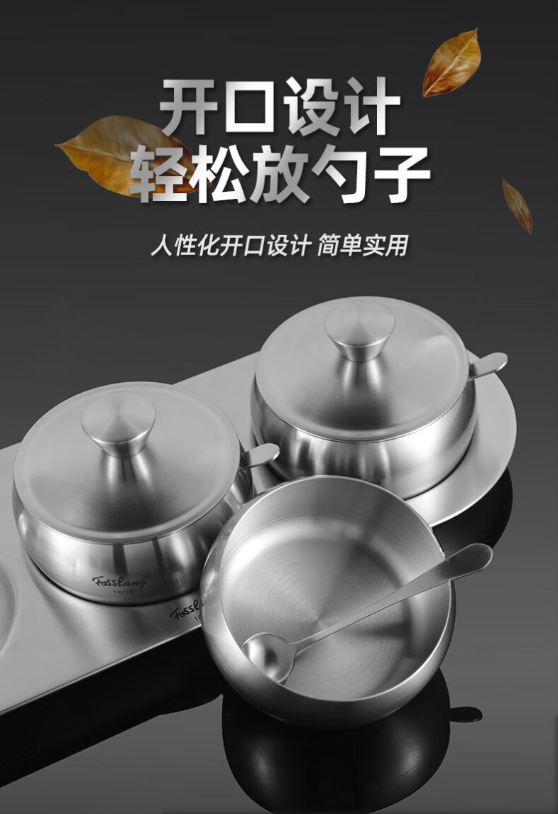 【304不锈钢调料罐】菲仕朗304不锈钢调料罐厨房调料瓶3个装套装佐料瓶大容量味精盐带勺 调味罐 FSL-TWG001