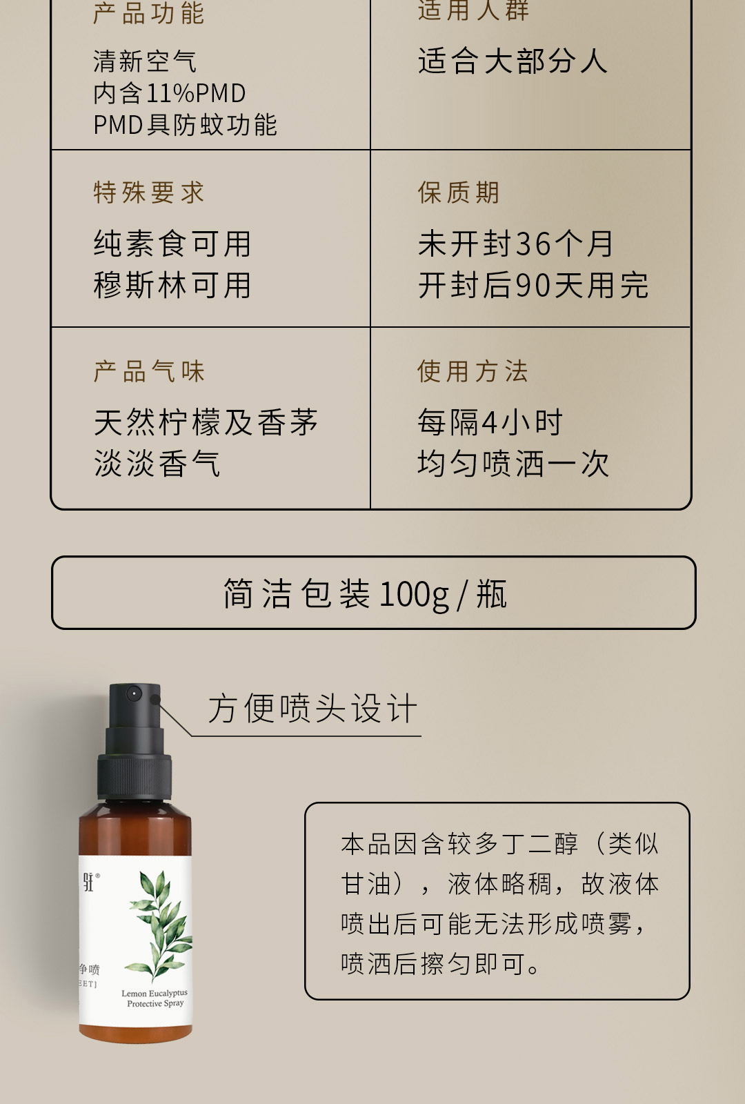 植物防护净喷 含天然驱蚊成分柠檬桉醇PMD清新自然光阴小驻100g/瓶【京东快递送货上门】