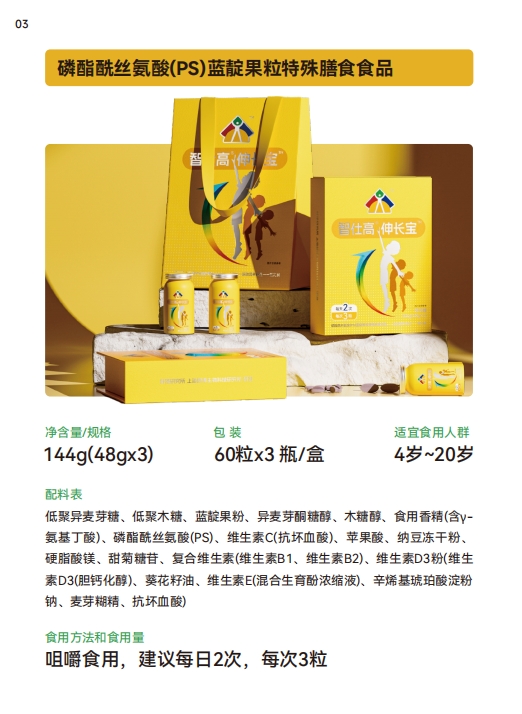 智仕高伸长宝儿童均衡营养磷酯酰丝氨酸蓝靛果粒60粒x3 瓶/盒