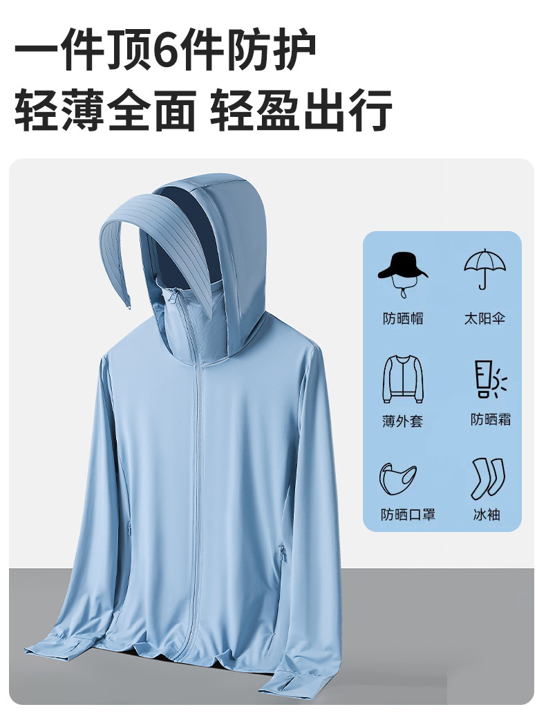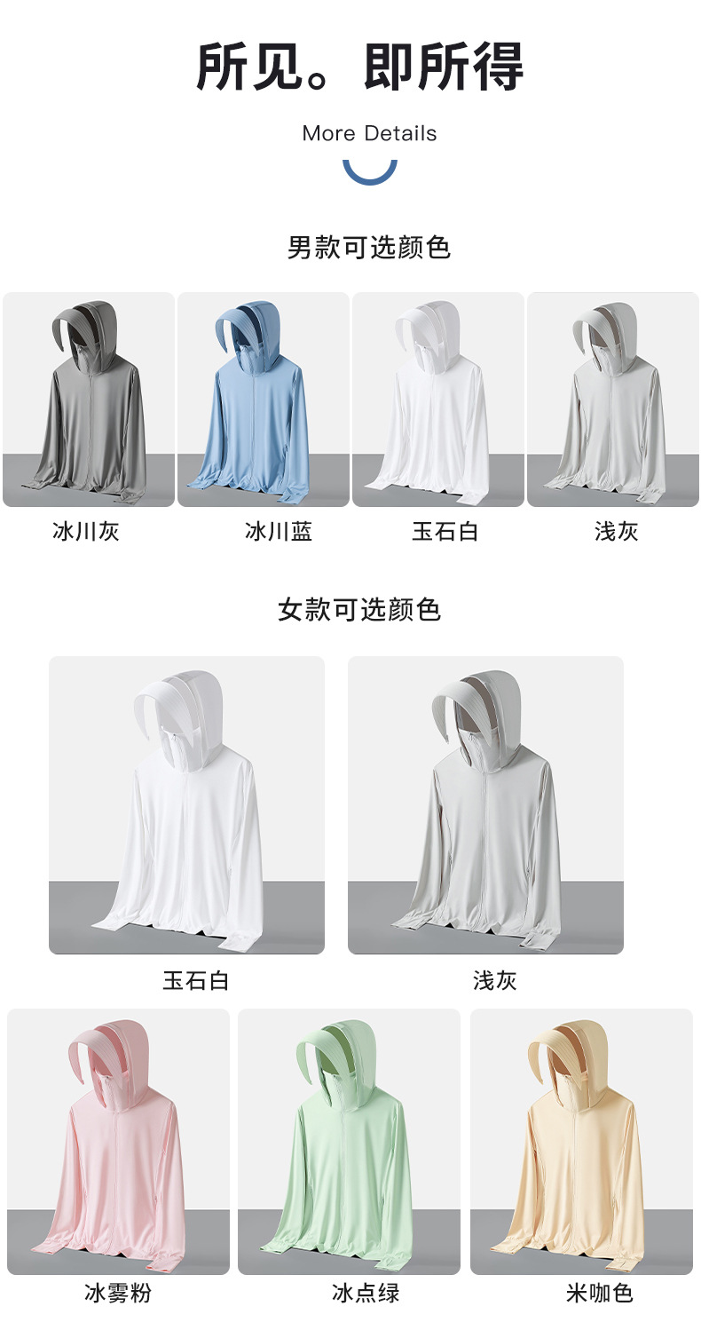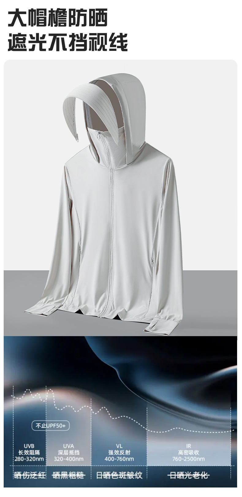 户外凉感冰丝防晒衣女防紫外线轻薄透气皮肤衣男夏季大帽檐防晒服