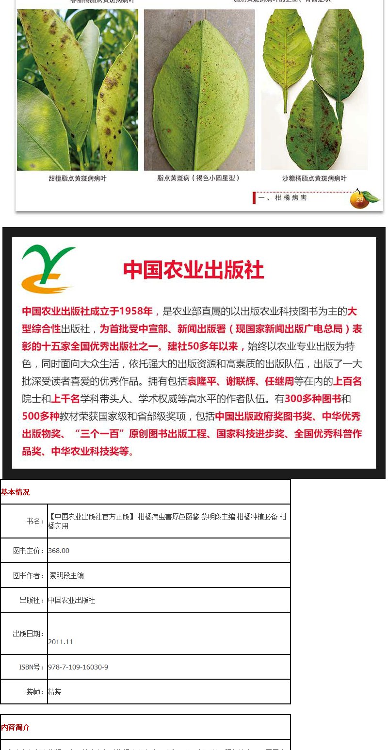 柑橘病虫害原色图鉴【中国农业出版社官方正版】 蔡明段主编 柑橘种植必备 柑橘实用