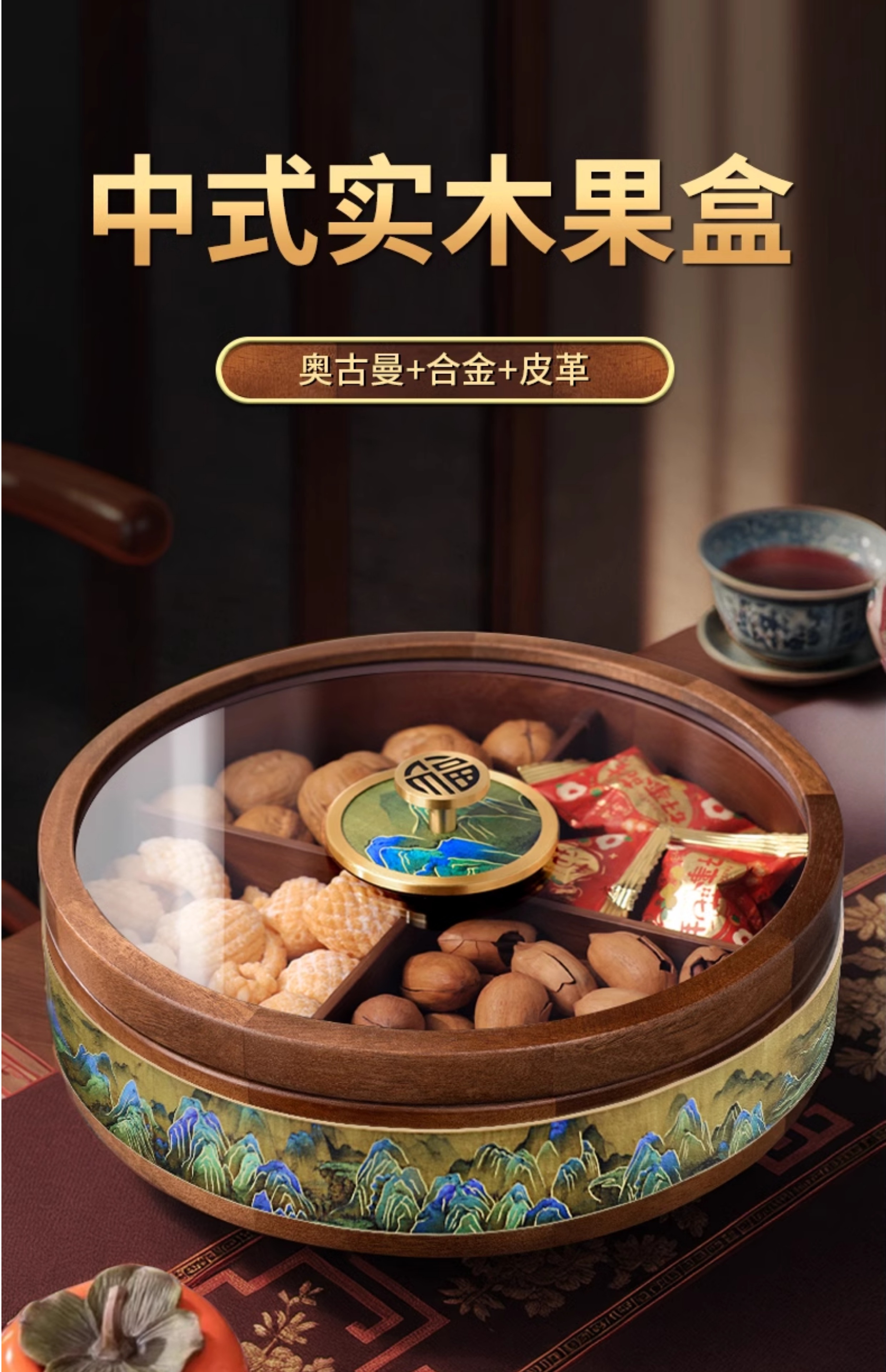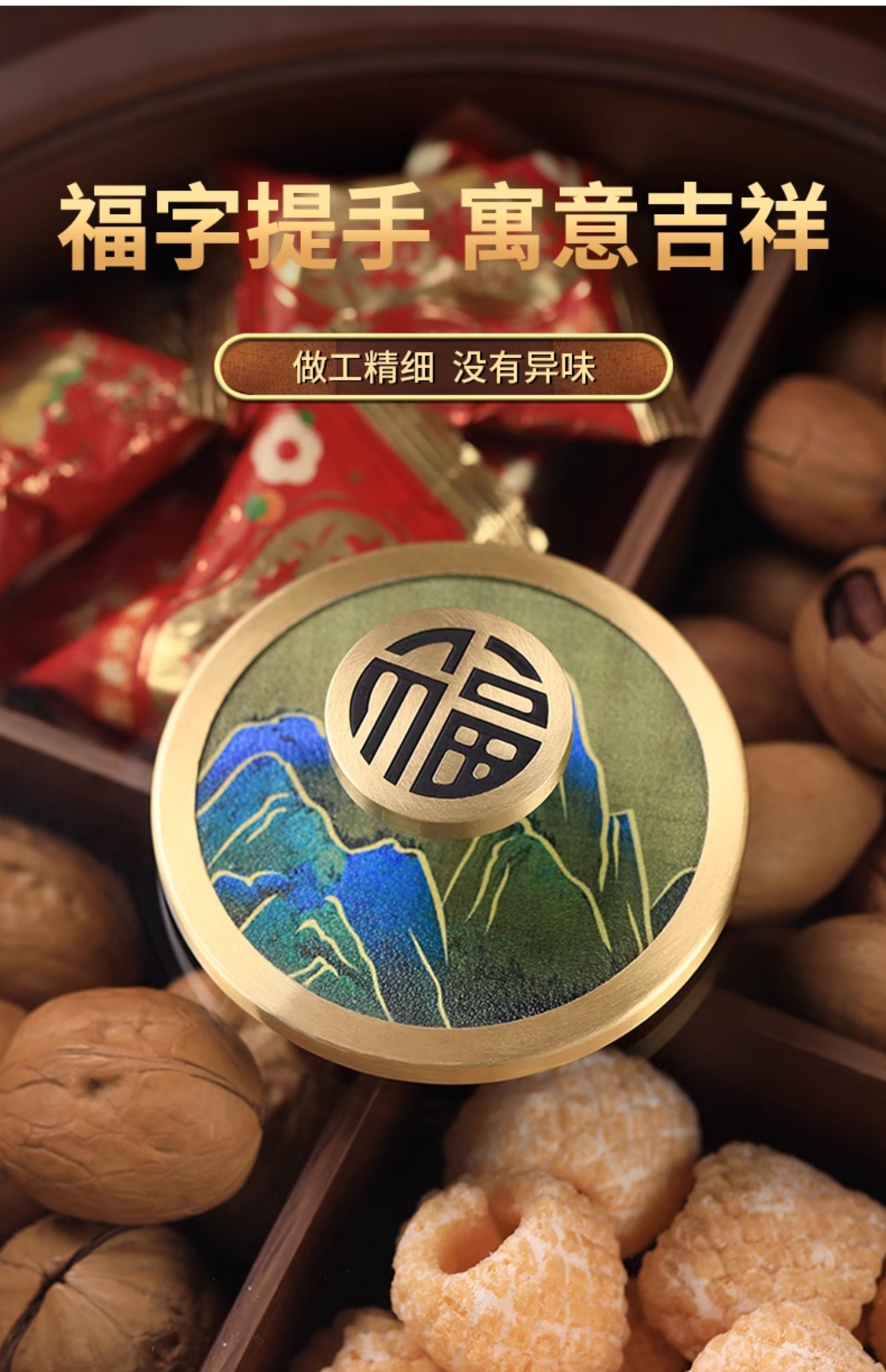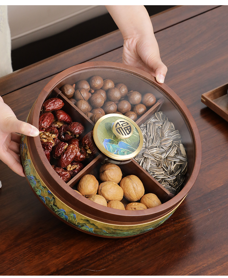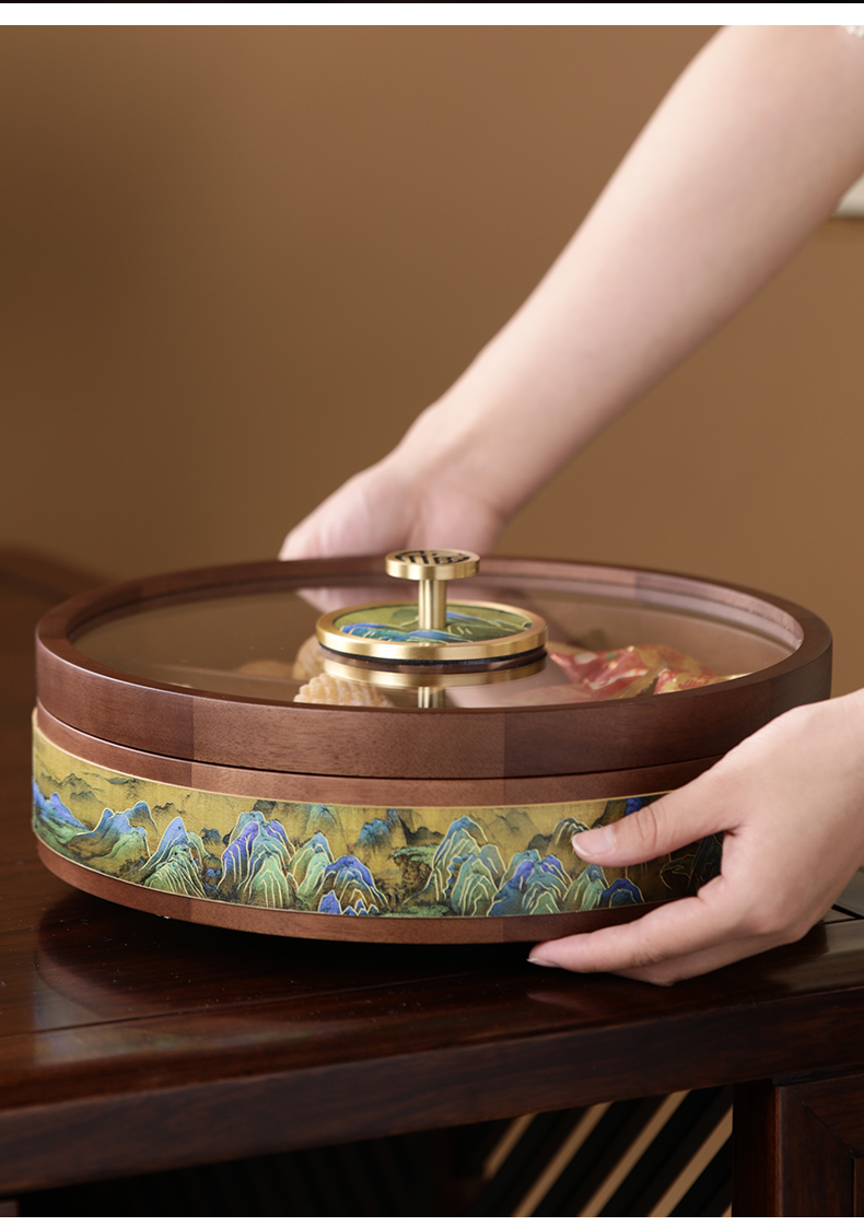 E-GSR-千里江山胡桃木单层果盒新中式轻奢干果盒零食收纳