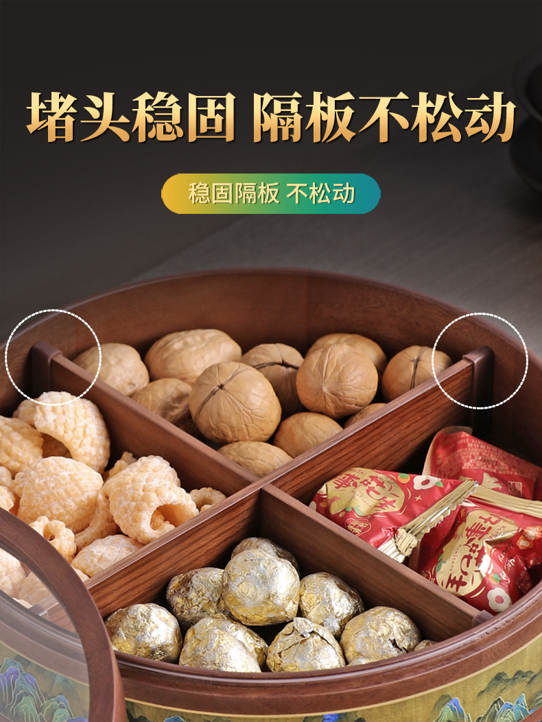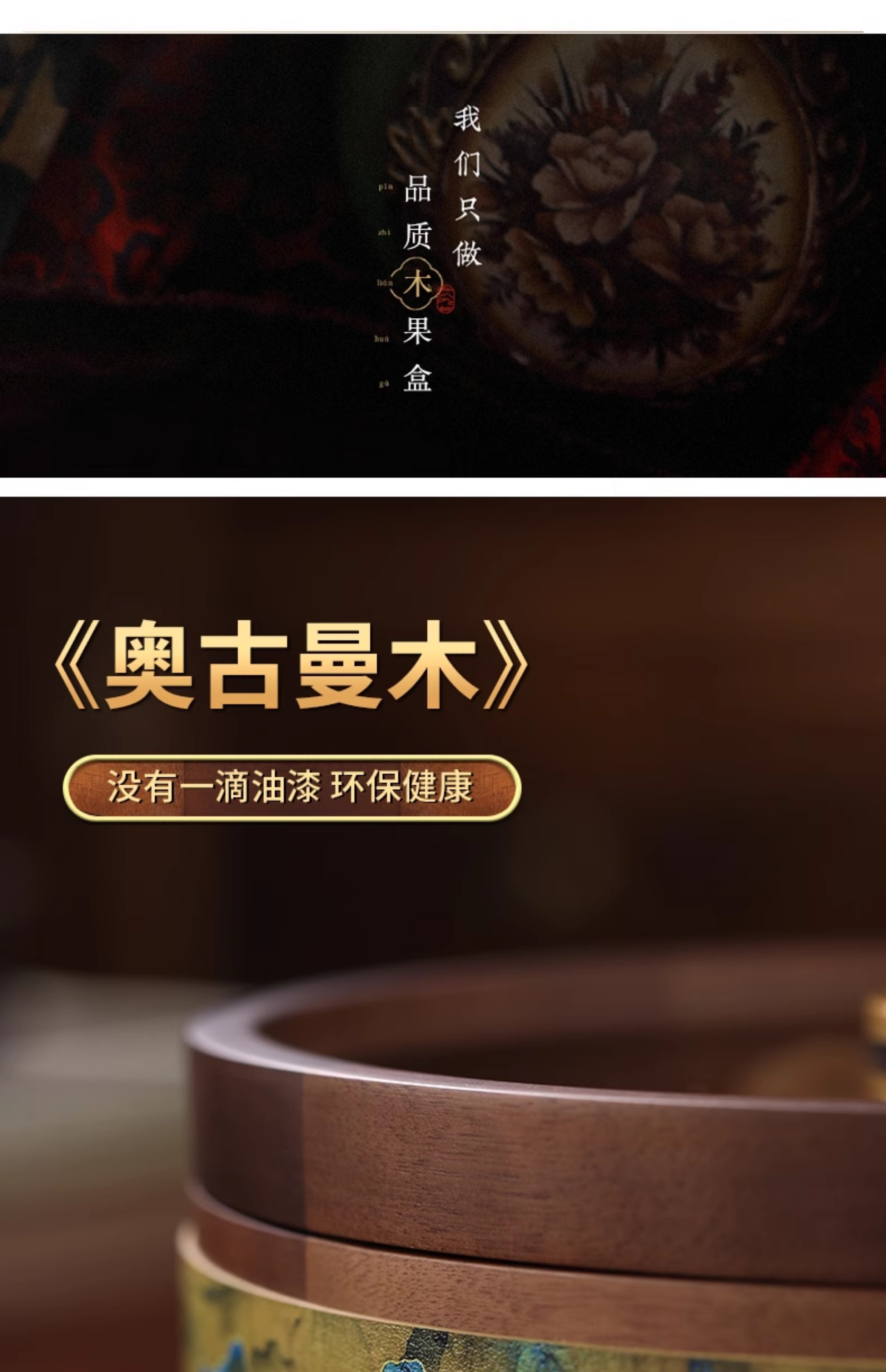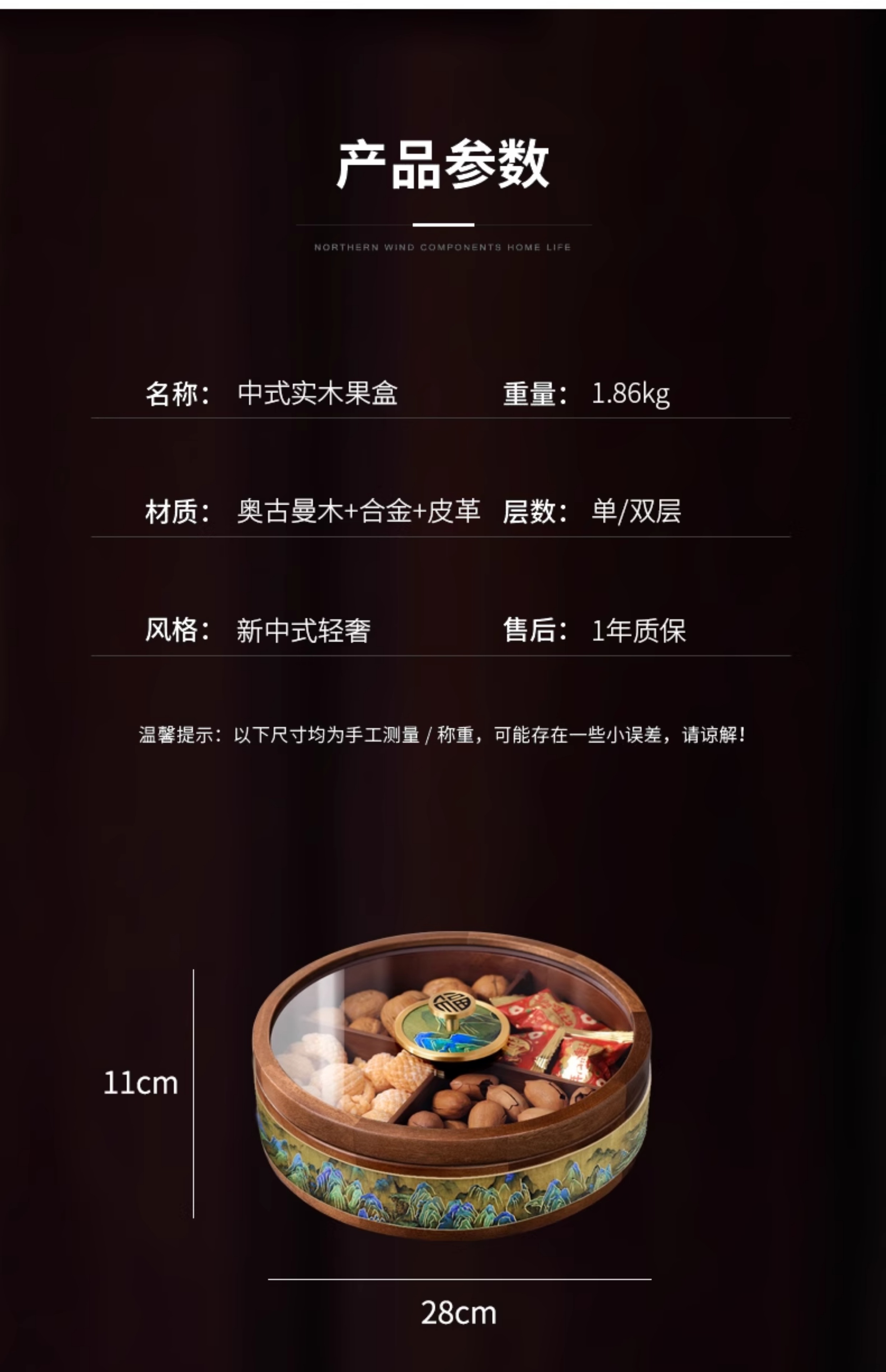 E-GSR-千里江山胡桃木单层果盒新中式轻奢干果盒零食收纳
