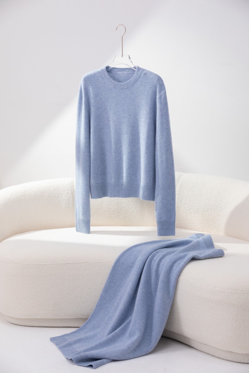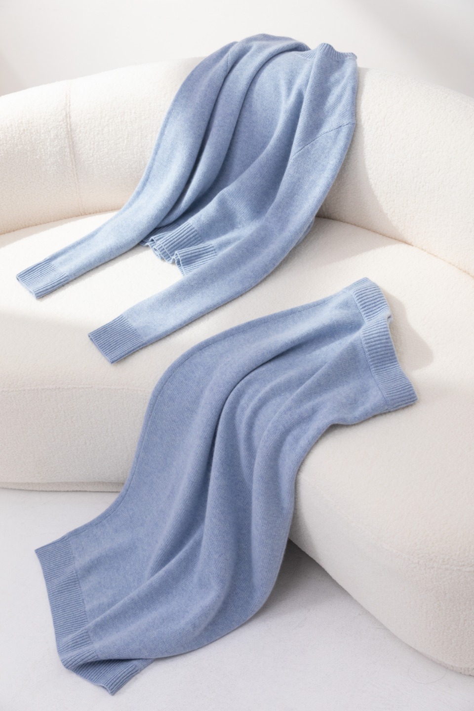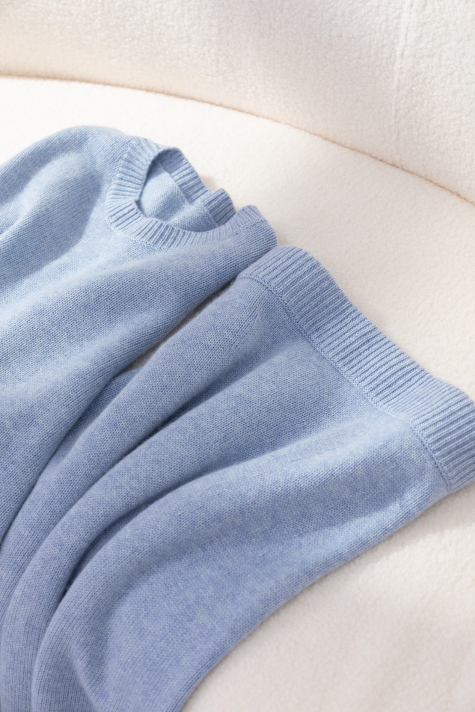 纯羊绒材质,又轻又暖。轻盈的颜色冲淡了冬日衣着的厚重感,非常小清新。可以整套单穿走老钱风,也可以搭配一件衬衫在里面把领子露出来走文艺小资风,或搭配一件圆领T把下摆和领口露出,走休闲运动风。建议搭配切尔西短靴。