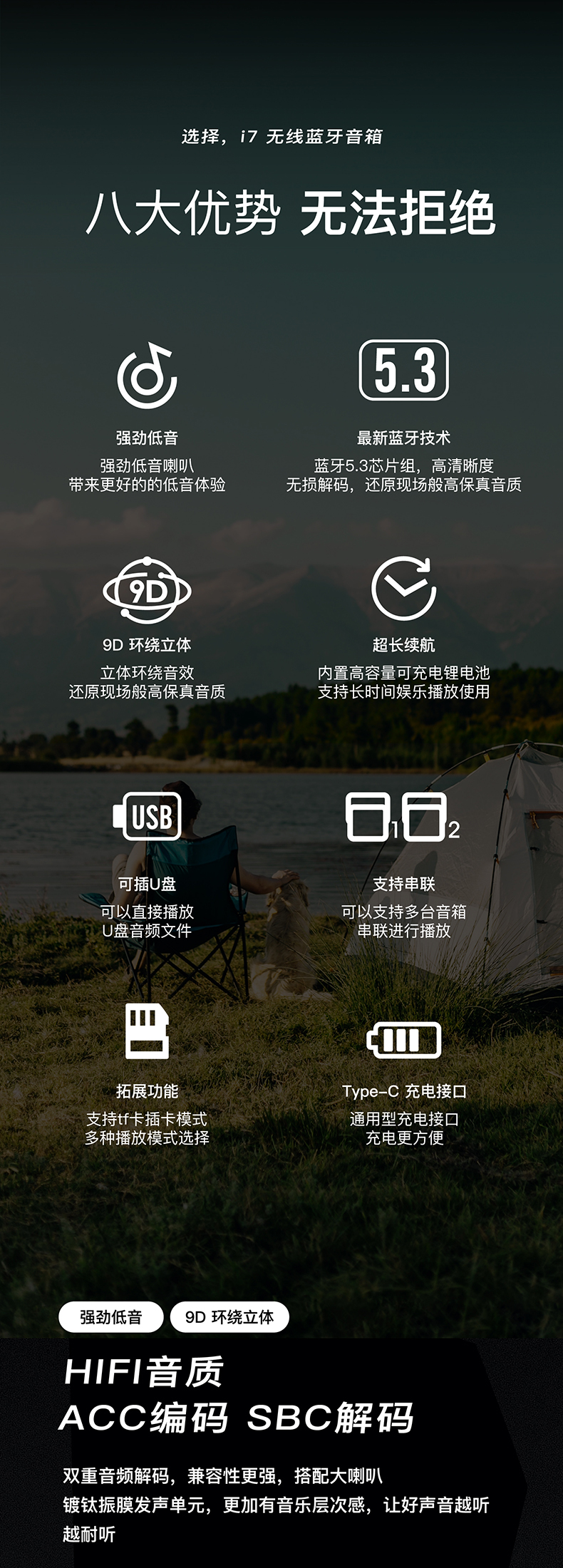 塞尔兰斯户外潮流音响, 无损音质、超长续航,听音乐更震撼【G】