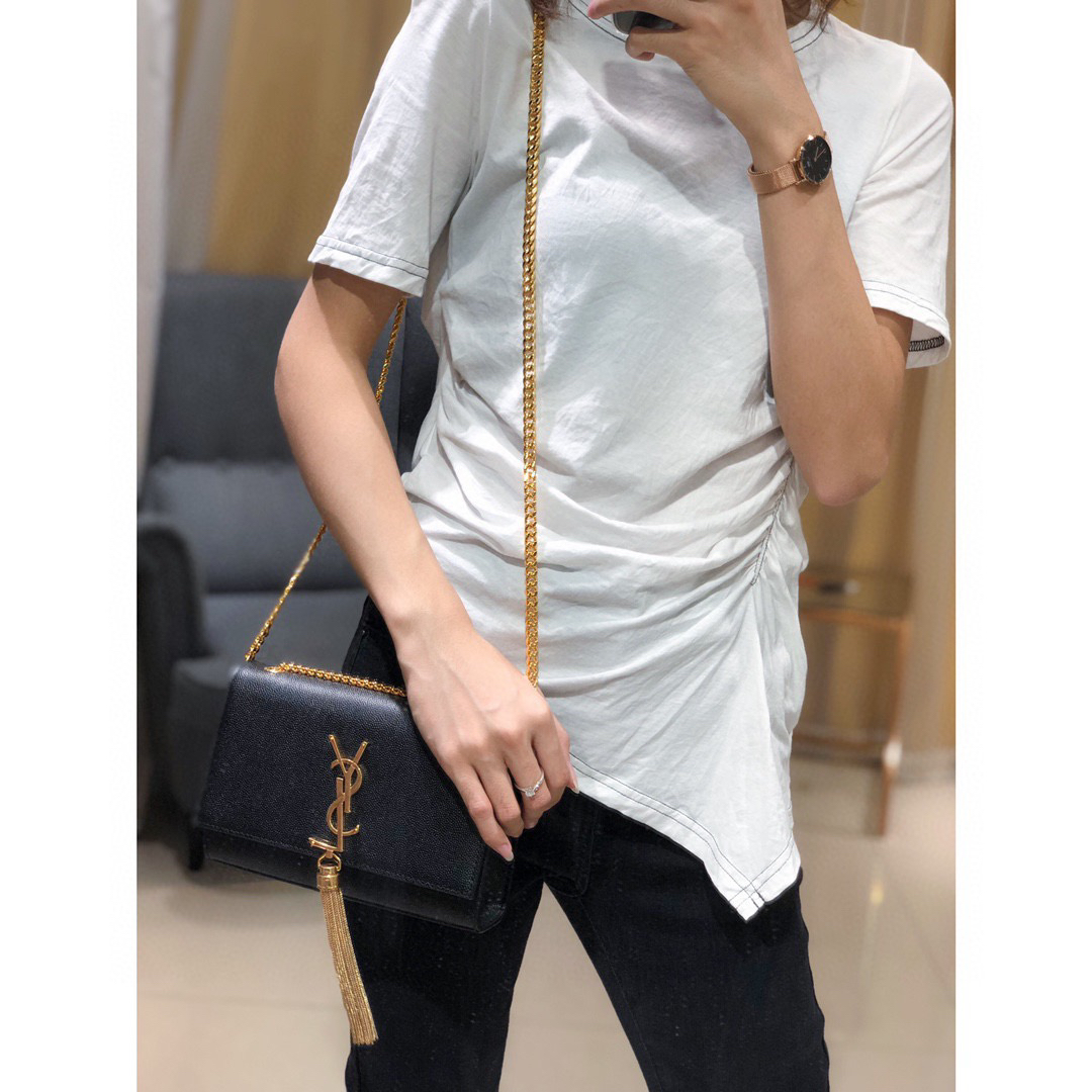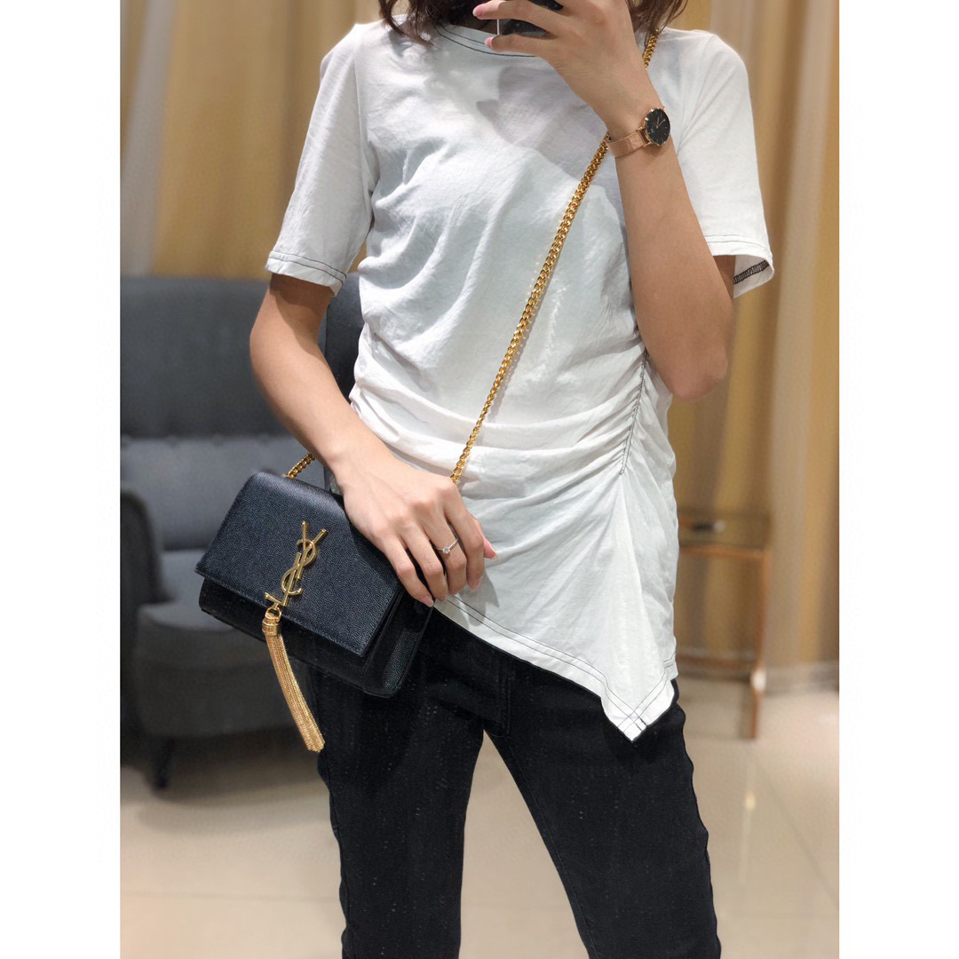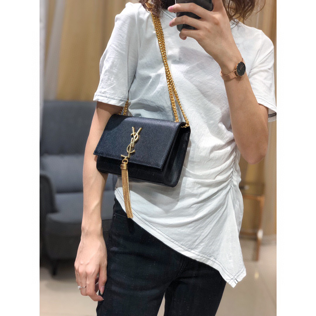 经典款KATE包黑色牛皮金扣(有流苏)