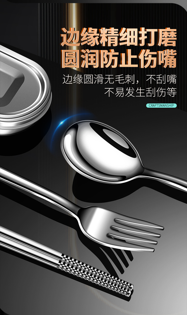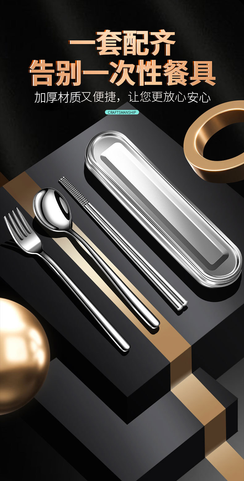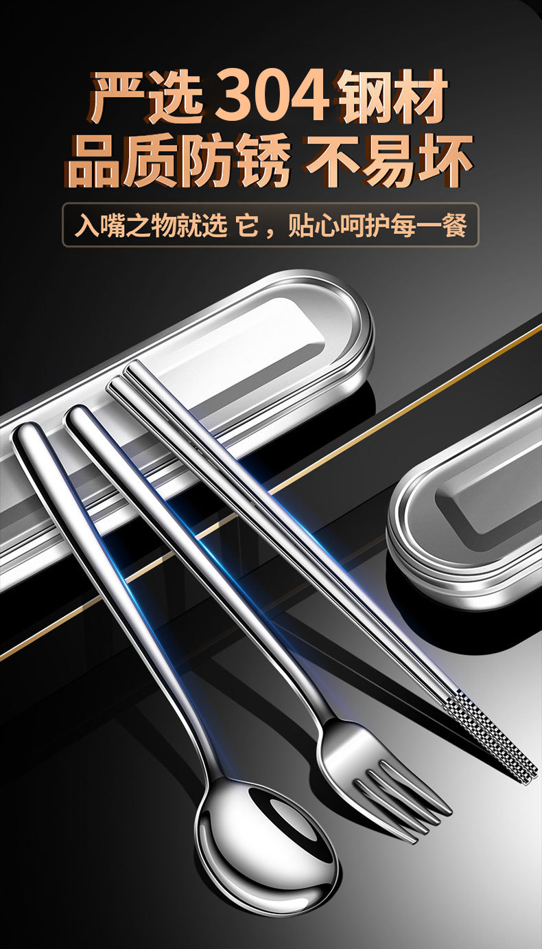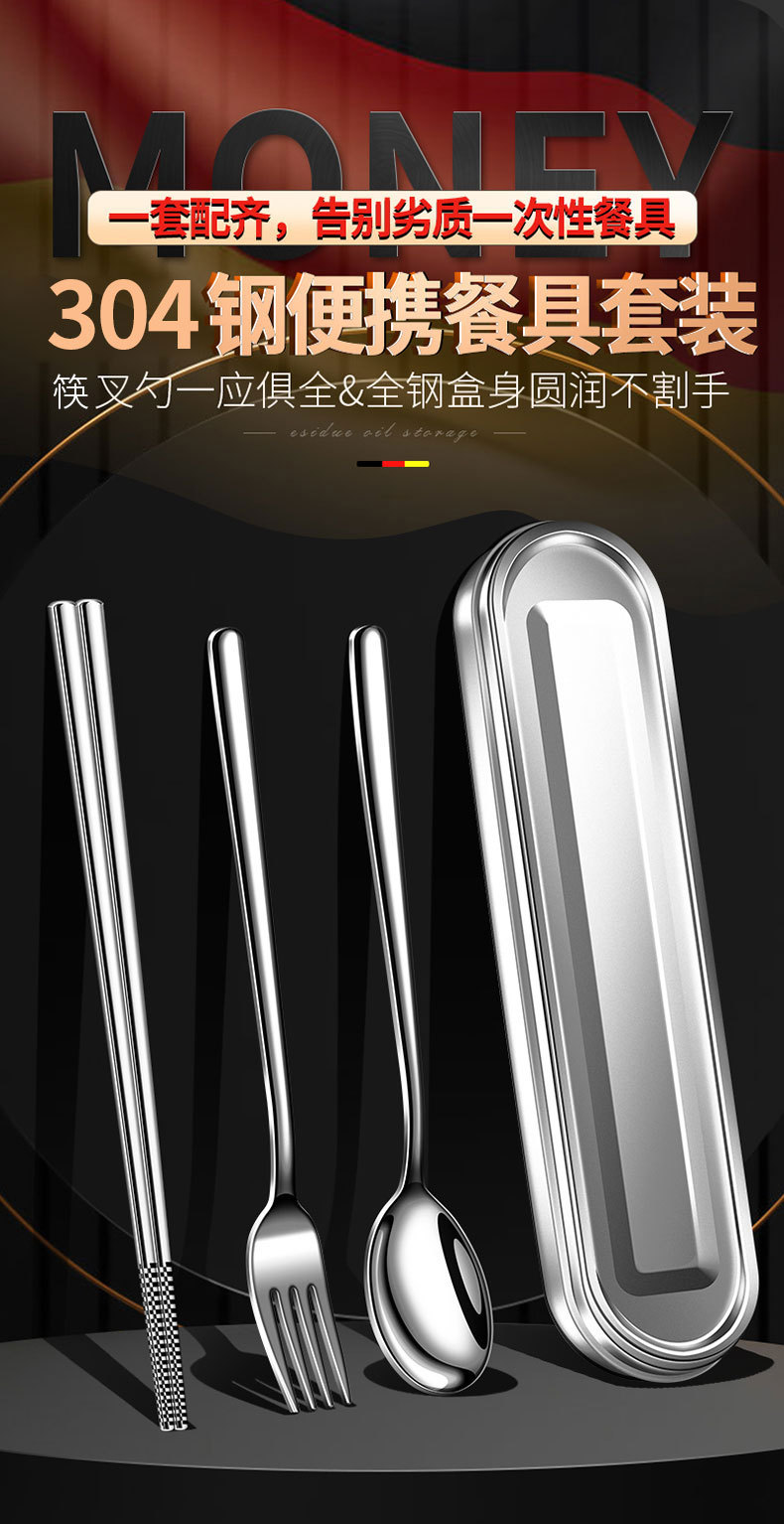 【跨境出口德国不锈钢便携餐具】304不锈钢便携餐具上班族餐具盒学生筷勺叉三件套户外餐具套装