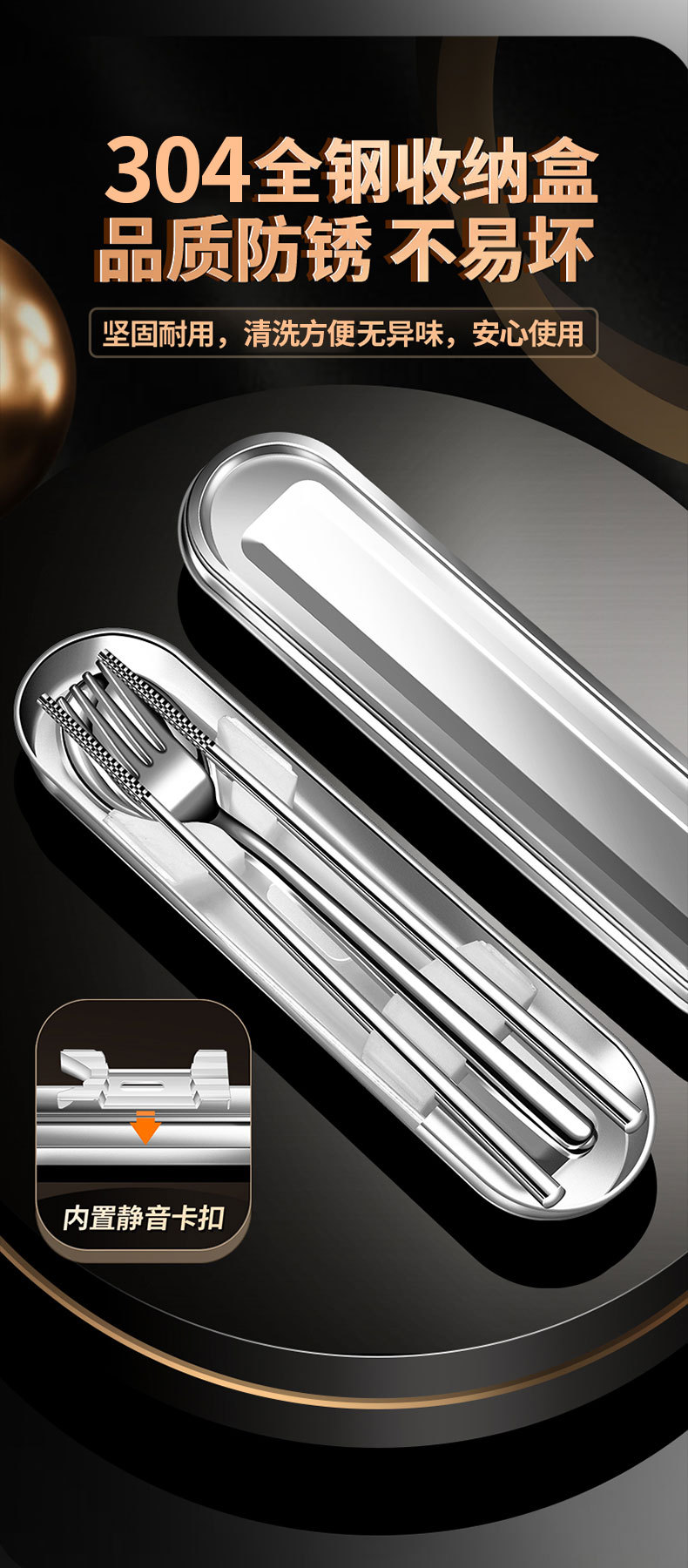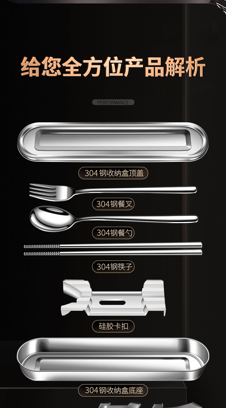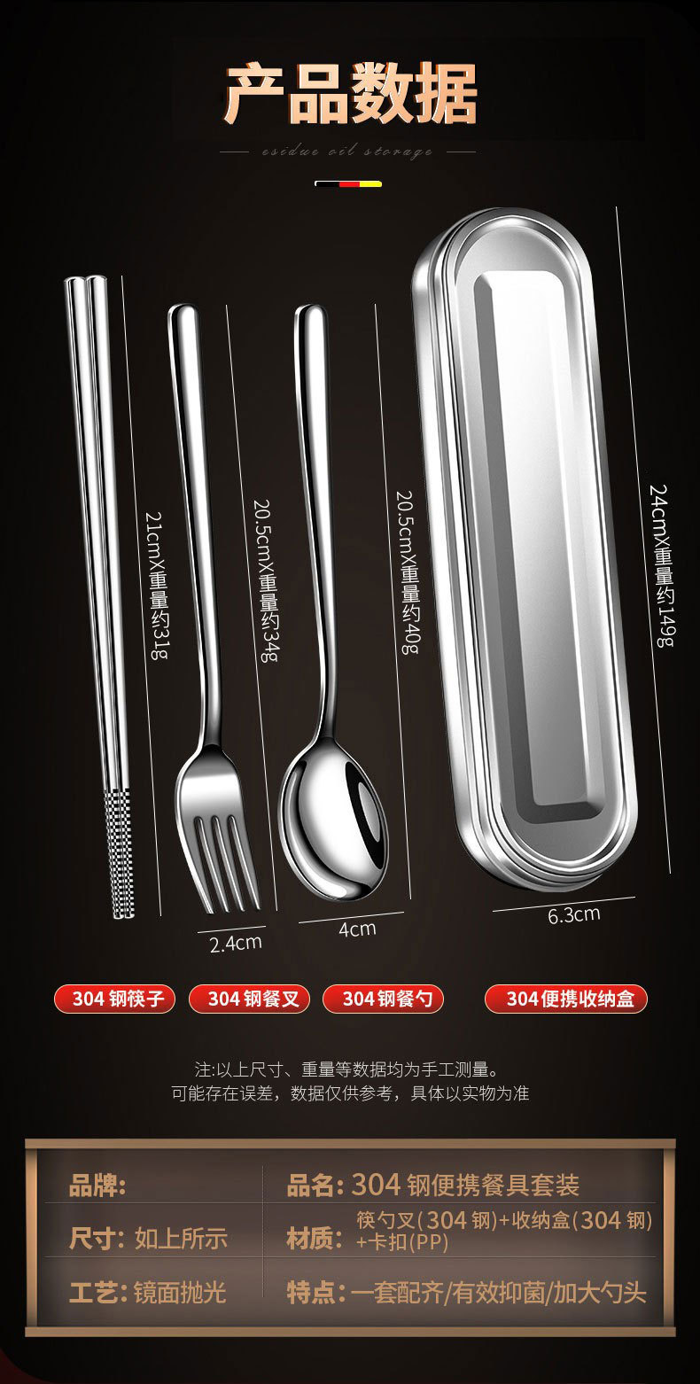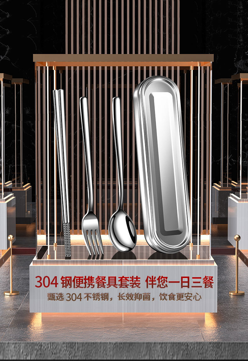 【跨境出口德国不锈钢便携餐具】304不锈钢便携餐具上班族餐具盒学生筷勺叉三件套户外餐具套装