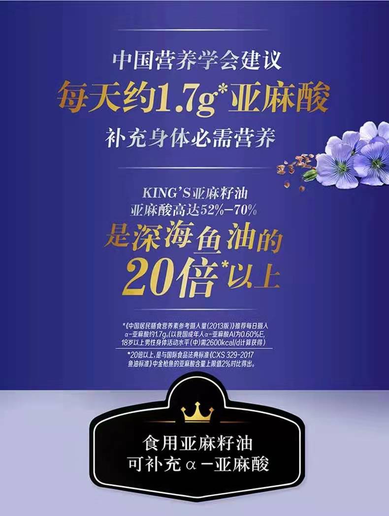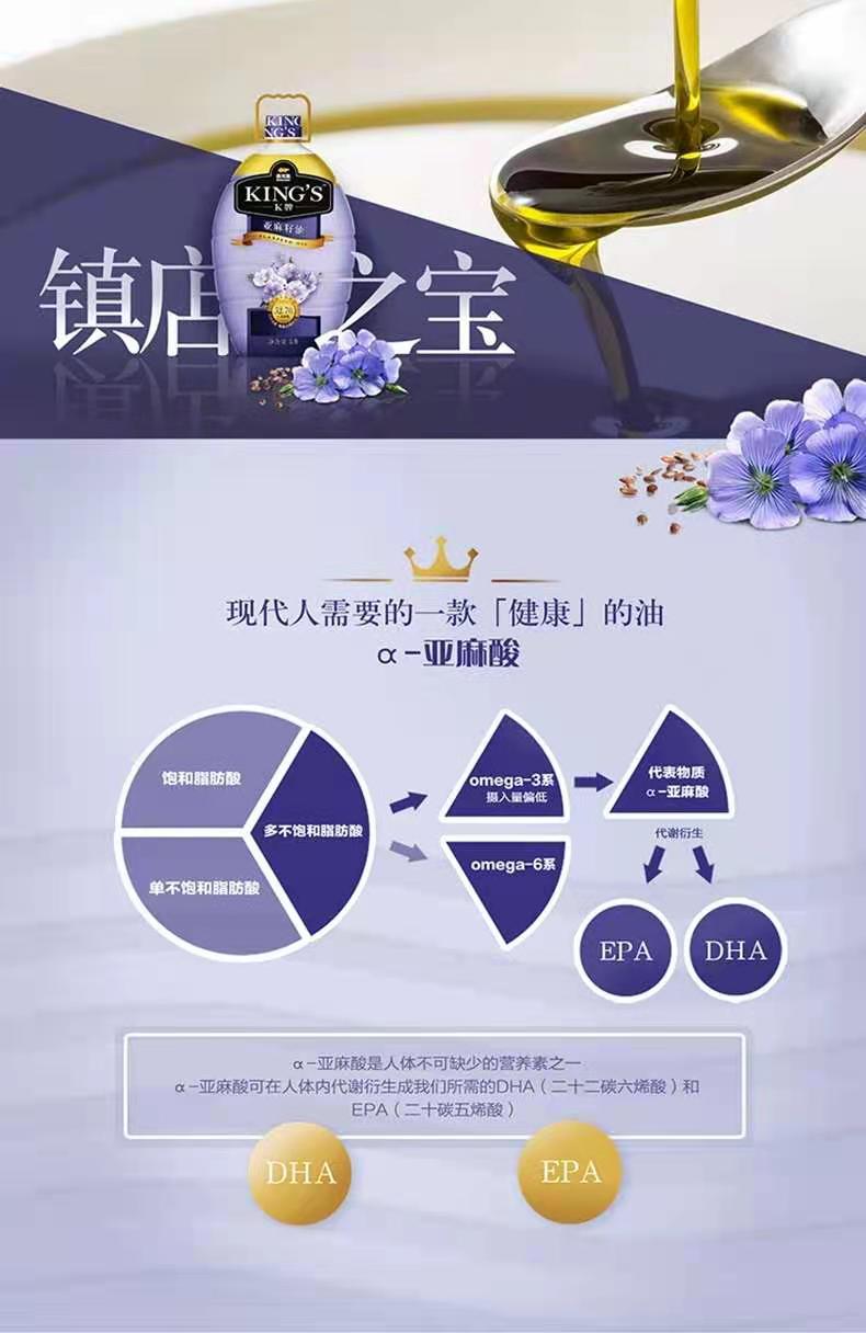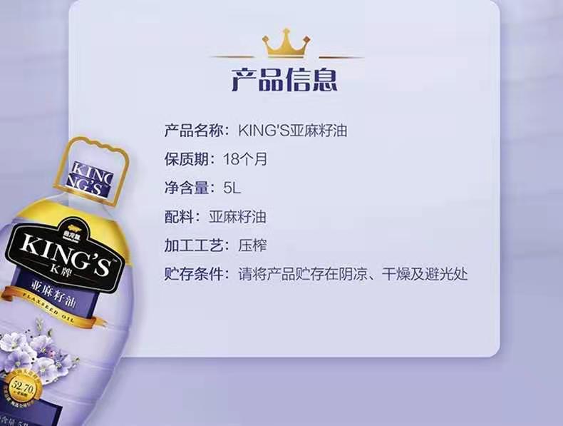 【自营】金龙鱼KINGS冷榨初榨一级亚麻籽油4L