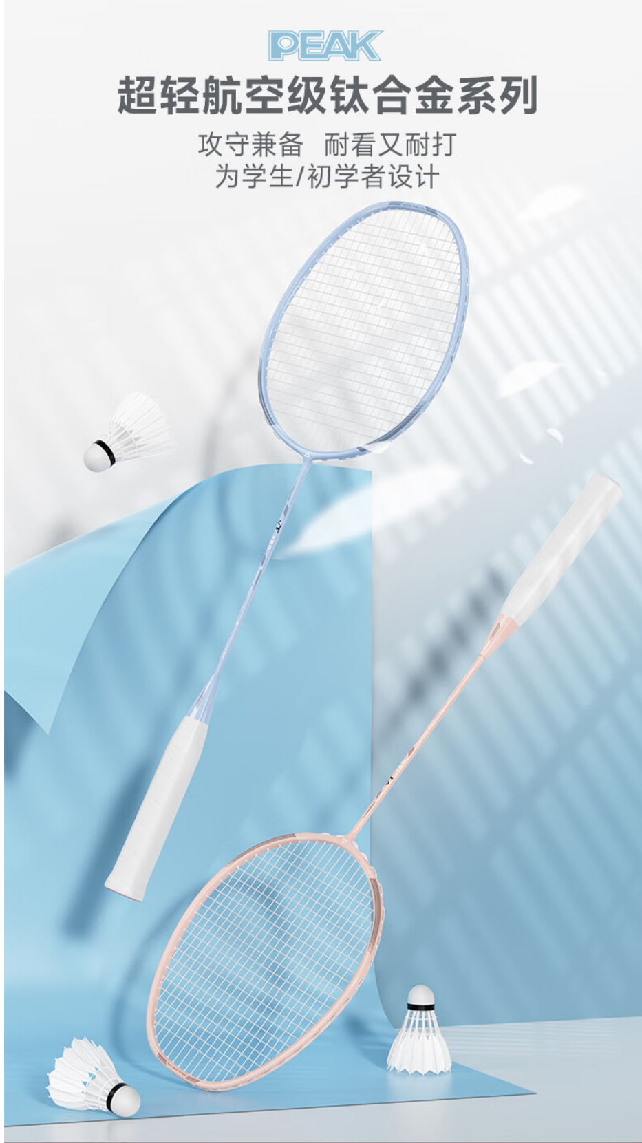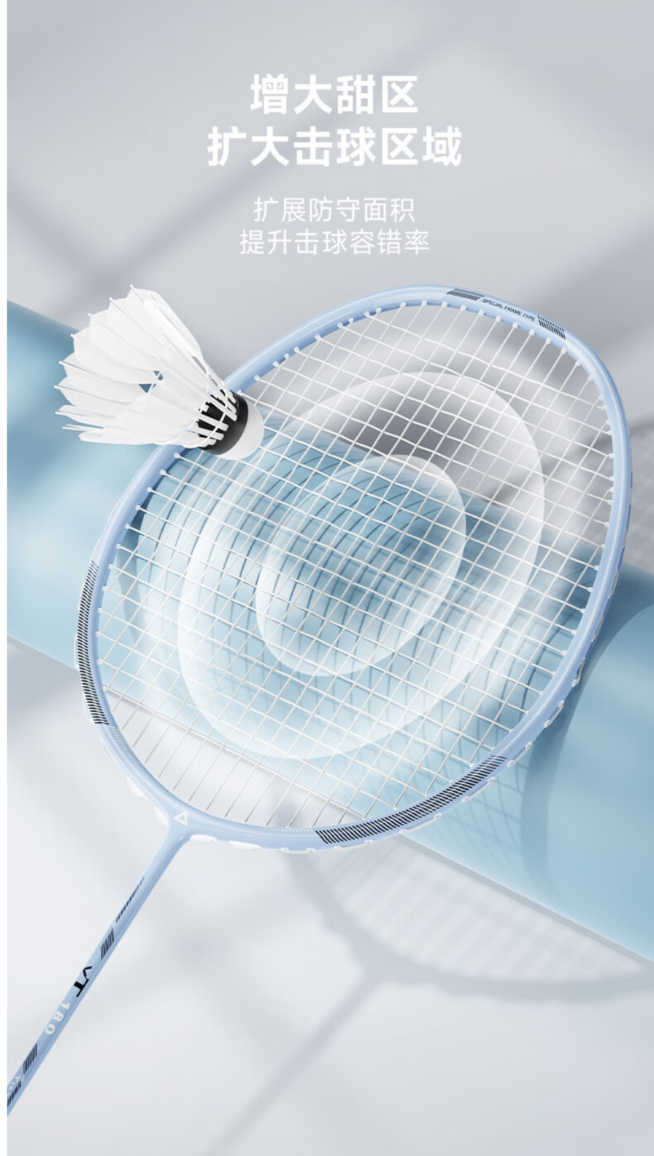 匹克羽毛球拍钛合金耐打成人学生训练比赛拍羽毛球3U单拍VT-180浅蓝 100090110885