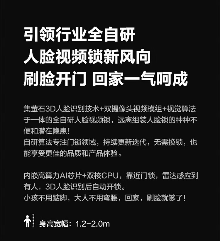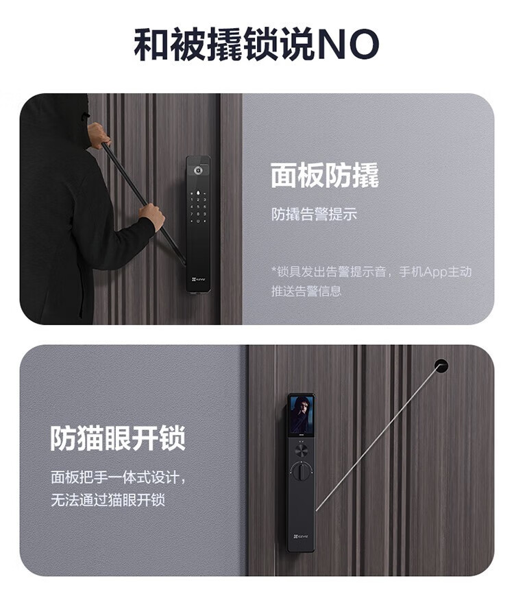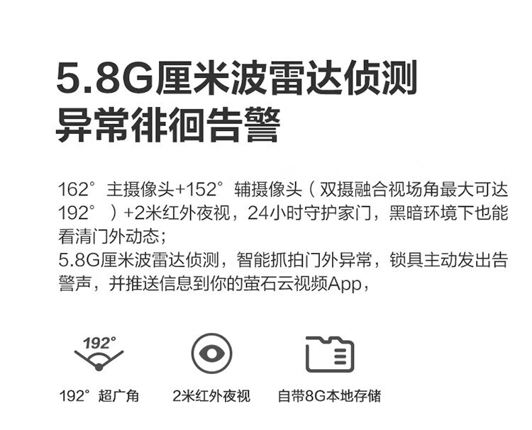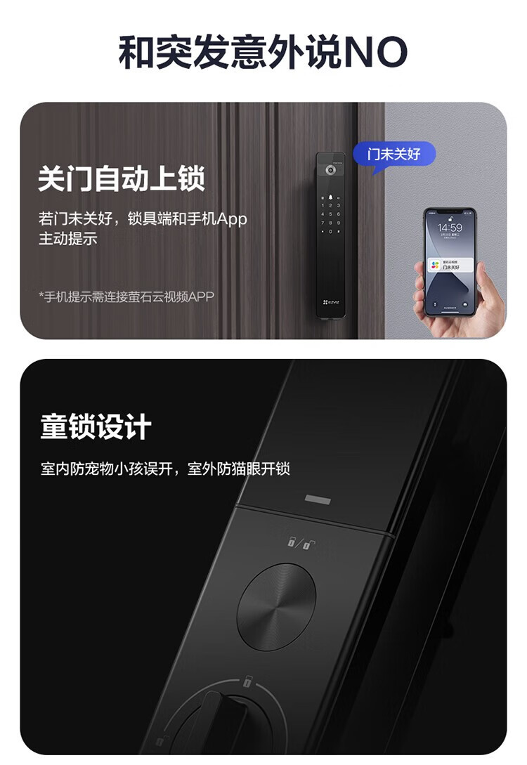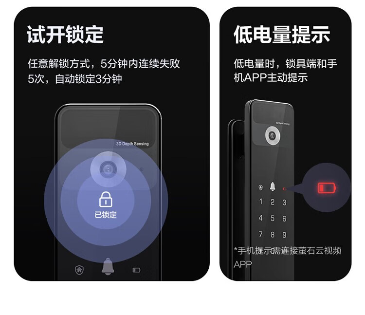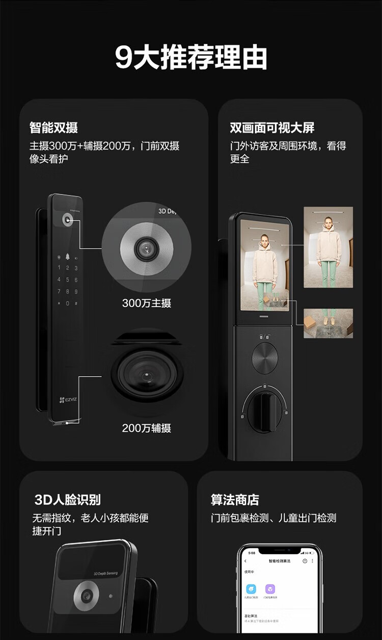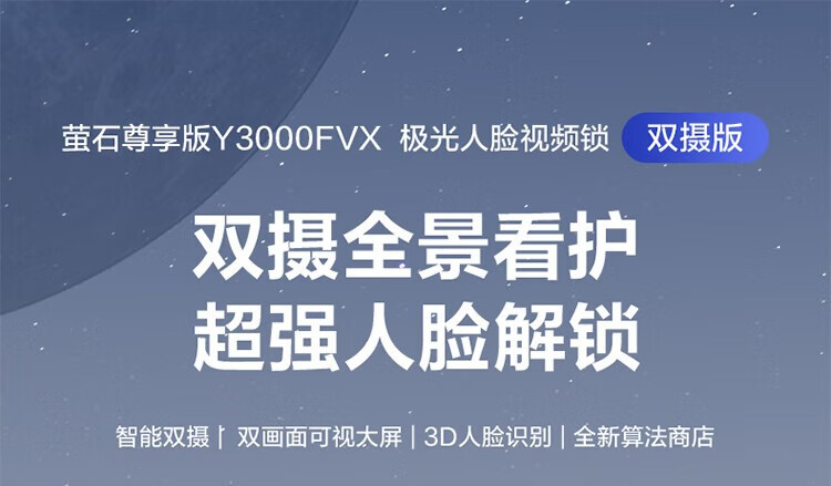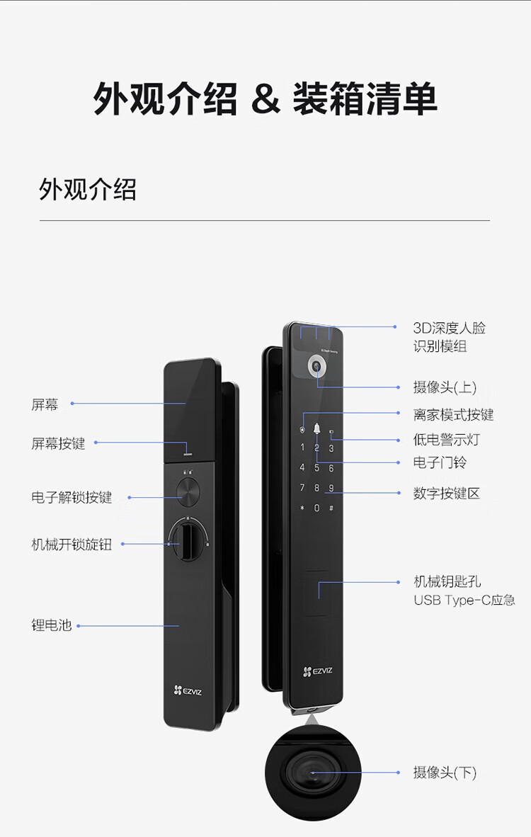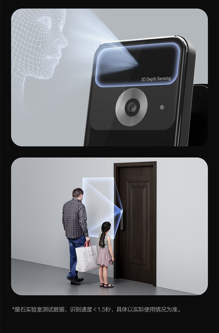 萤石 智能3D人脸识别智能锁 带猫眼双摄像头Y3000FVX 智能家用智能锁