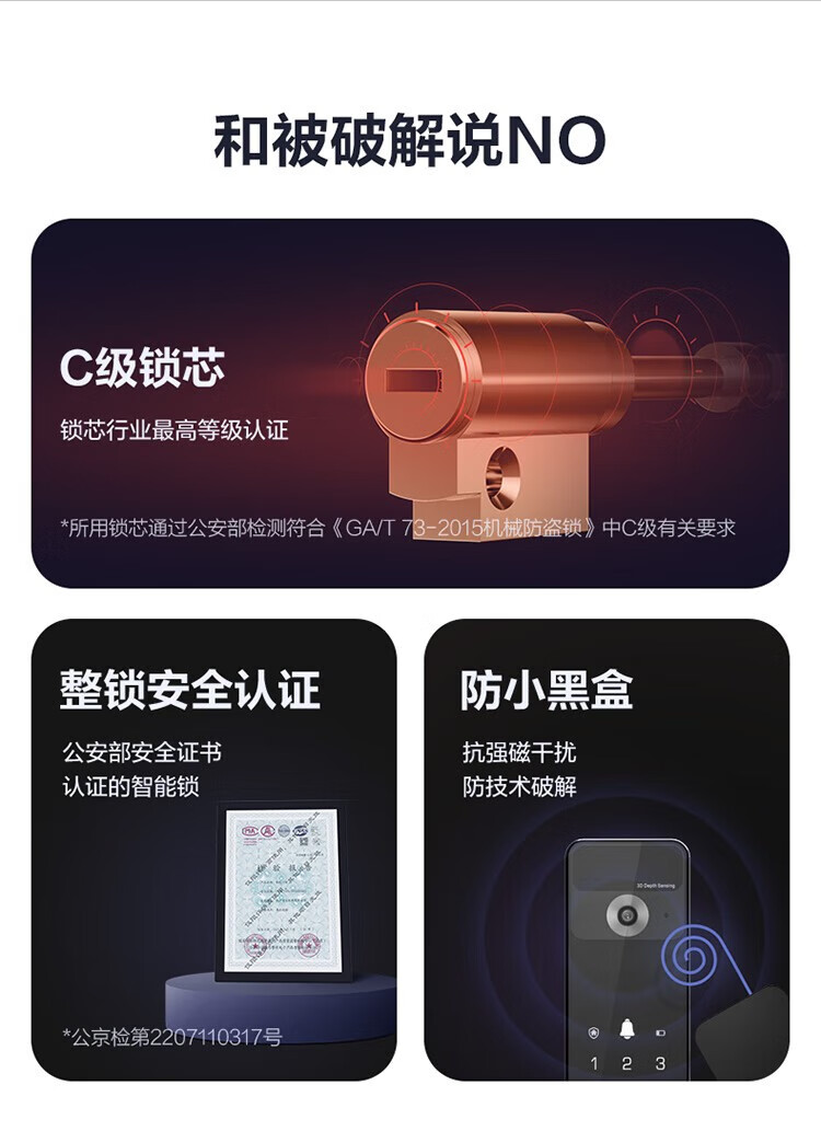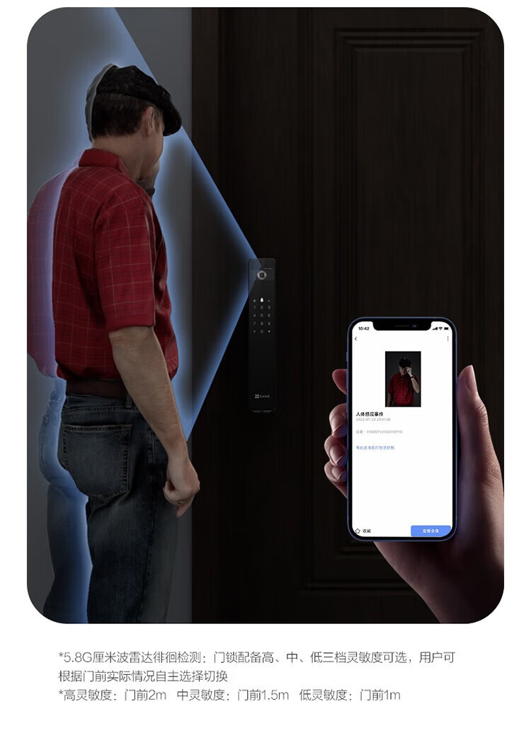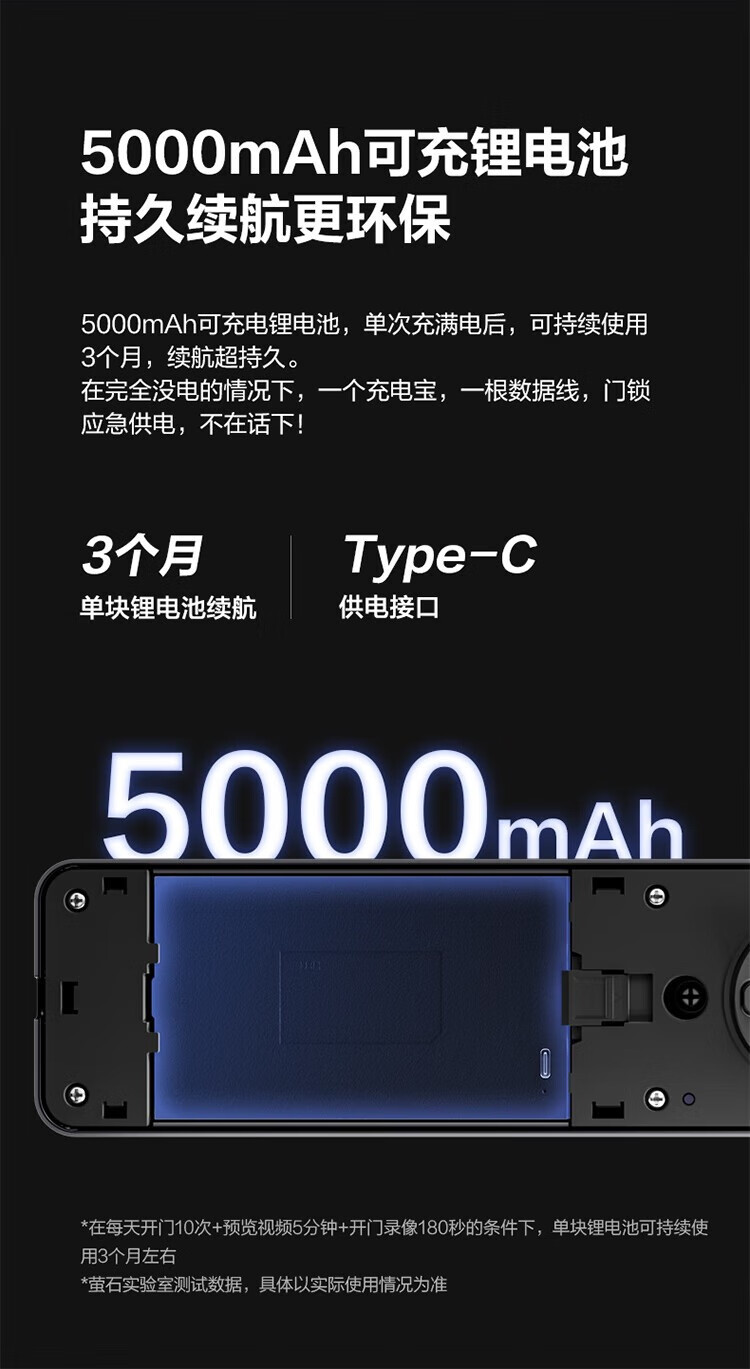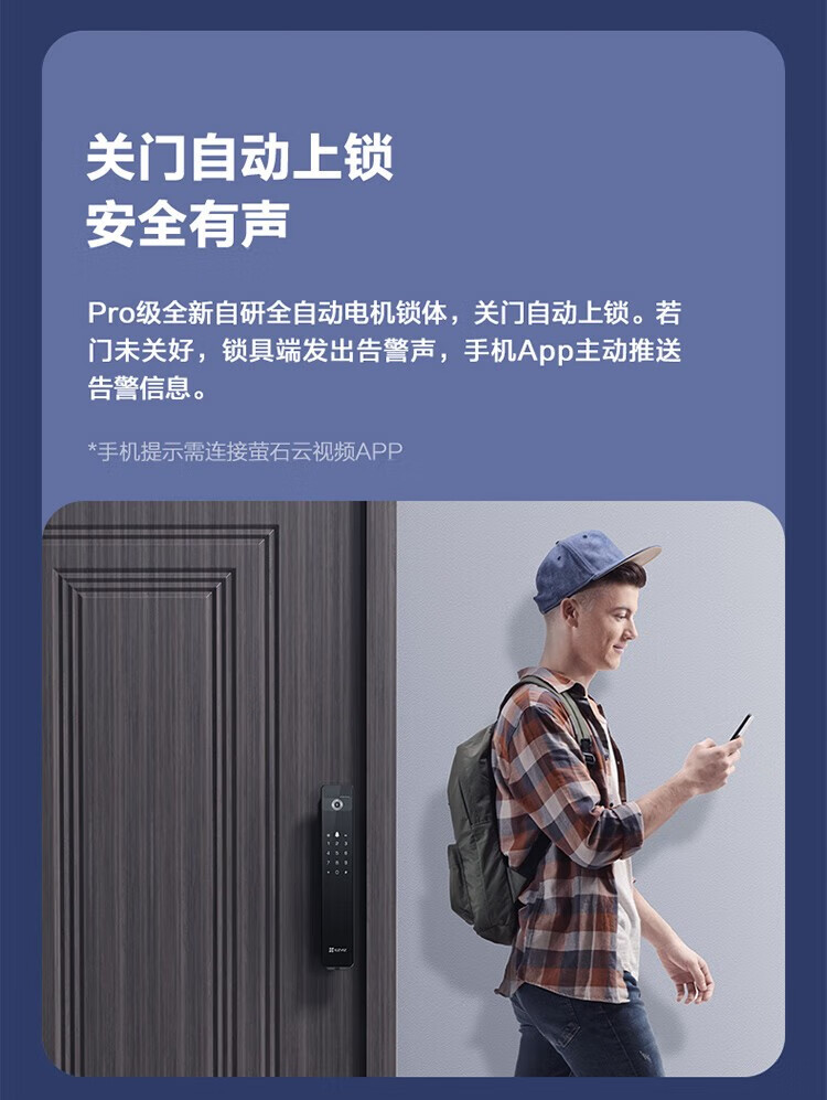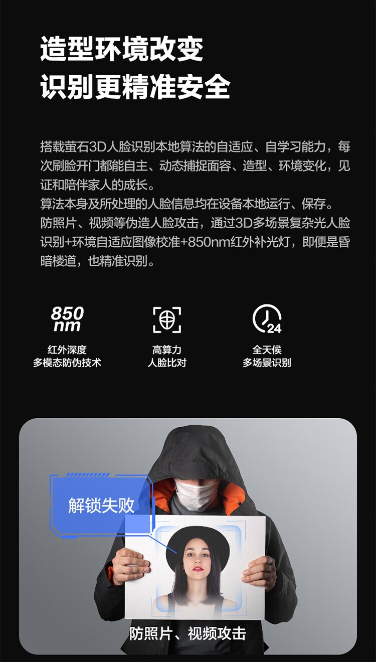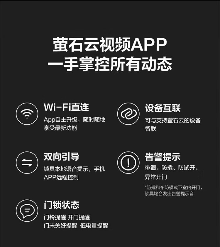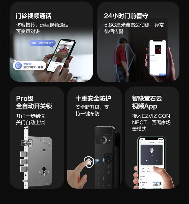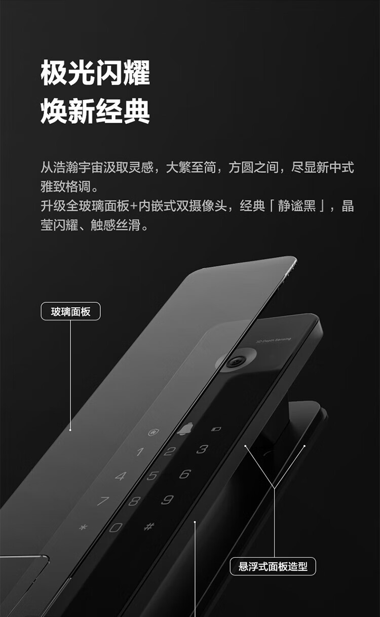 萤石 智能3D人脸识别智能锁 带猫眼双摄像头Y3000FVX 智能家用智能锁