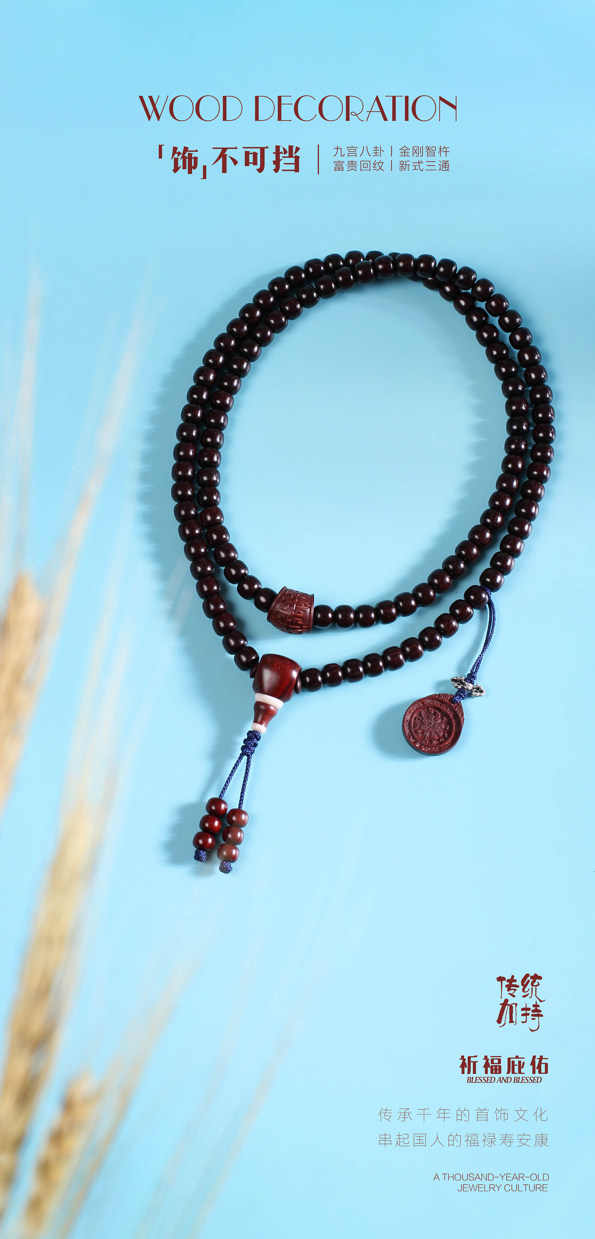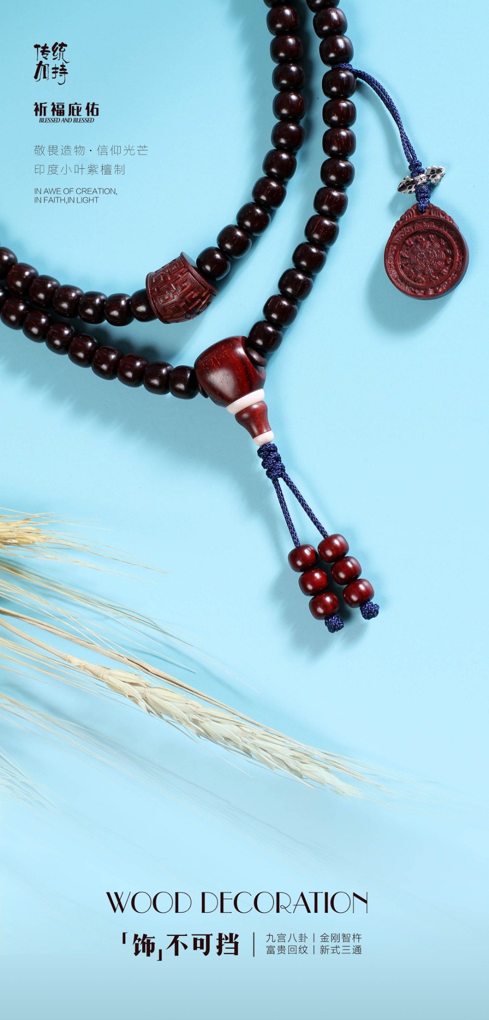 珠串素雅色调,气质简约,印度小叶紫檀为材,紫檀弯珠,时尚个性,紫檀九宫牌,文殊九宫八卦图,神秘而吉祥,守护平安,925银金刚杵,吉祥法器,祈福避邪,紫檀+鹿角三通,无缝衔接,层次丰富,整体落落大方的气质,沉稳高级。