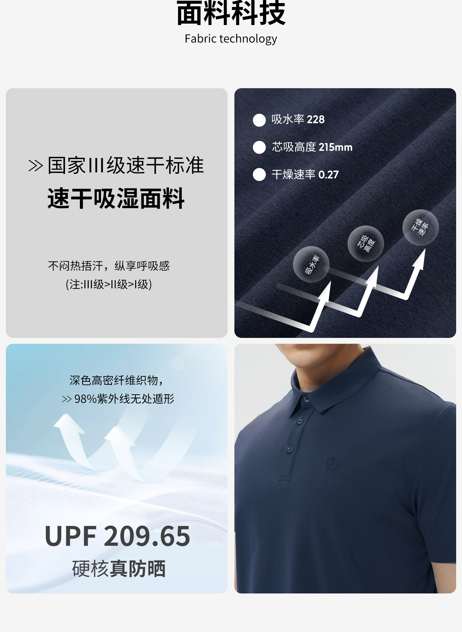 北极狐 男士户外运动速干短袖T恤 2025春夏徒步POLO衫012511097
