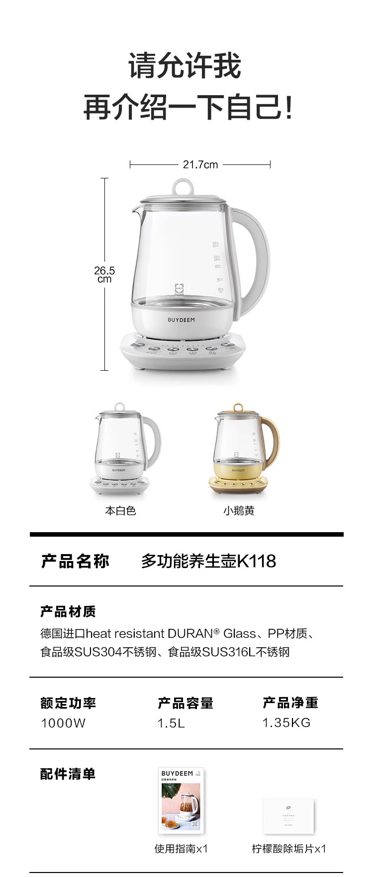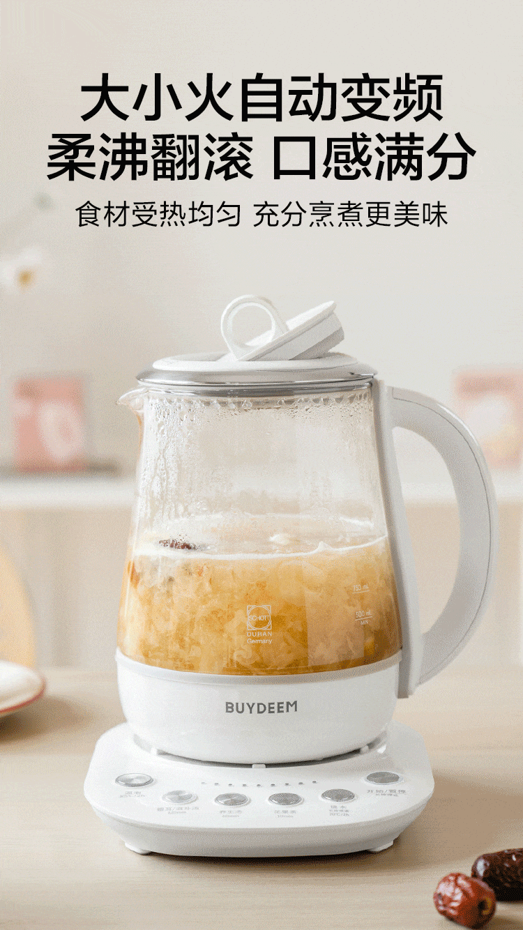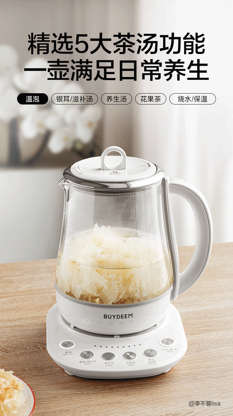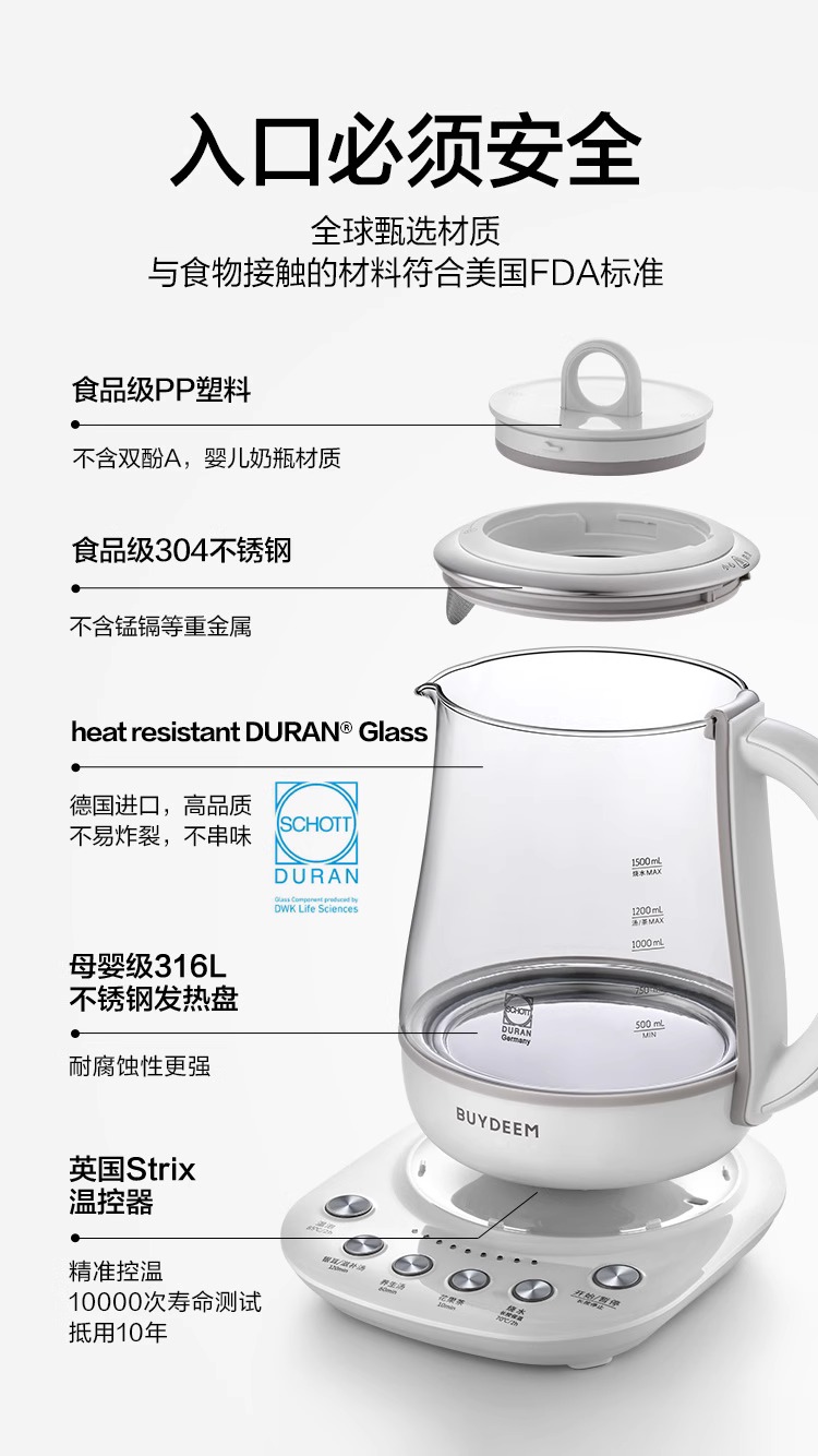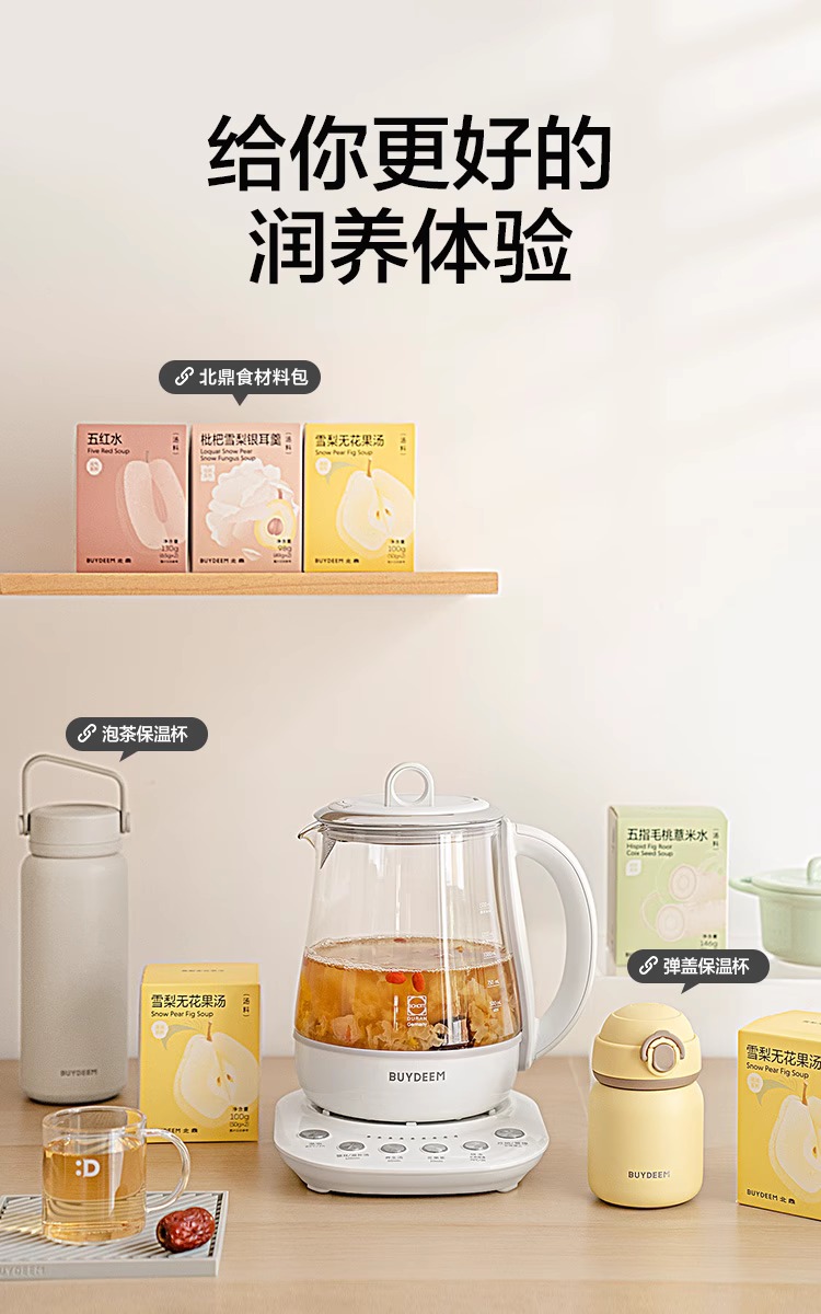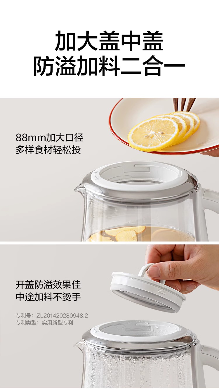 【专柜-北鼎】K118全自动养生壶多功能静音炖煮银耳羹肖特玻璃烧水壶煮茶壶1.5L