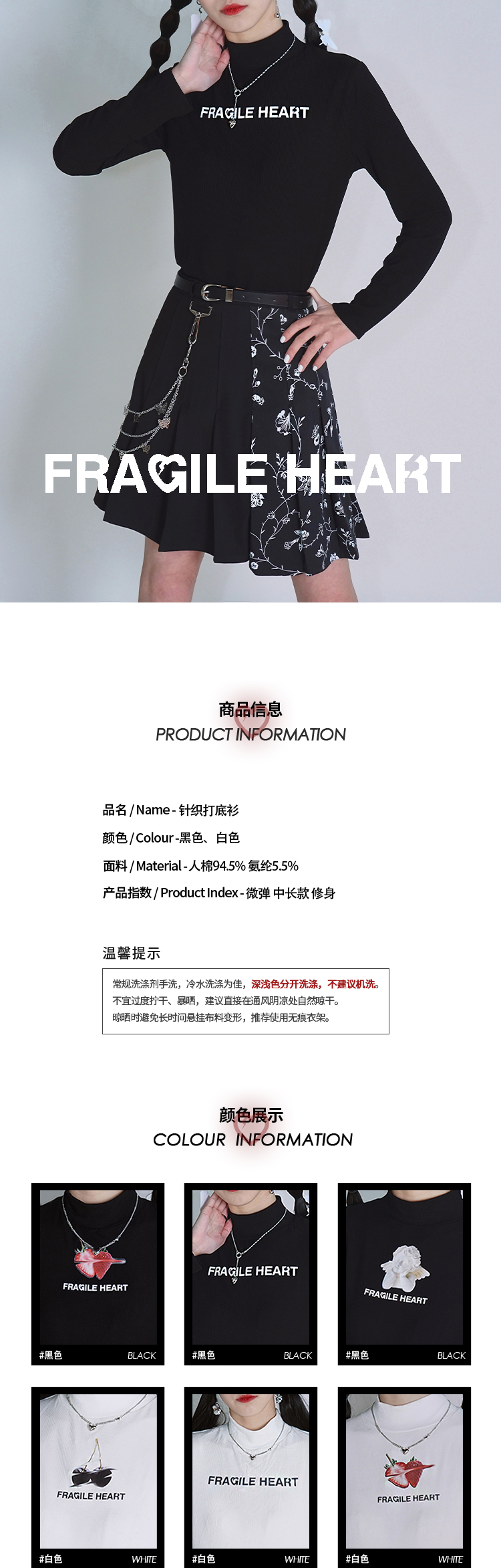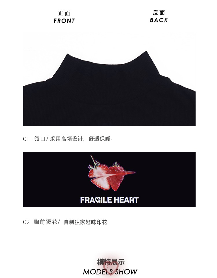 fragileheart易碎商店春季原创印花小高领修身黑白打底衫女针织衫