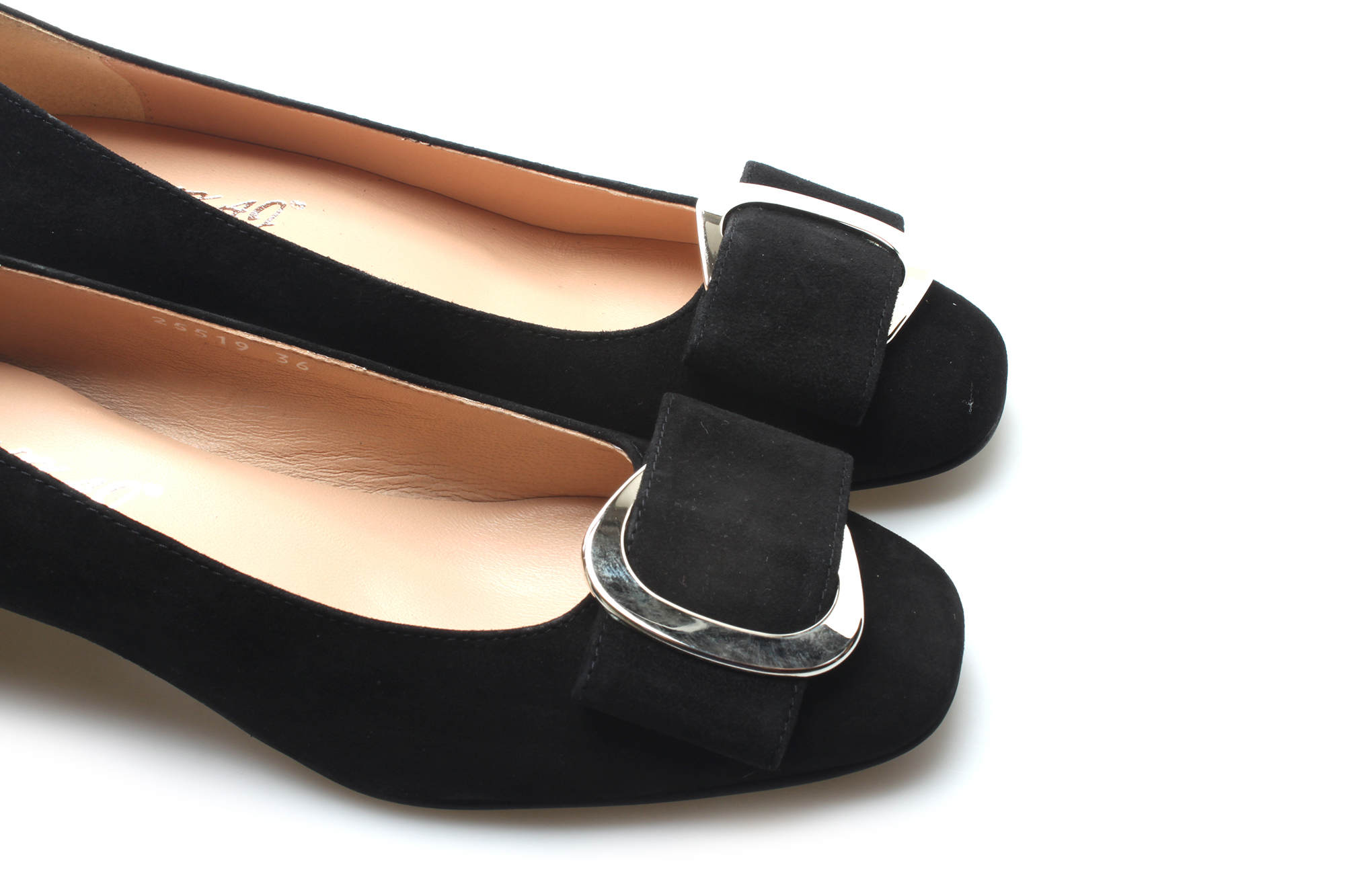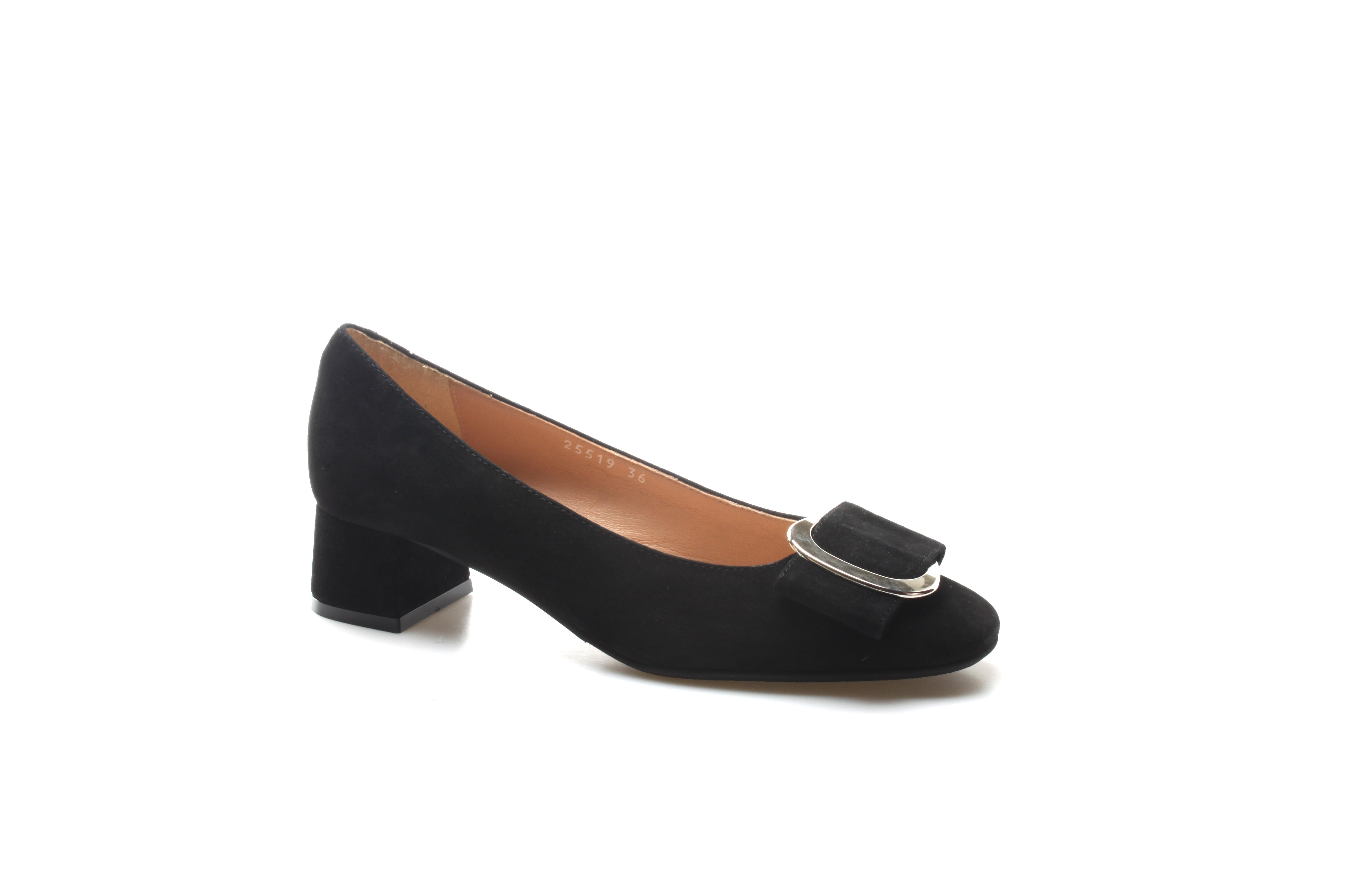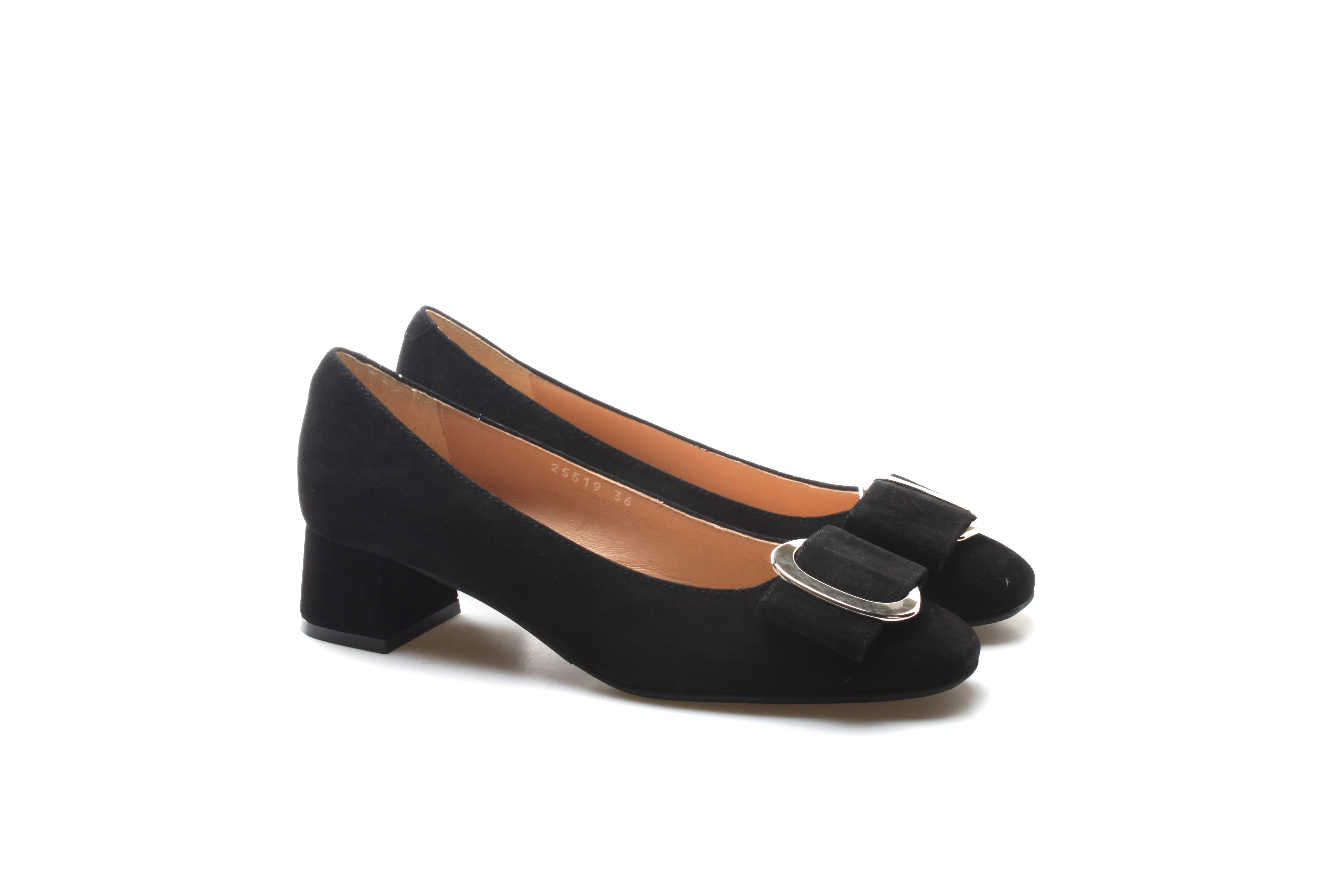 豪麟名鞋奥莱进口迪嘉女鞋皮鞋羊反绒面革Z25519P黑色 原价3660元