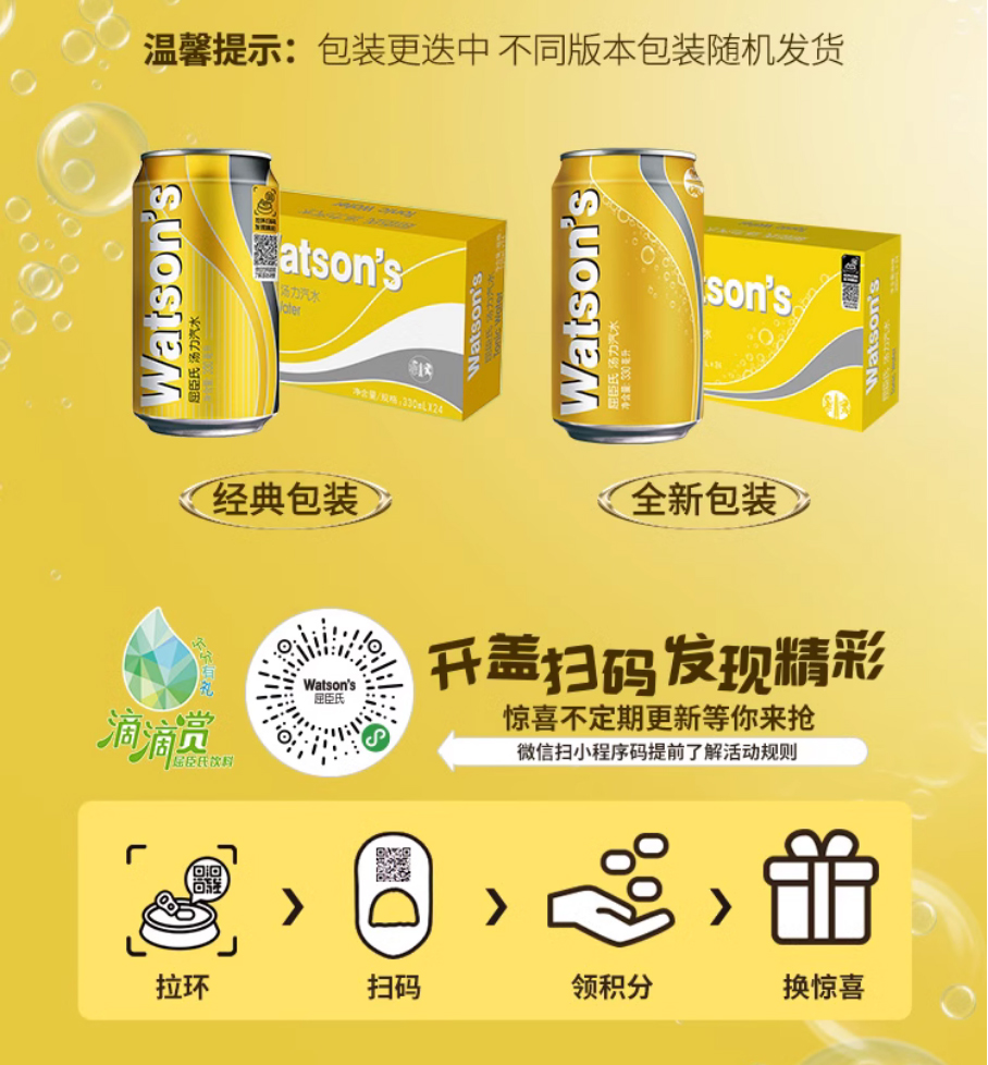 【品名】Watsons屈臣氏汤力水汽水330ml罐装