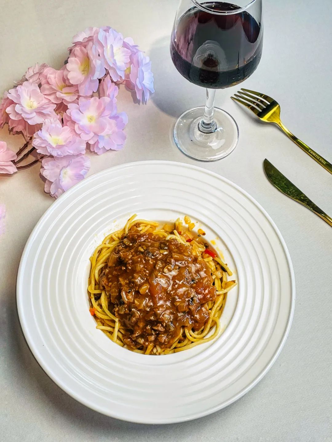 肉酱包裹着恰到好处的意粉