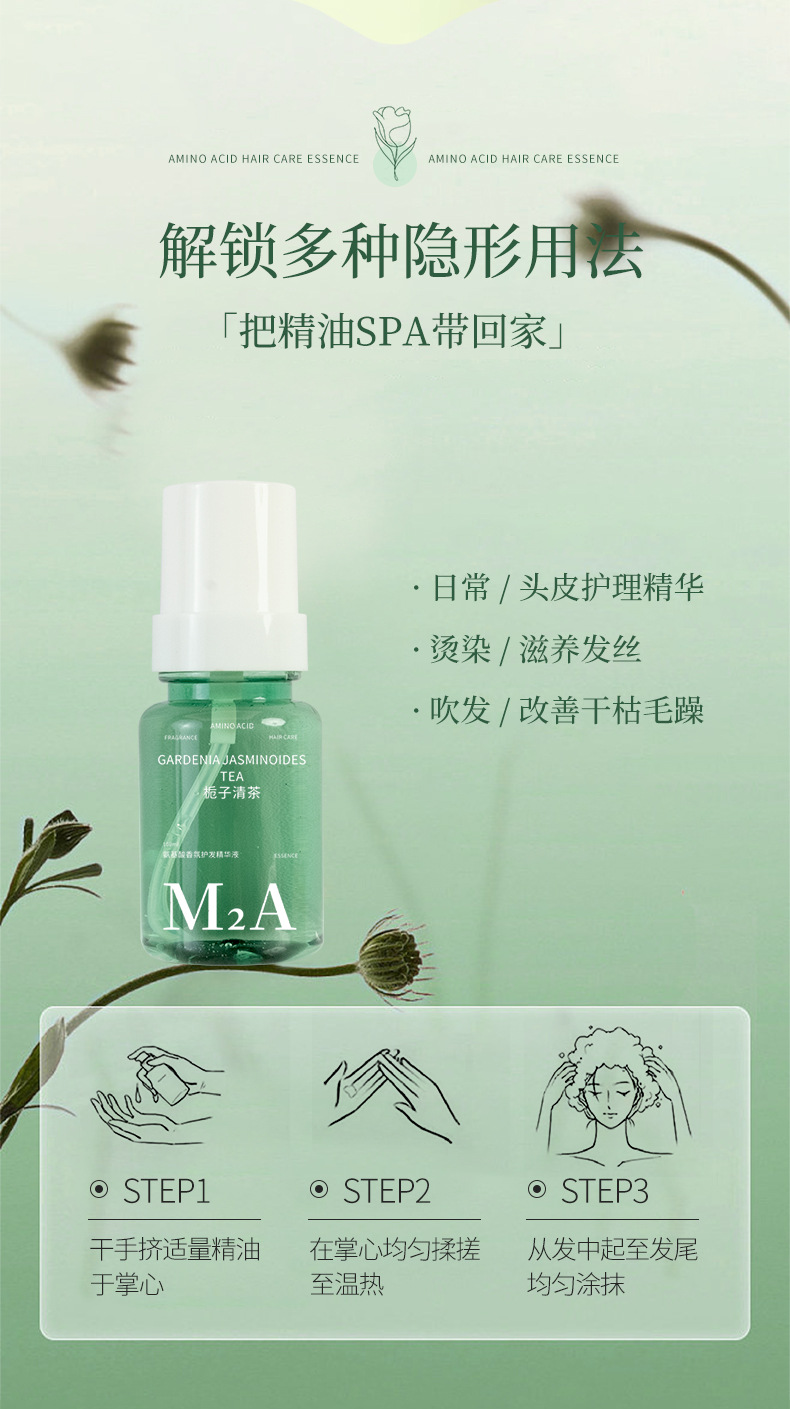 「买1送1!两款香型」M2A栀子清茶氨基酸护发精油 柔顺精油留香修复干枯发清爽不油腻女洗发护发