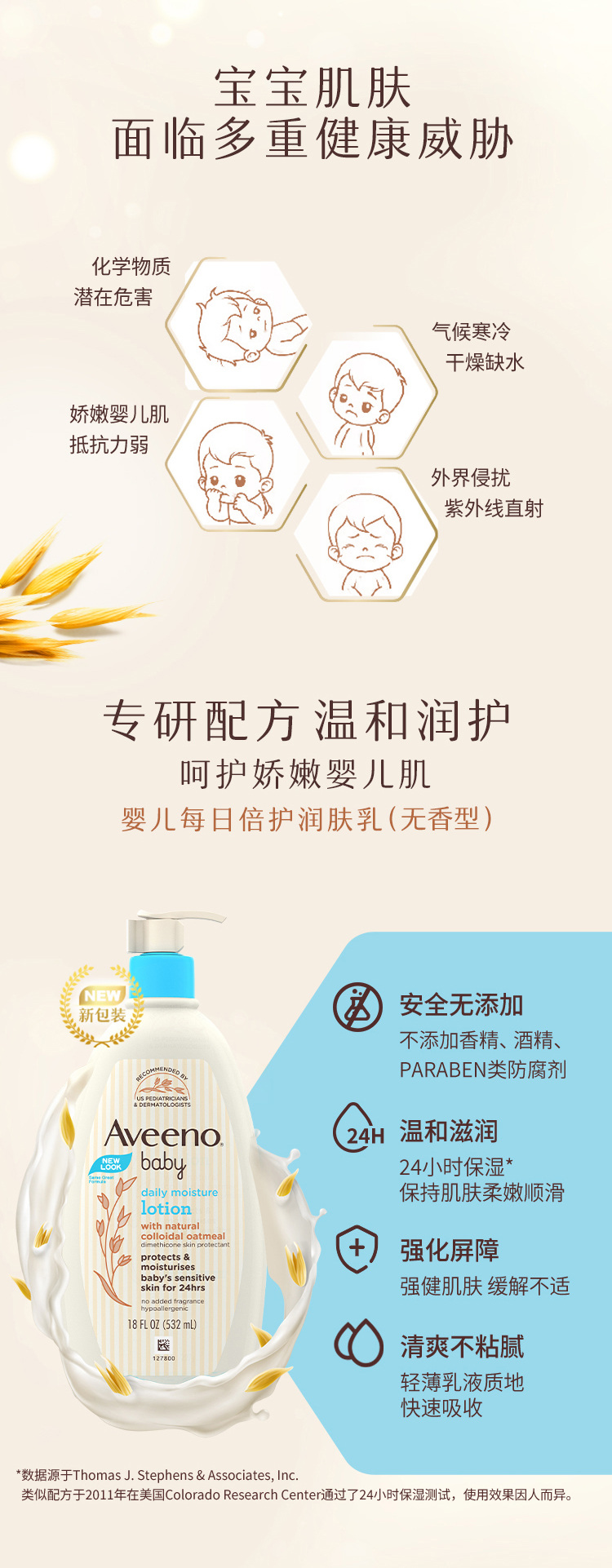 【保税仓】Aveeno/艾惟诺 婴儿无泪配方淡香燕麦洗护二合一洗发沐浴露 532ml