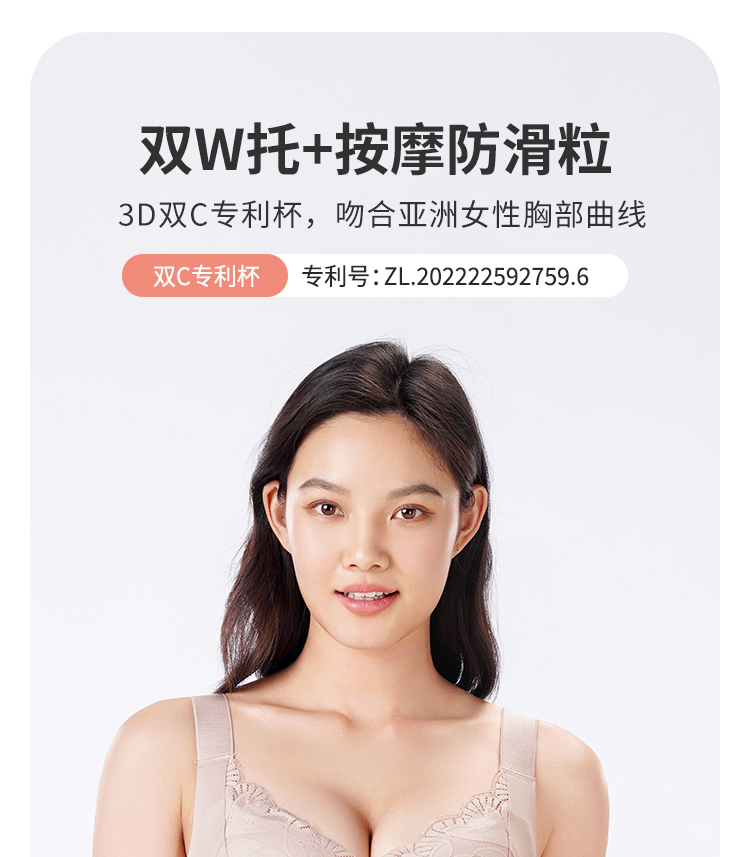 笔笔同款都市丽人WISECOOL内衣BC薄3/4杯蕾丝文胸三排树脂胶圈YB32D2