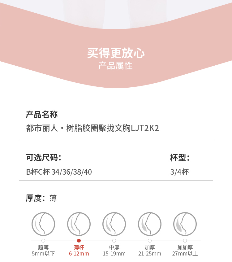 都市丽人调整型内衣美体纤塑塑身文胸蕾丝BC:薄塑身内衣3/4杯四排扣LJT2K2