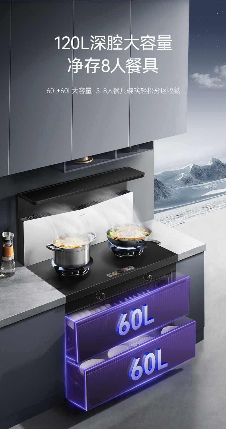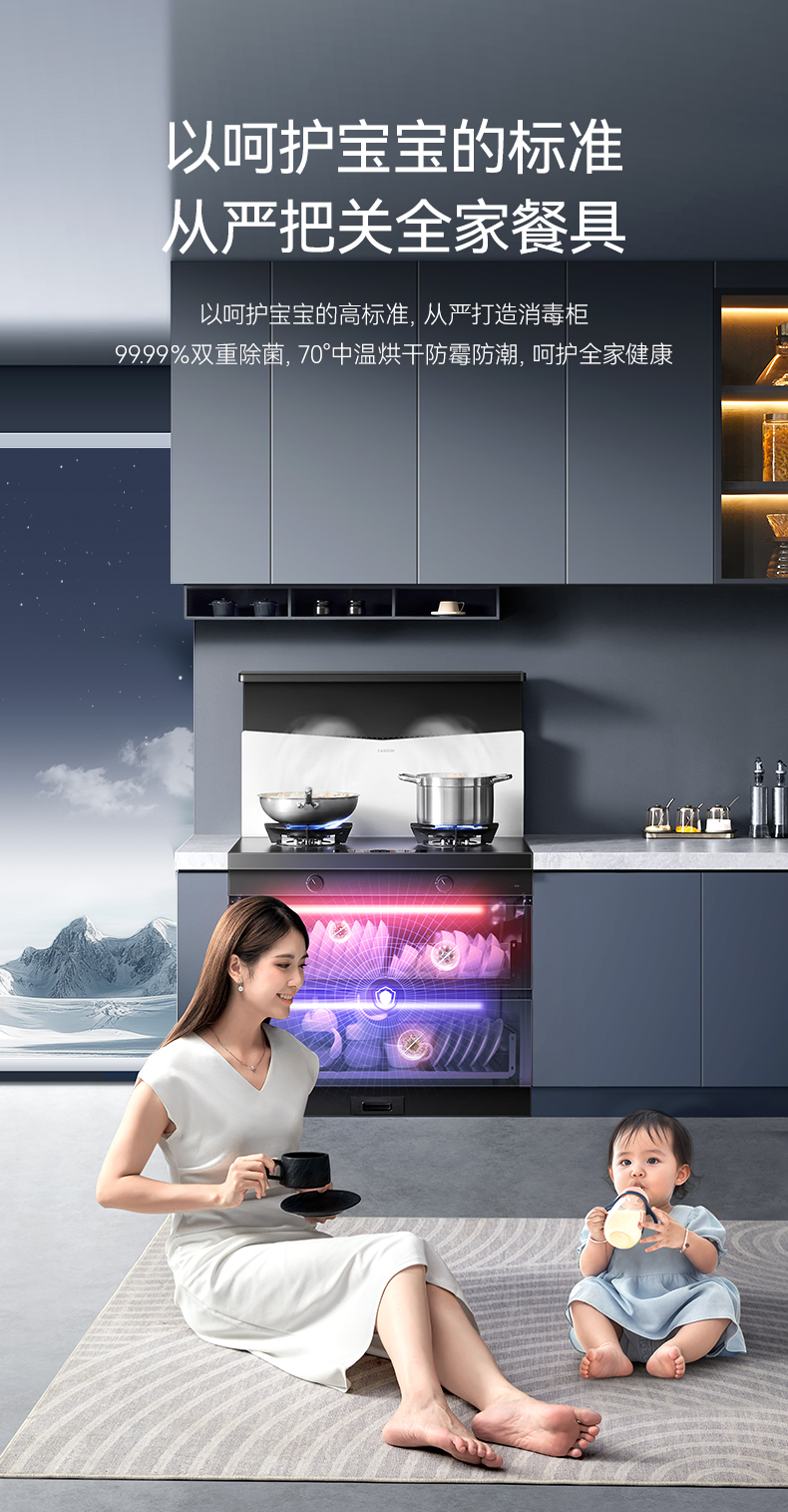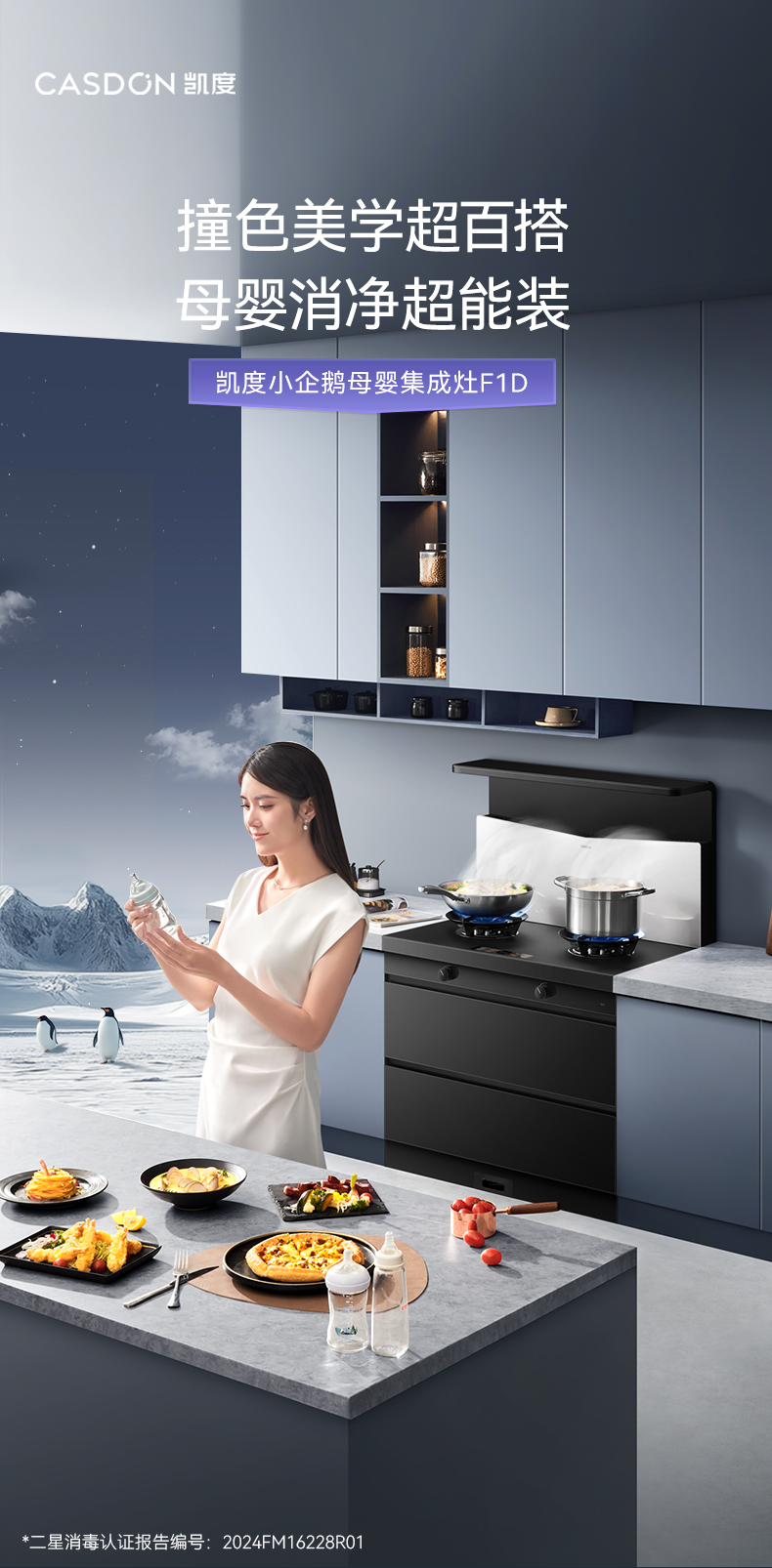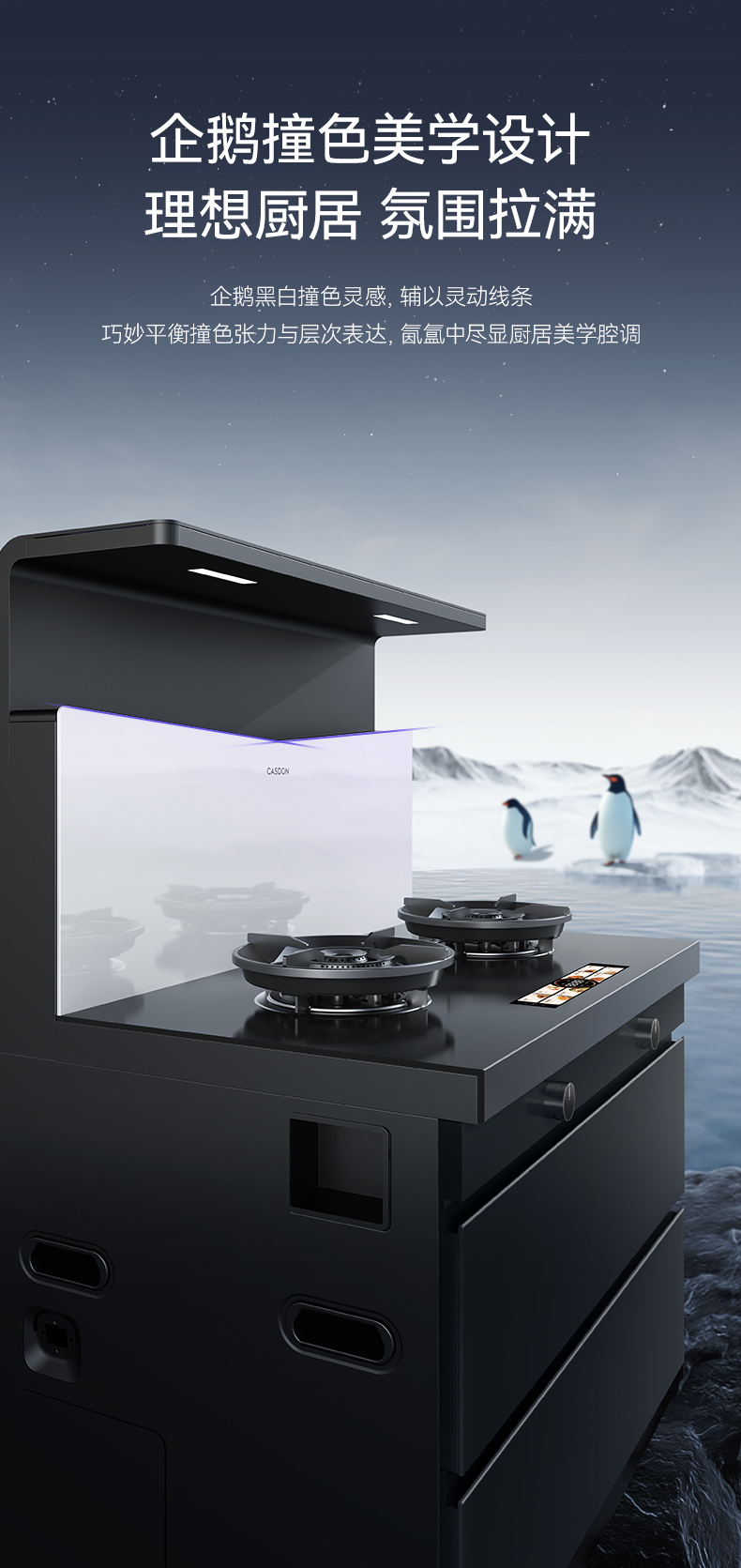 凯度小企鹅集成灶F1D餐具消毒碗柜家用一体变频燃气烟灶