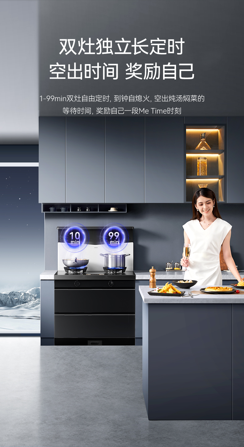 爆款新品凯度T2E集成灶家用变频自动清洁油烟机蒸烤一体