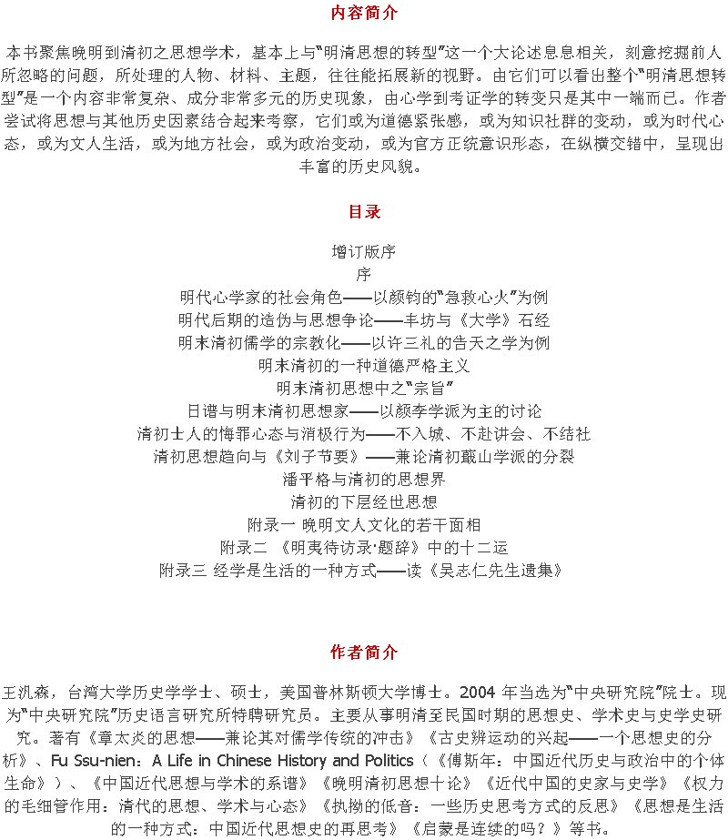 晚明清初思想十论(增订版) 9787303251193 王汎森 著 北京师范大学出版社 正版书籍