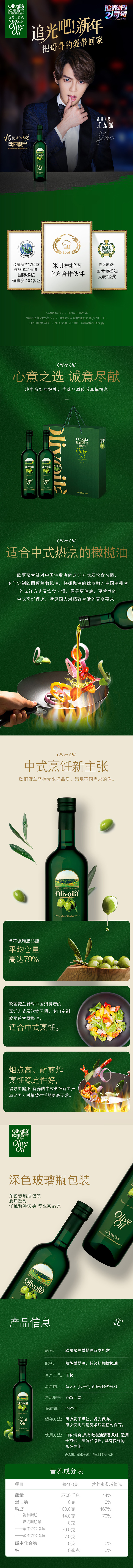 欧丽薇兰橄榄油750mLx2双支礼盒