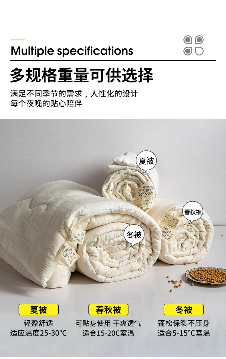 【A类原棉大豆被】日式简约春秋被四季被,原棉不含荧光剂,A类标准,大豆纤维被,简约健康产品,欢迎体验。