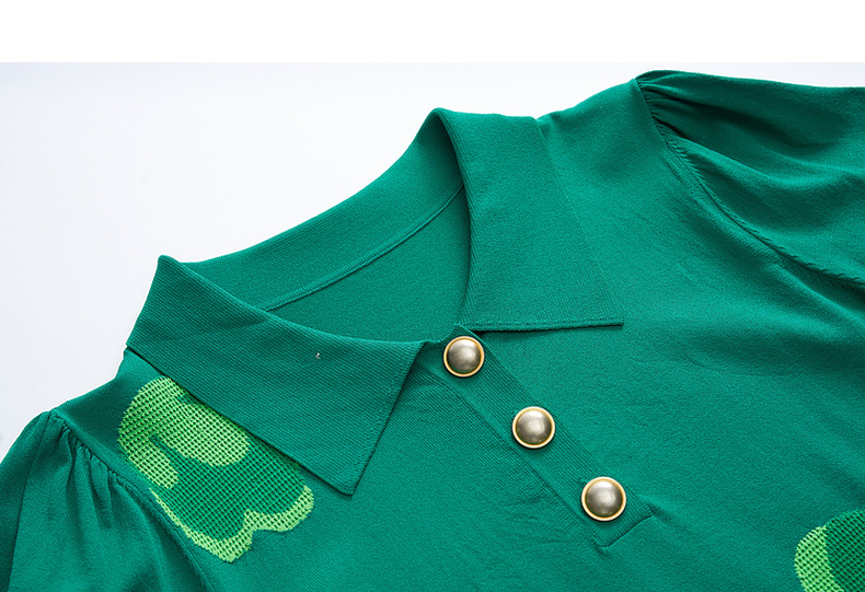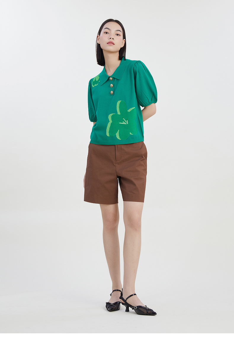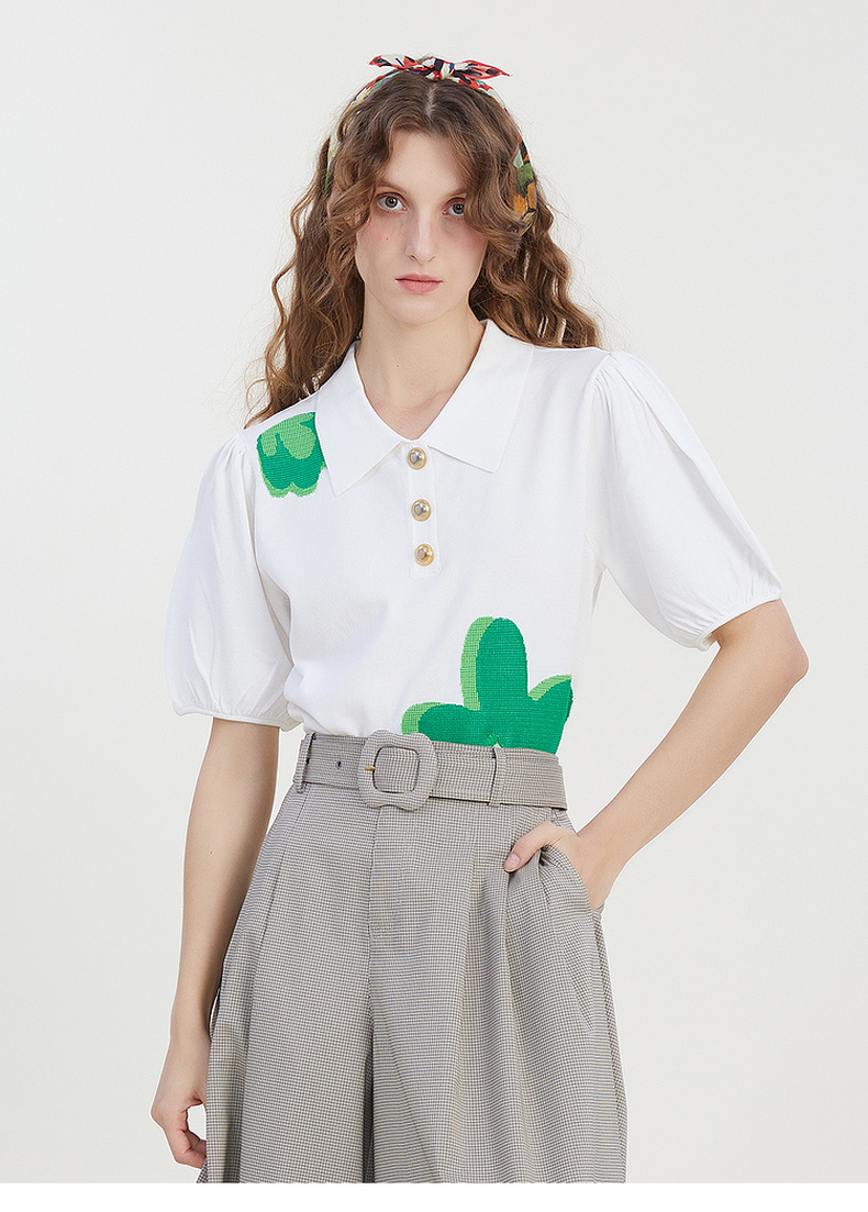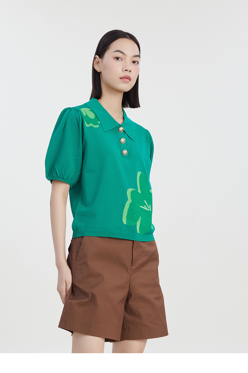 谜底POLO领针织上衣女2023夏季新款宽松大花针织衫短袖232MZ0859